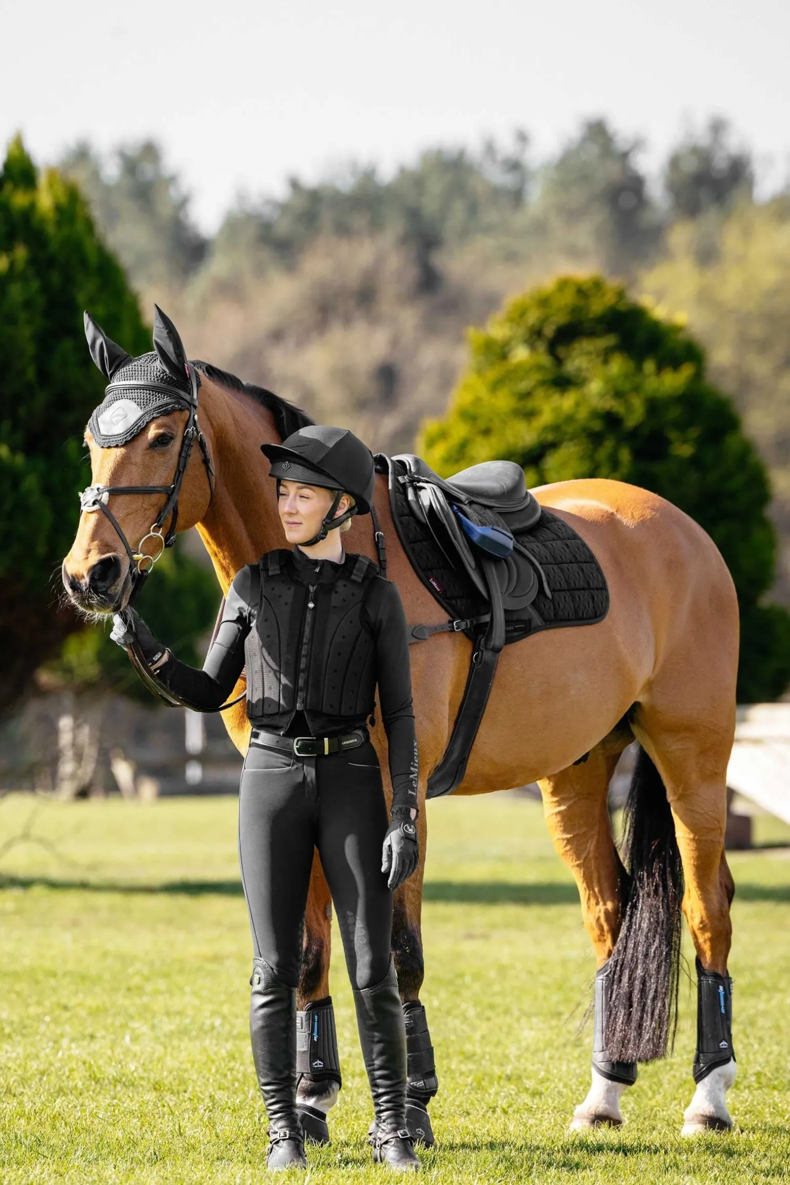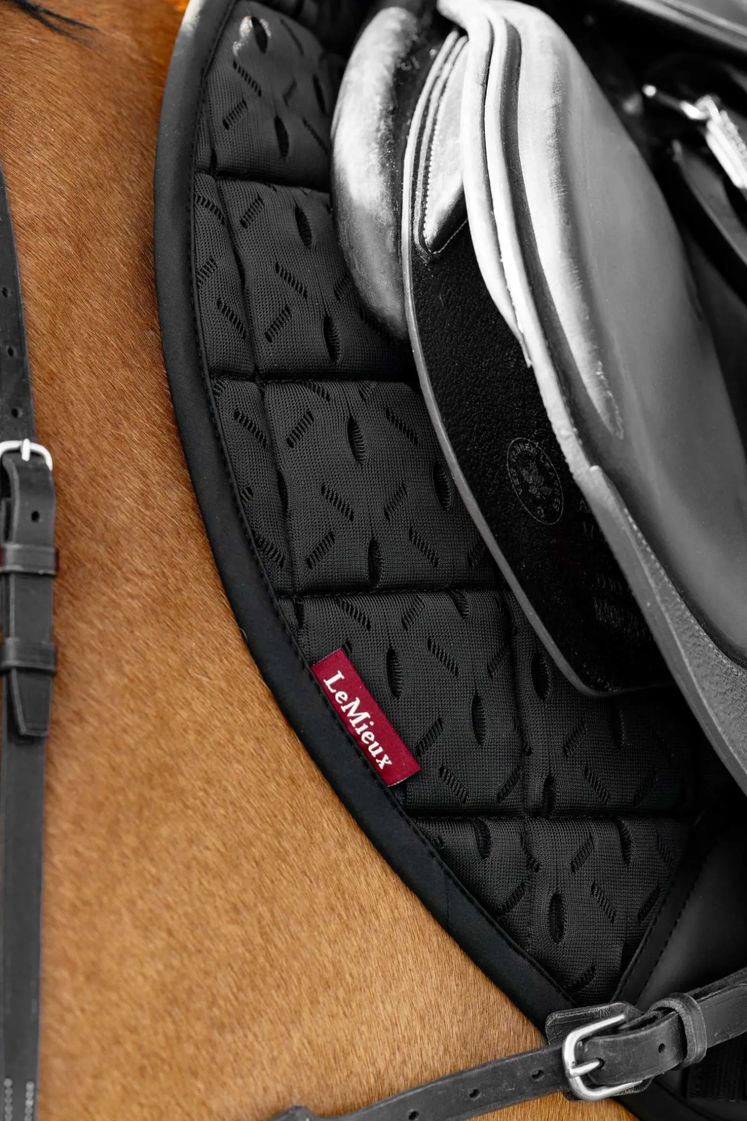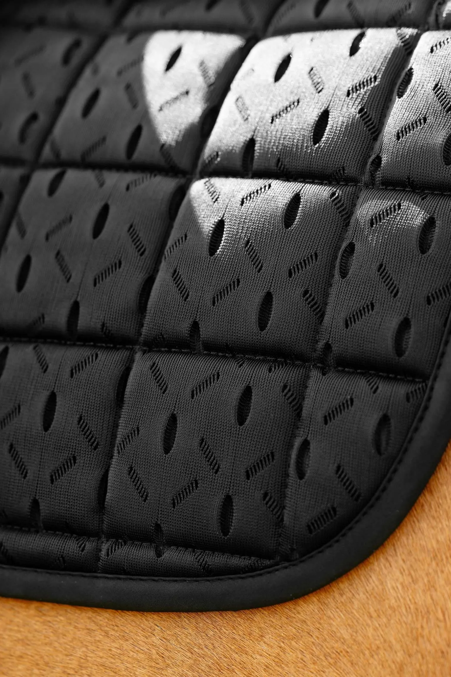 Die ideale Schabracke für Training und Turniere bei warmem Wetter – die technisch fortschrittlichen Materialien dieser kühlenden Schabracke sorgen für maximale Luftzirkulation und optimale Temperaturregulierung unter dem Sattel. Die 3D-Mesh-Oberseite mit perforiertem Schaumstoffkern ermöglicht maximale Belüftung während der Bewegung, sodass warme Luft entweichen und kühle Luft eindringen kann. Das innovative „Feel Cool“-Futter ist mit einer feuchtigkeitsaktivierten Kühltechnologie durchzogen, die Wärme von der Haut des Pferdes ableitet und durch das Gewebe entweichen lässt. Je mehr dein Pferd arbeitet, desto stärker wirkt der kühlende Effekt. Ein flexibler Mesh-Einsatz entlang der Wirbelsäule reduziert den Druck auf Widerrist und Rücken und fördert gleichzeitig die Luftzirkulation im Wirbelkanal.