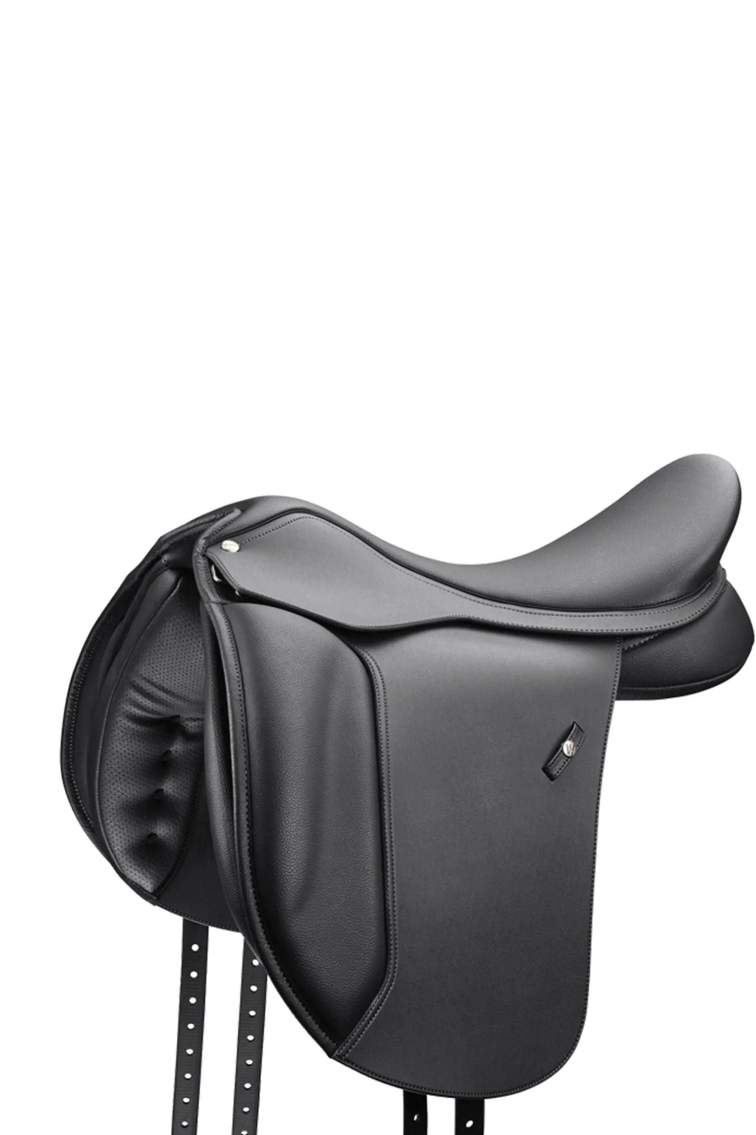 Dressurreiter fühlen sich im superweichen, tiefen Sitz dieses Sattels bestens unterstützt. Dieser Sattel bietet dem Reiter Sitzstabilität durch das griffige Material und engen Kontakt zum Pferd für präzise Hilfengebung.