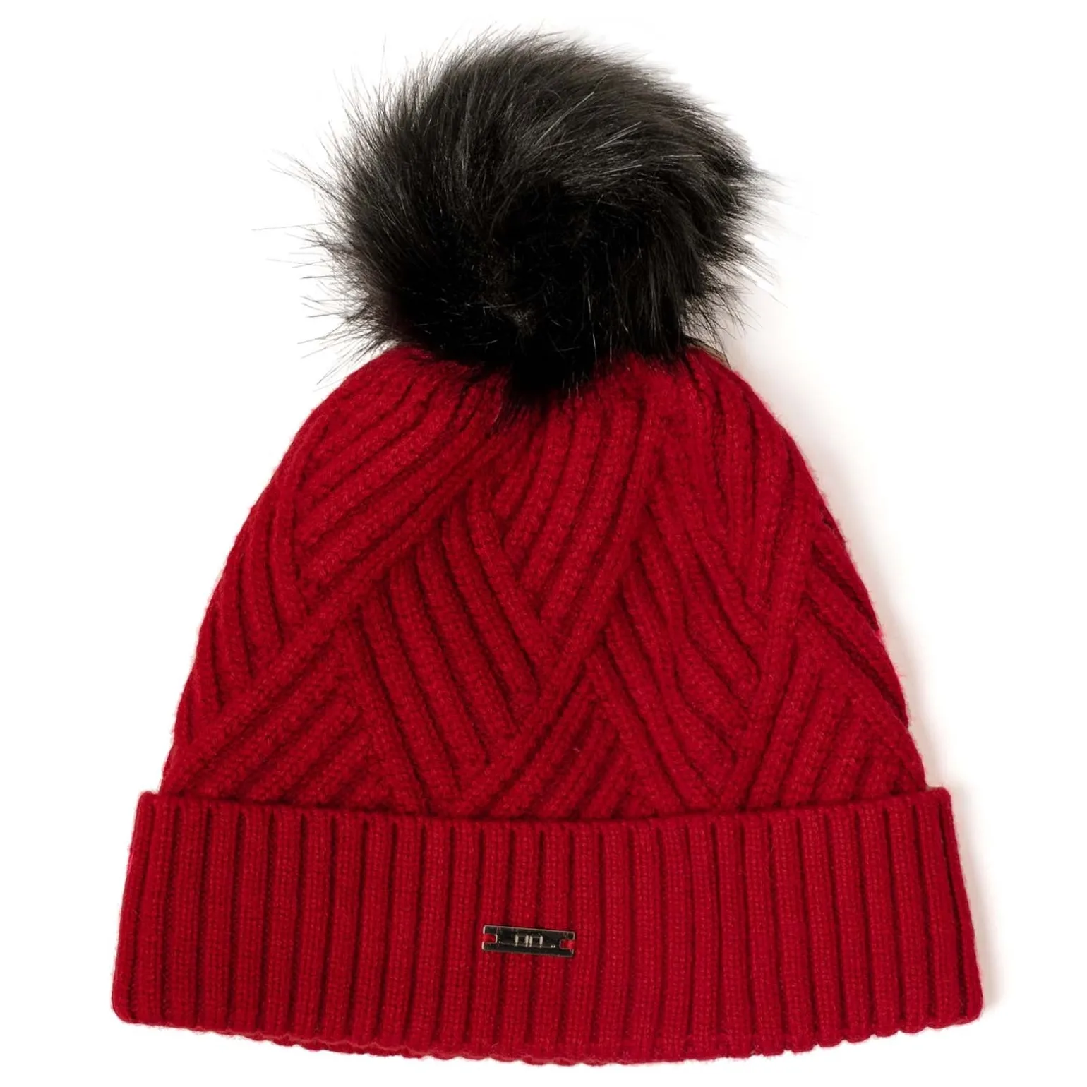 Luxuriöse Kaschmir-/Wollfasern. Mit Fleece gefütterte Wollmütze. Abnehmbare Kunstpelz-Bommel.