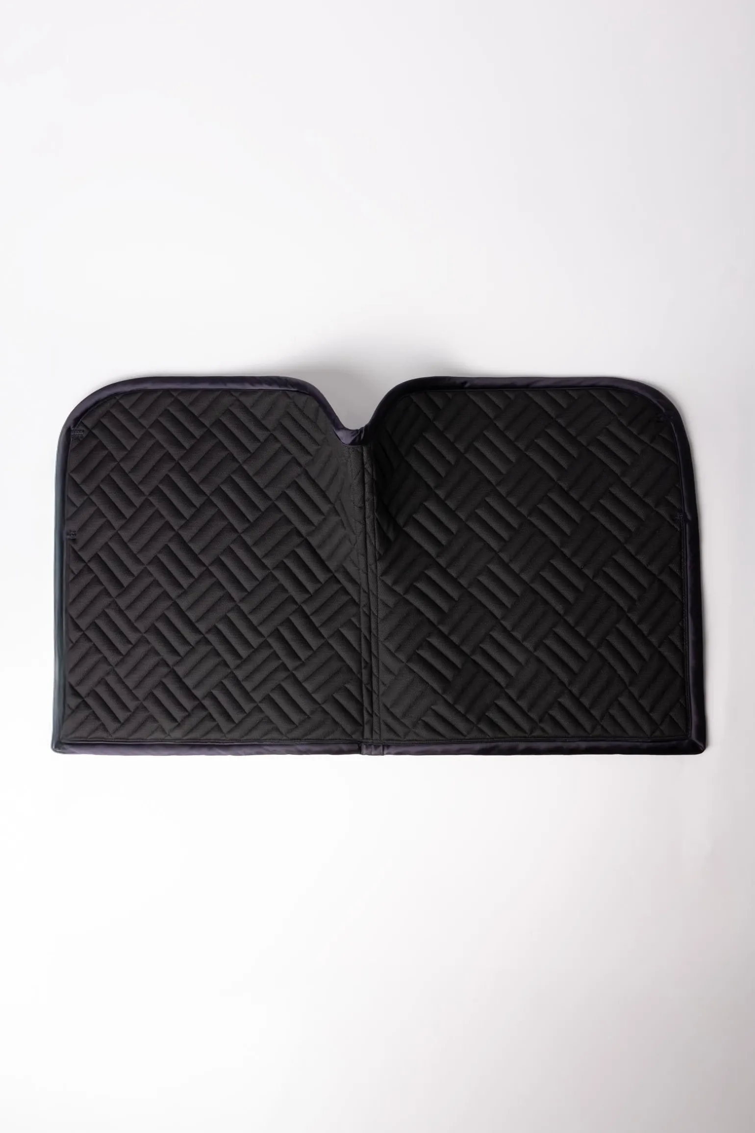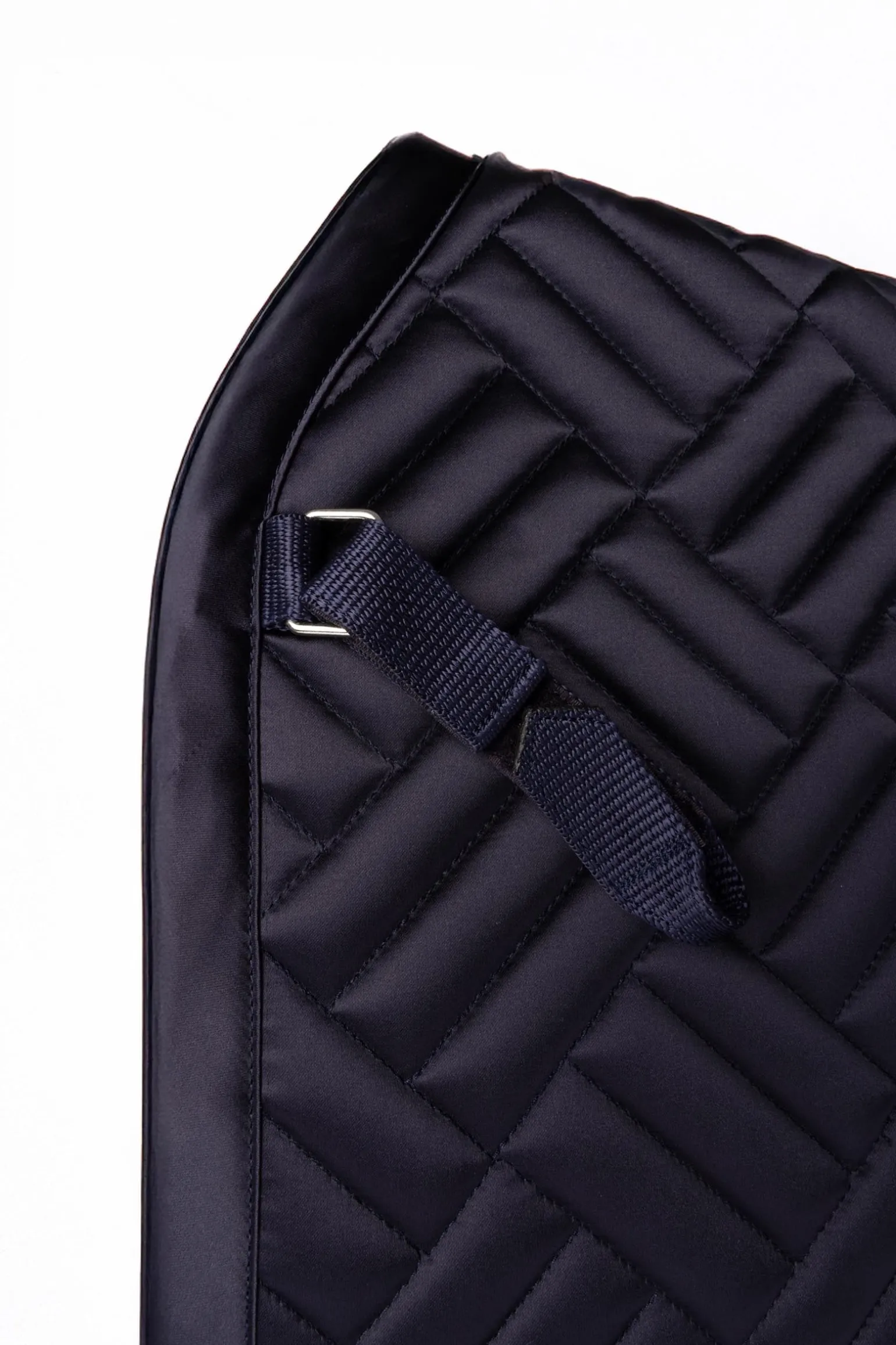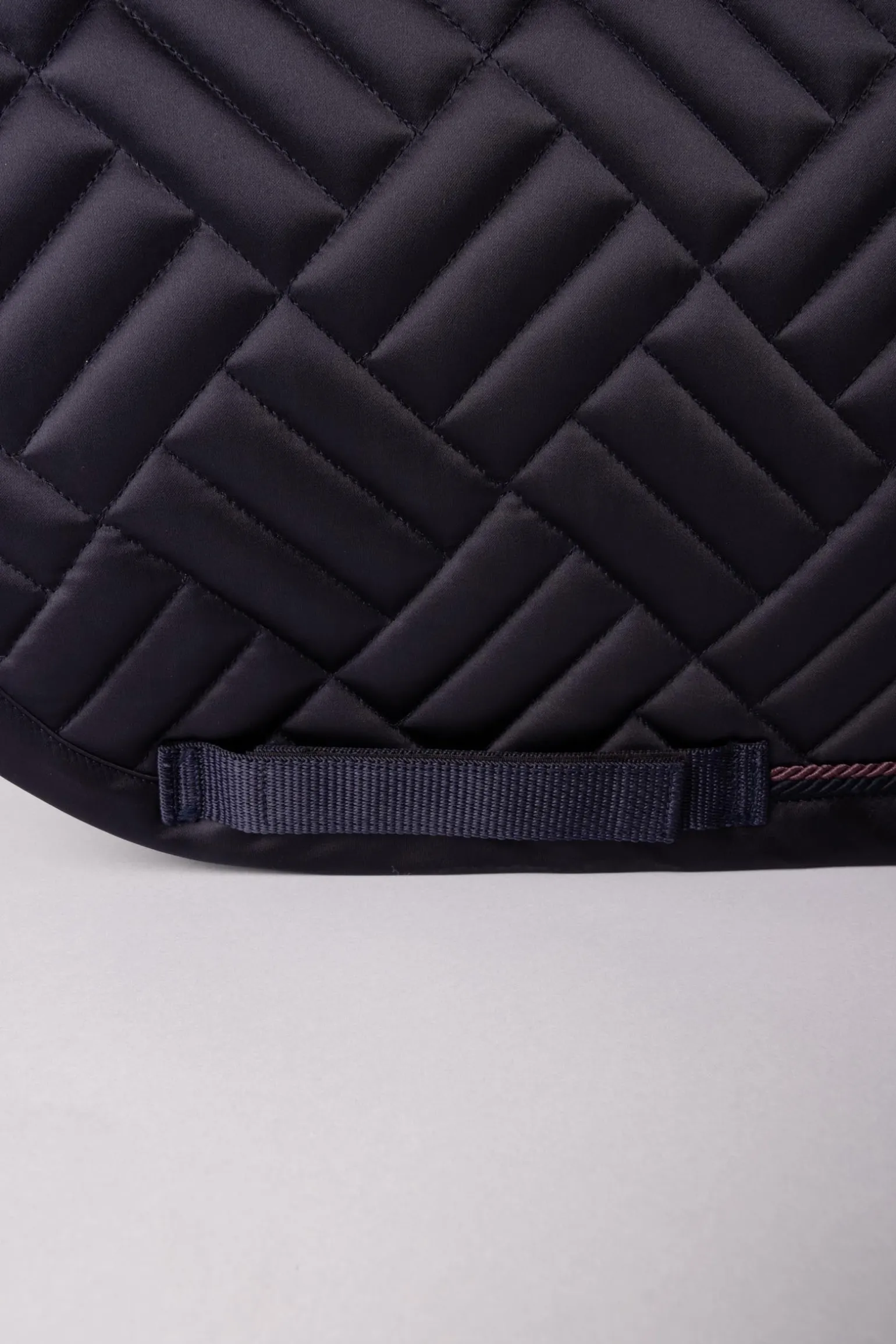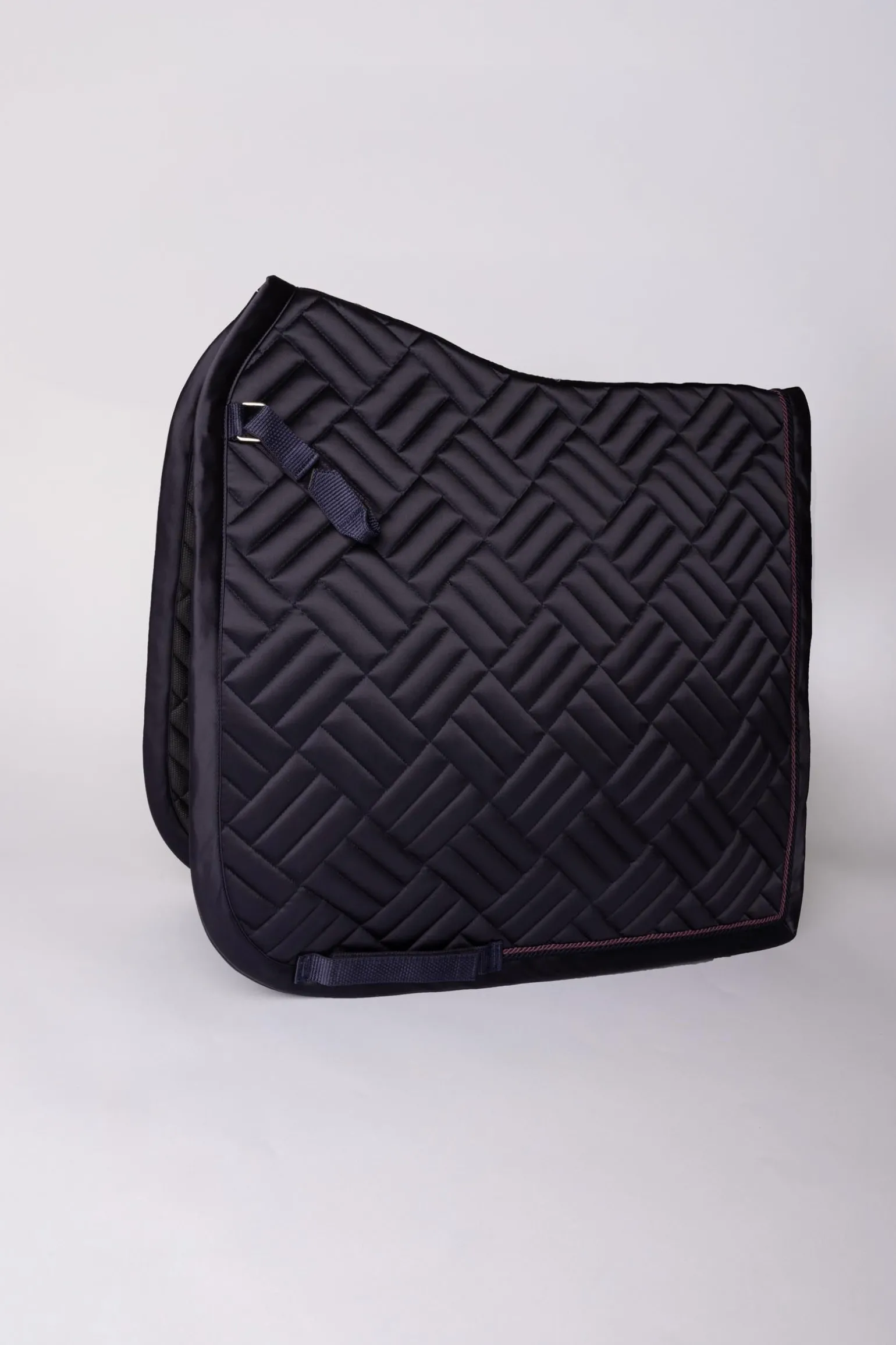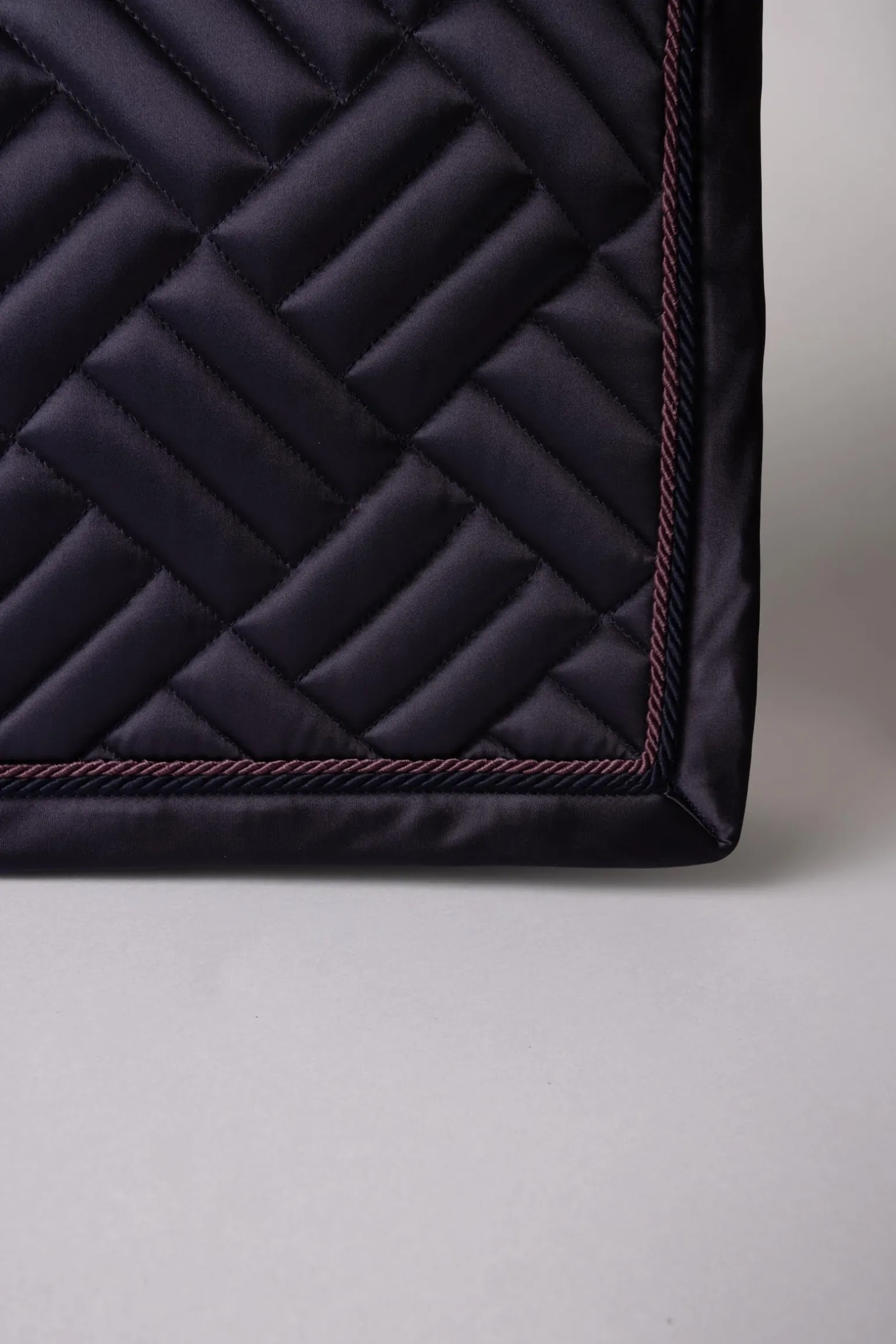 Elegant dressage saddle pad with double rope trim and logo embroidery.