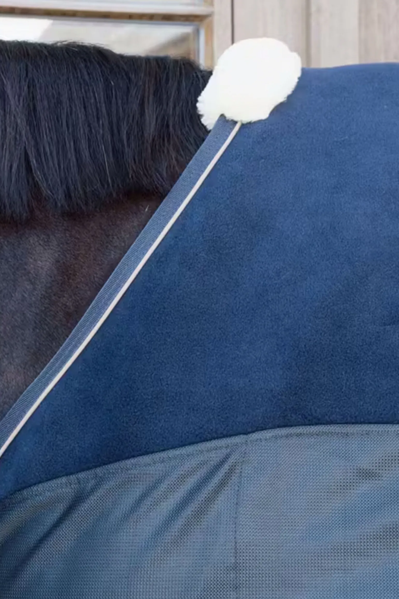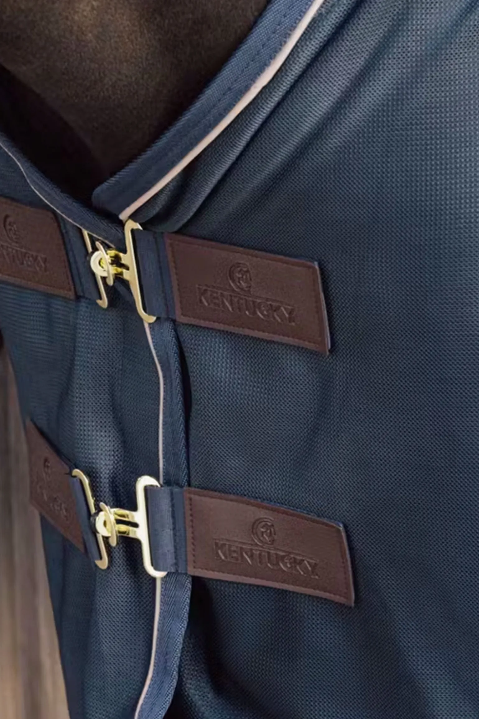Die Fleece Mesh Cooler Combo Cool kann vielseitig in der Stallgasse und beim Transport eingesetzt werden. Ideal zum Abschwitzen dank der sehr leichten und atmungsaktiven Materialien und zugleich perfekt geeignet, um den Rücken deines Pferdes während des Transports warmzuhalten. Dadurch eignet sich die Decke auch hervorragend zum Trocknen deines Pferdes nach dem Training oder nach dem Waschen im Frühling oder Sommer. Die Decke kombiniert Eigenschaften einer Fliegendecke und einer Fleecedecke. Im Rückenbereich befindet sich ein hochsaugfähiger Fleece-Stoff, der den Schweiß aufnimmt und dein Pferd trocken hält. Die Decke ist im Rücken anatomisch geformt und passt sich optimal der Körperform des Pferdes an. Für zusätzlichen Komfort ist an der Widerristpartie veganes Lammfell eingearbeitet. Außerdem ziert die Decke das Kentucky-Logo aus veganem Leder für einen luxuriösen Look.