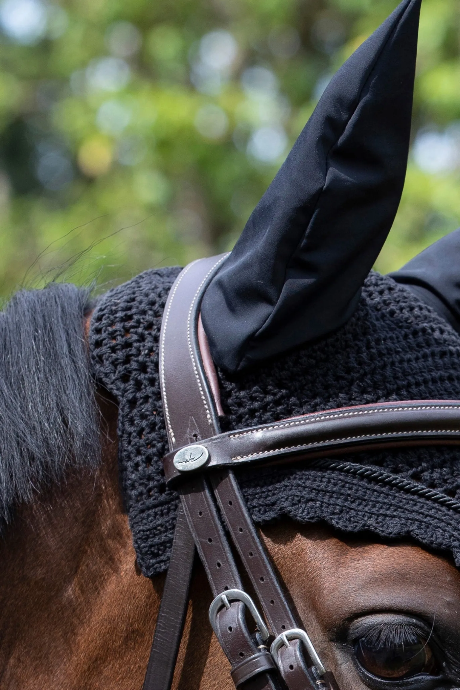 Die LeMieux Acoustic Pro Fliegenhaube verwendet dichten, schalldichten Mikroschaum zur Absorption lauter Geräusche, um die Konzentration und Entspannung zu fördern. Das 4-Wege-Stretchgewebe formt sich um die Ohren des Pferdes, während ein Innenfutter aus ultraweichem Bambus für maximalen Komfort sorgt. Jetzt mit einem breiteren Design hinter den Ohren für ein schlankes und sicheres Profil unter der Trense. Der handgehäkelte Stoff mit geprägtem PU-Lederpanel verleiht ihr den letzten eleganten Schliff. Diese akustischen Fliegenhaube ist gemäß Regel Nr. im britischen Dressursport zugelassen. 134: Ohrhauben und Fliegenhauben sind für alle Wettbewerbe zugelassen und können auch zur Lärmreduzierung beitragen. Ohrschützer/Fliegenhauben dürfen die Augen des Pferdes nicht verdecken. Die Abdeckung/Haube sollte in Farbe und Design diskret sein.