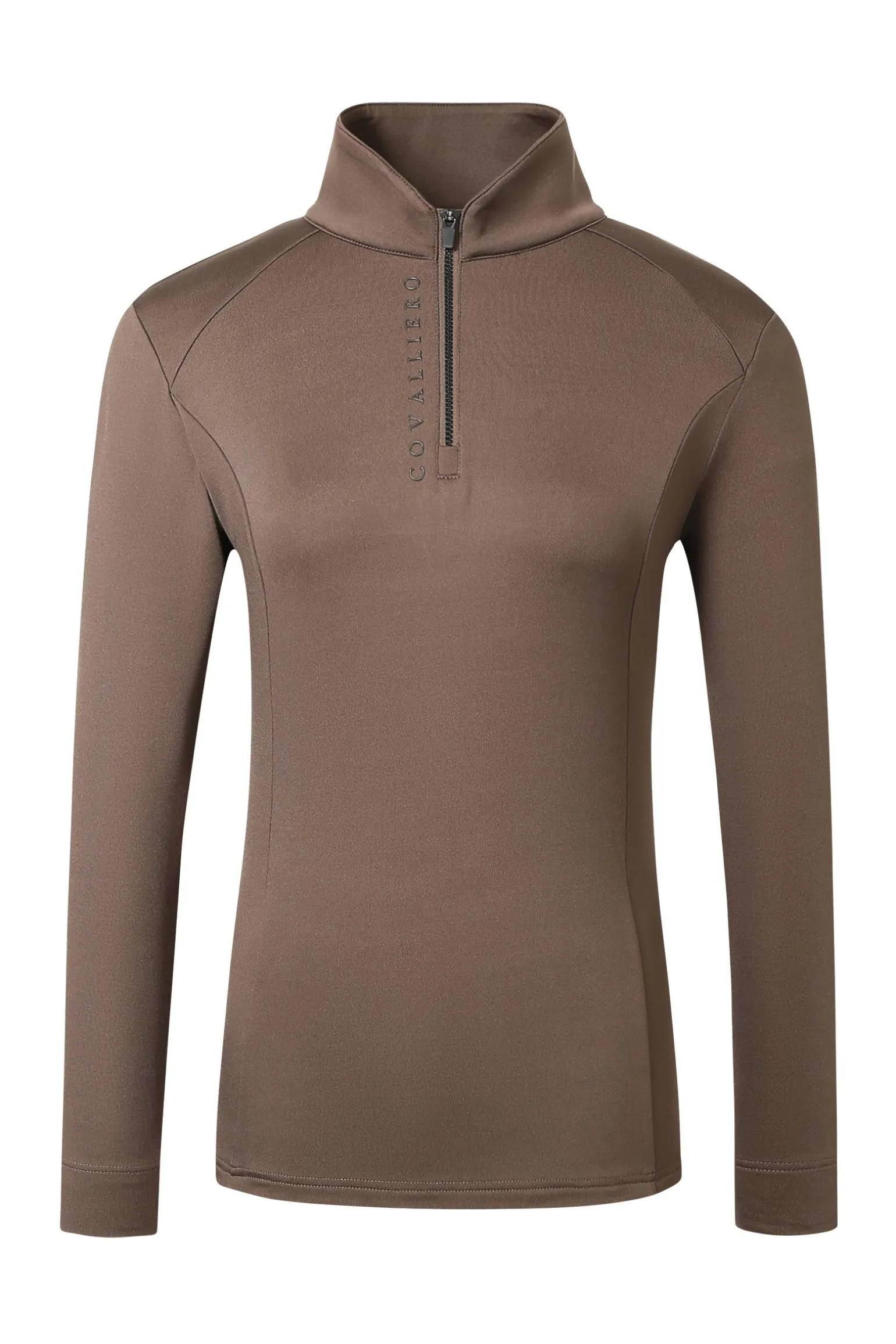 Zeitloses Shirt aus elastischem Material mit aufgerauter Innenseite, mit figurbetontem Schnitt und Stehkragen.