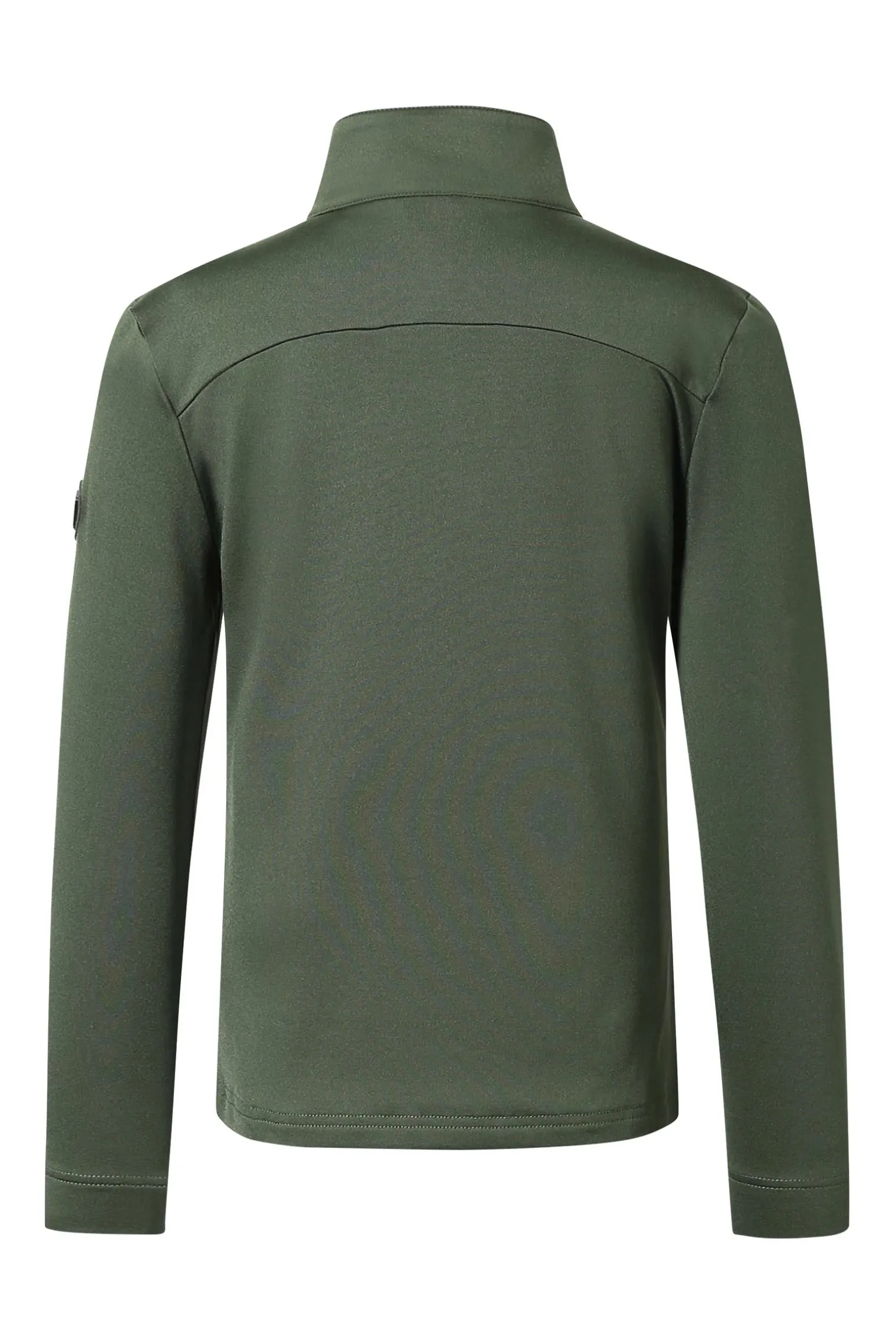 Zeitloses Shirt aus elastischem und innen aufgerauhtem Material, mit körpernahem Schnitt und Stehkragen.