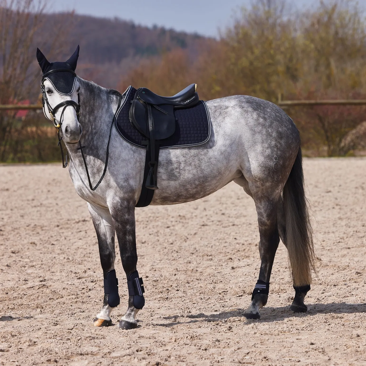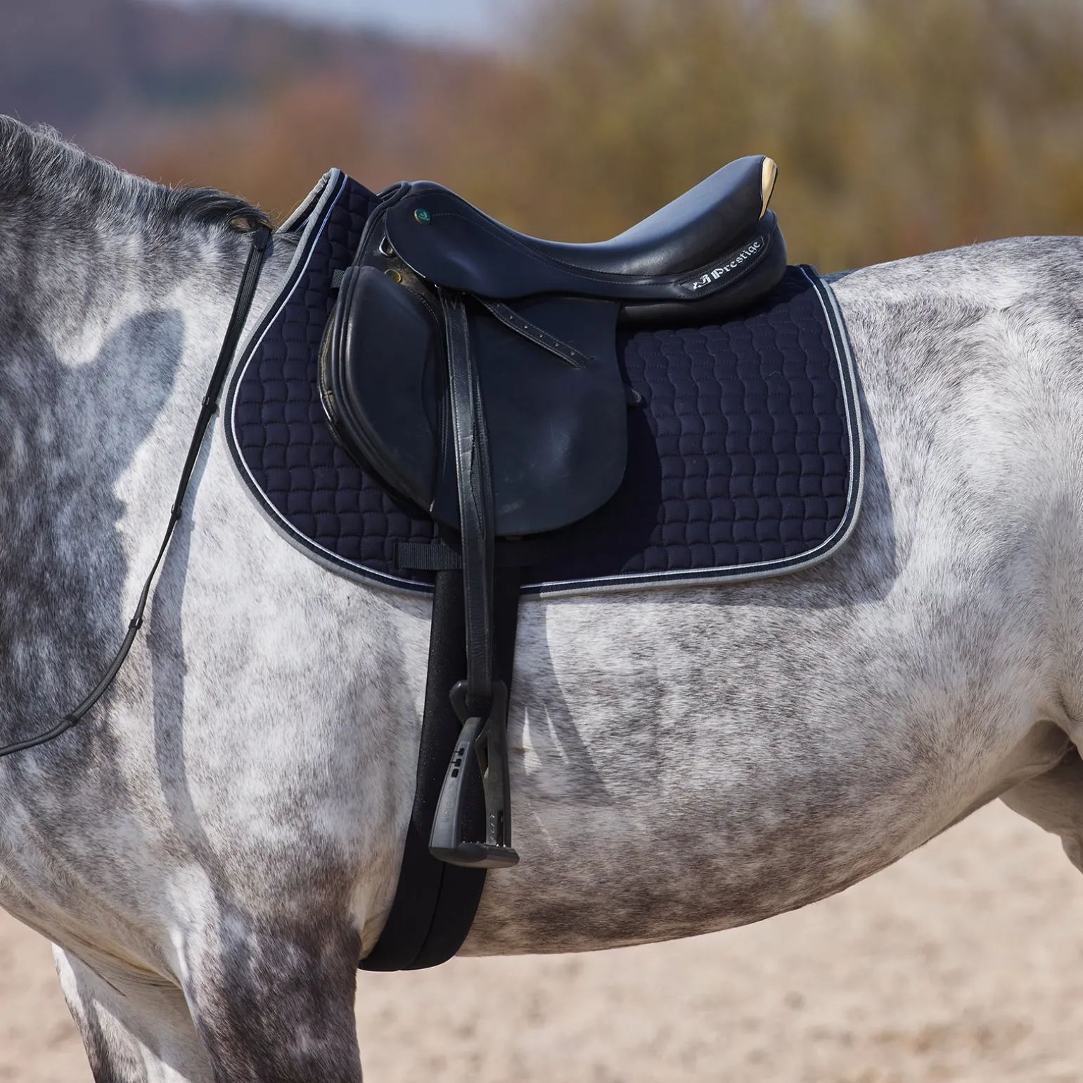 Die Horze Adepto Schabracke besteht aus weicher Baumwolle. Der Rand ist mit weichem, zweifarbigen Band dekoriert. Die quadratische Steppung und weiche Polsterung sorgen für eine bequeme Passform. Klettverschlüsse halten die Schabracke an ihrem Platz. Strahlende Farben passen zu deiner Reitausrüstung und bringen Spaß in dein tägliches Training. Kombiniere sie mit den Adepto Gamaschen und Streichkappen für einen kompletten Look.