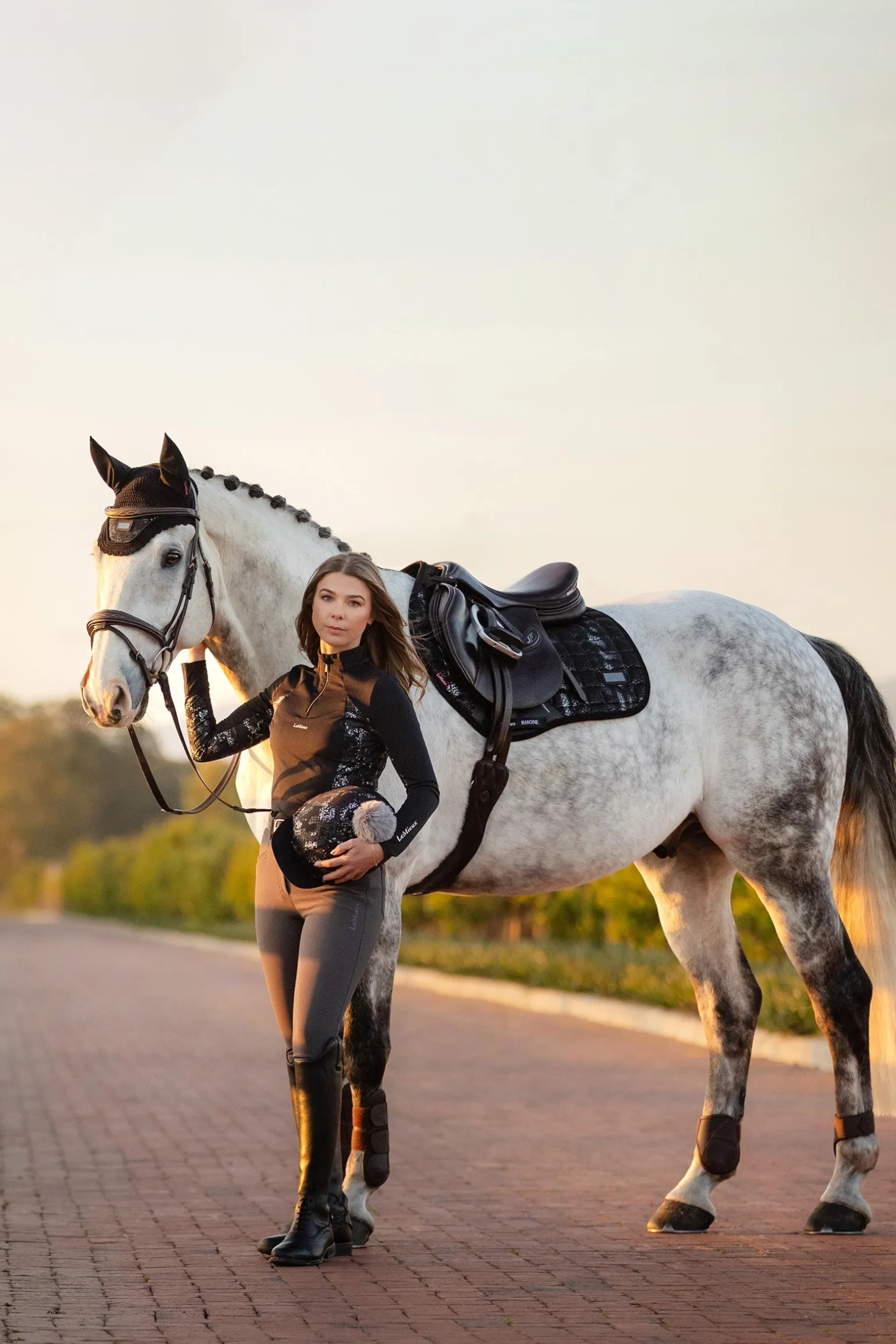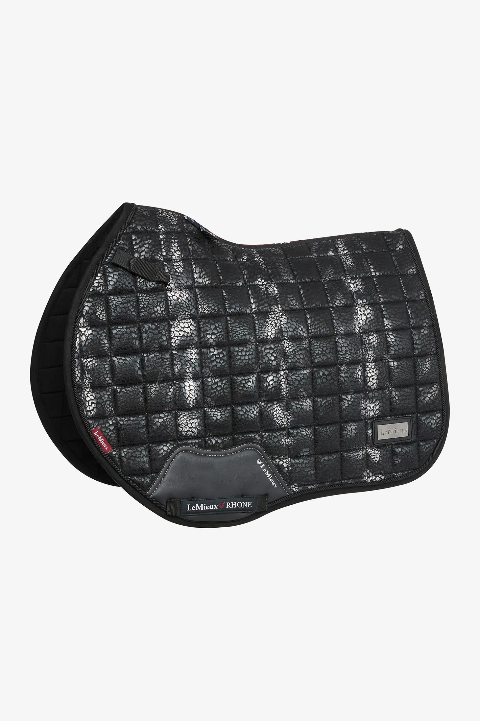 Diese superweiche Wildlederschabracke ist mit einem metallischen Aufdruck und einem Abzeichen versehen und kombiniert außergewöhnliche Qualität mit auffälligem Stil. Die einzigartige Form ist so konzipiert, dass sie auf eine Vielzahl von Dressursätteln passt, Stöße absorbiert und für zusätzliche Polsterung unter dem Sattel sorgt. Unser bahnbrechendes Bambusfutter reguliert die Körpertemperatur, indem es Schweiß und Feuchtigkeit direkt von der Haut Ihres Pferdes ableitet. Es minimiert außerdem die Reibung und sorgt so dafür, dass sich auch Pferde mit der empfindlichsten Haut wohlfühlen. Darüber hinaus sorgt die superweiche Wildlederbindung dafür, dass das Pad seine Form behält. Vervollständigen Sie Ihr Reit-Setup mit dem passenden Baselayer und der Hutseide.