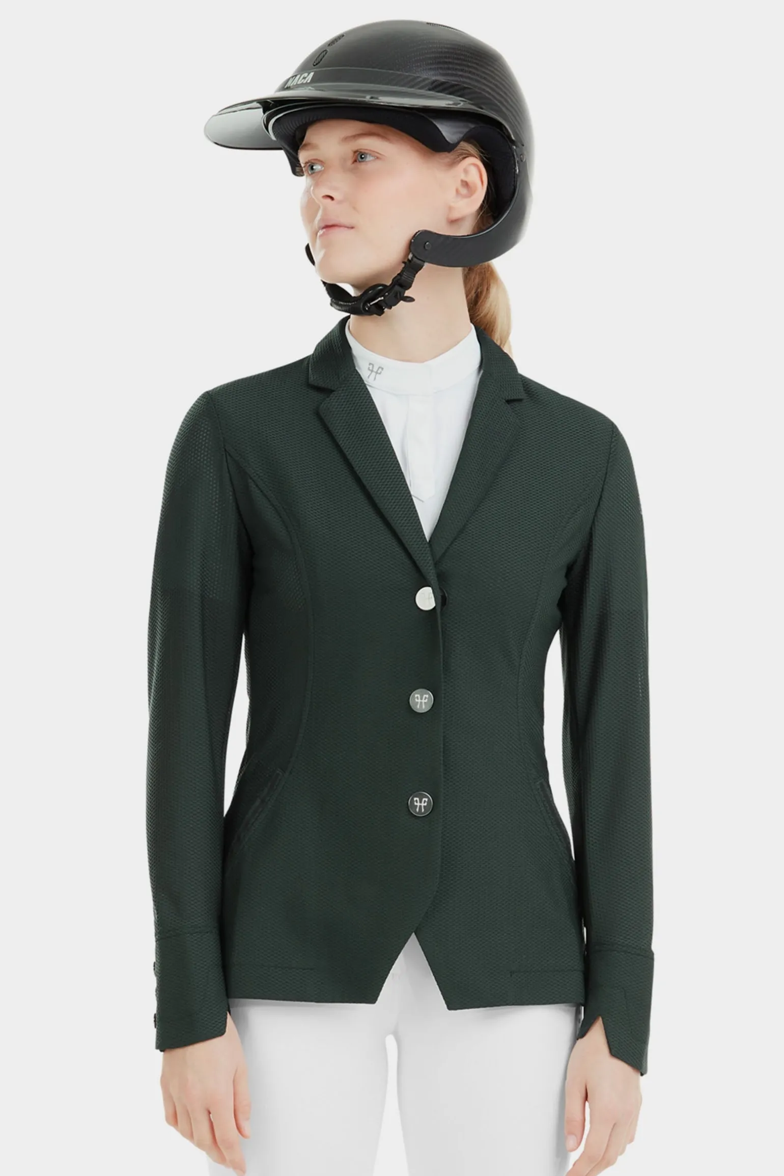 Leichte, atmungsaktive Sportjacke für Wettbewerbe. Wie das beliebte Aerotech Jacket bietet auch das neue Aeromesh eine komplette Turnierausstattung. Der Grundschnitt ist der gleiche: eine ergonomische Passform, die mit jeder Bewegung beim Reiten mitgeht. Was das Aeromesh so speziell macht, ist das neue, sehr elastische und dampfdurchlässige Material, das es zum perfekten Turniersakko für den Sommer macht. Überschüssige Wärme kann ungehindert durch die feinen Wabenstrukturen im Stoff entweichen, so bietet es besten Tragekomfort. Das Aeromesh Jacket ist so leicht, dass man es kaum spürt. Neben der rundum technischen Materialien und Ausstattung entspricht das Aeromesh Jacket natürlich den Vorgaben für Turnierbekleidung. Und genau wie das Aerotech ist auch das. Aeromesh Jacket kompatibel mit Horse Pilots Airbag. Ein leichtes Wekkampfsakko für eine stylische Performance.