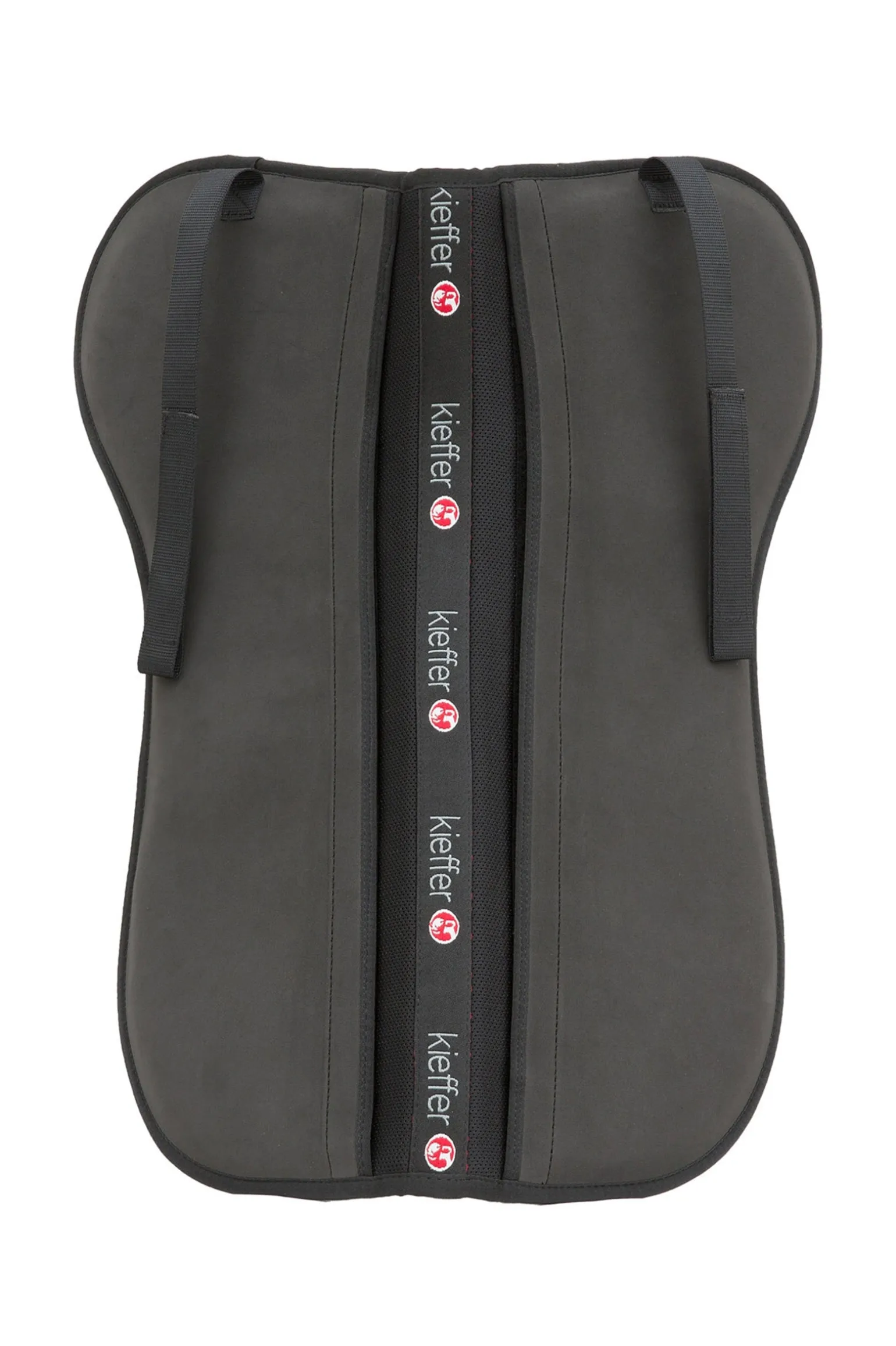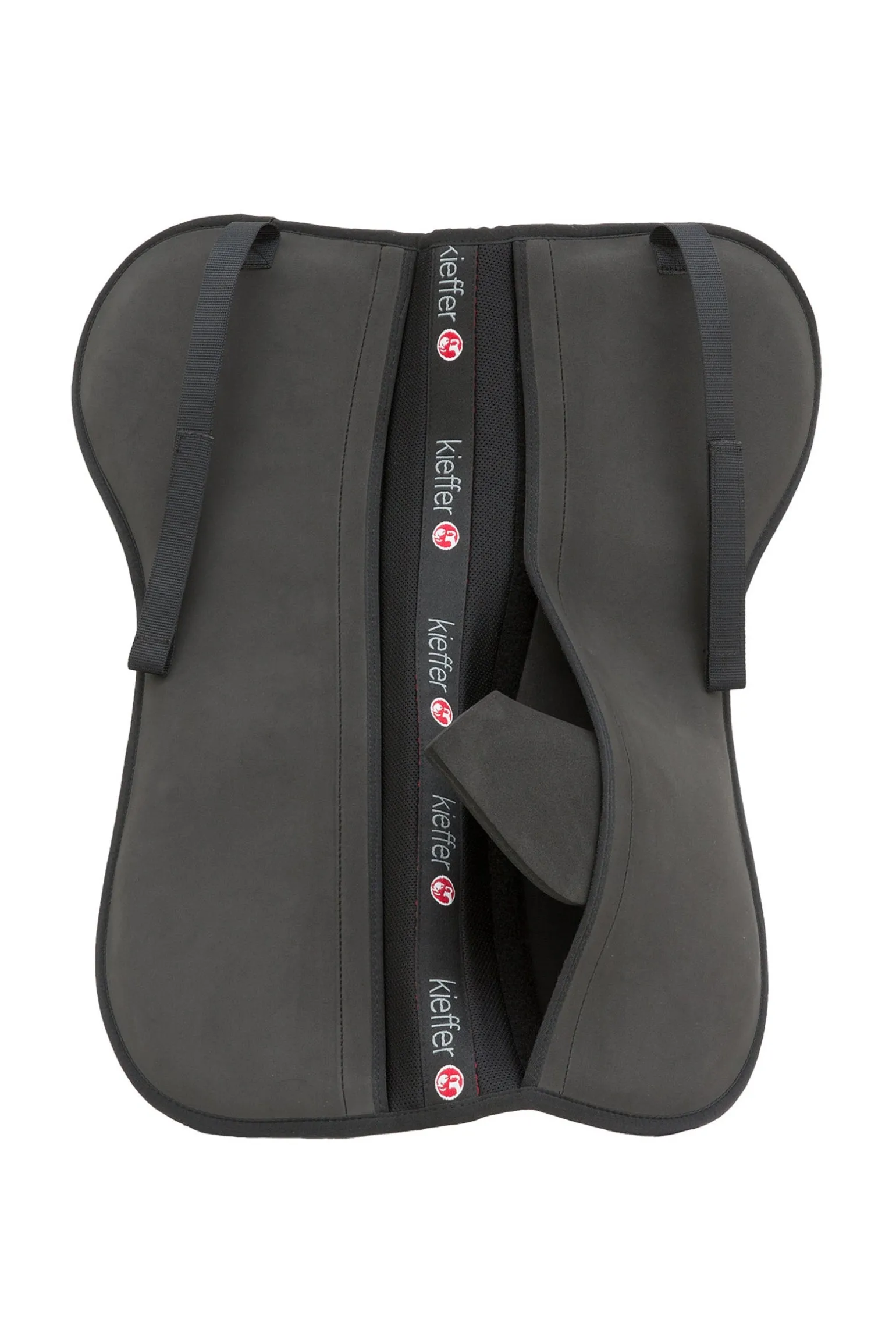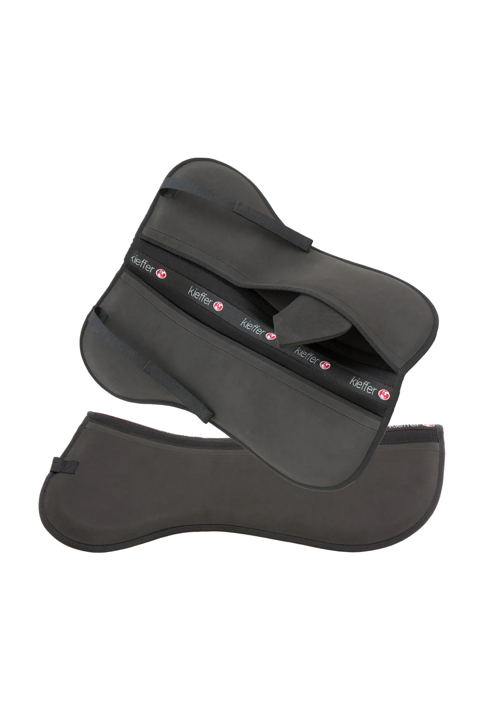 Mit Hilfe des neuen Sattel-Ausgleichspad Air-Tex von Kieffer lassen sich trainings- oder saisonbedingte Defizite in der Sattellage korrigieren. Durch Einlagepads für den vorderen, mittleren und hinteren Bereich kann schnell und unkompliziert auf Passformprobleme reagiert werden. Wenn das Sattelkissen beispielsweise im hinteren Bereich zu flach ist, kann über die integrierten Einschubtaschen des Pads der hintere Bereich durch die flexiblen Einlagen aus Moosgummi angehoben werden. Wird eine Anhebung im vorderen Bereich benötigt um ein muskuläres Defizit auszugleichen, kann das Pferd unter dem weichen Schaum die Muskulatur uneingeschränkt aufbauen. Sobald sich der Muskel aufgebaut hat und der Schwerpunkt wieder nach hinten rutscht, kann die Einlage wieder entnommen und das Pad als normales Sattelpad weiterverwendet werden. Für einen guten Tragekomfort sorgt der anatomische Schnitt des Pads mit freiem Wirbelkanal. Das bewährte Air-Tex Material ist zudem sehr atmungsaktiv und zeichnet sich durch seine Robustheit und eine schnelle Trocknung aus. Der Einsatz des Ausgleichspad Air-Tex empfiehlt sich auch bei Sätteln, die konstruktionsbedingt das benötigte Volumen allein durch Polstern nicht mehr erreichen können.