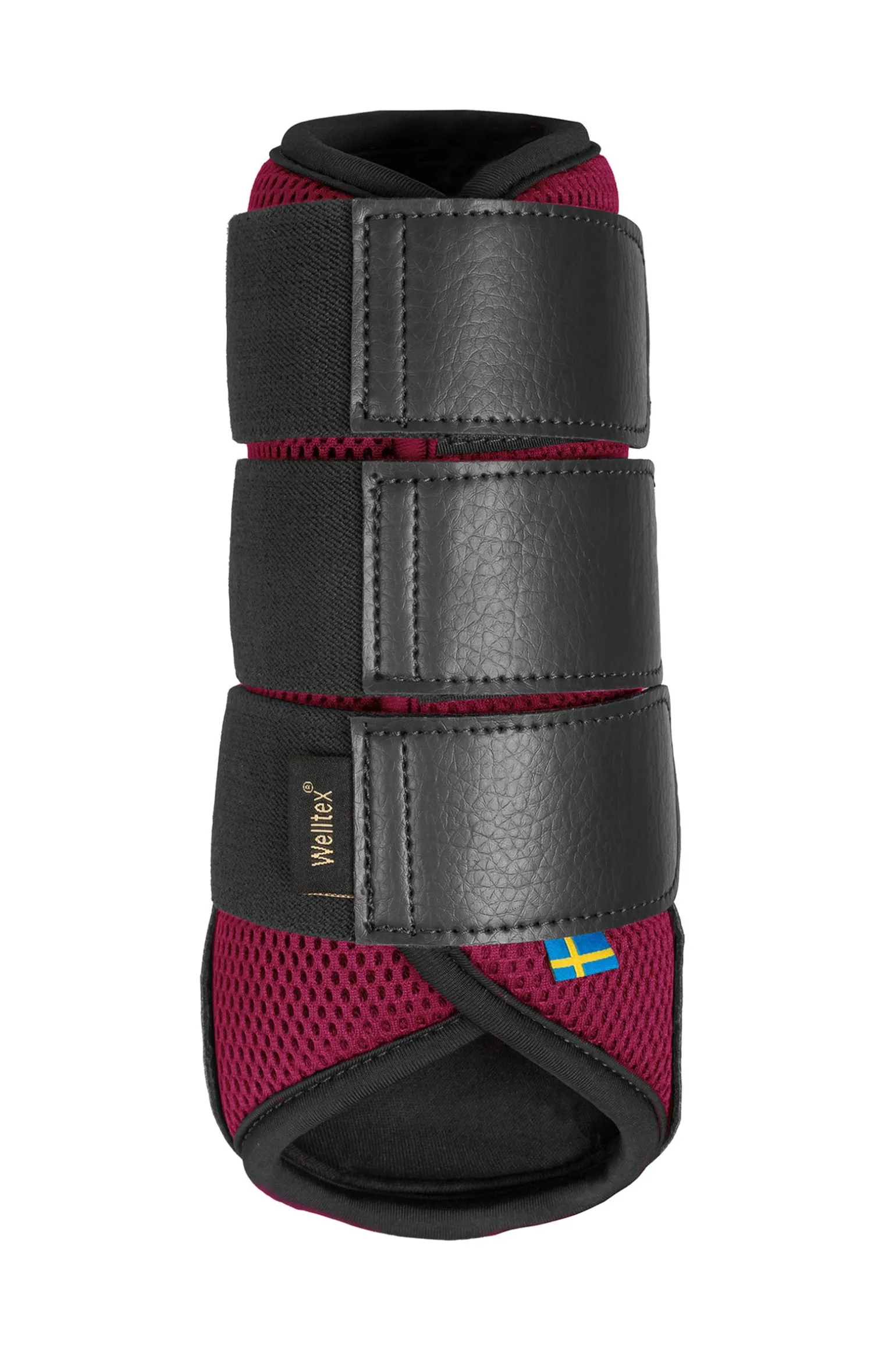 Flexible Gamaschen aus 3D-Mesh mit einer stoßdämpfenden und druckverteilenden Polsterung, die die Beine des Pferdes vor Stößen und Verletzungen schützt. Hochgradig atmungsaktiv, um Überhitzung zu vermeiden. Starke und verstärkte Klettverschlüsse sorgen für eine bequeme Passform. Stylisches Design mit Kunstleder über der verstärkten Zone und dem Ende der Riemen. Die Innenseite ist mit Welltex® gefüttert, um deinem Pferd die besten Bedingungen für Leistung und Erholung zu bieten. Diese Technologie kann die Durchblutung in dem Bereich anregen, indem sie Ferninfrarot-Energie reflektiert und die Sehnen und Gelenke unterstützen kann. Diese universell einsetzbaren und einfach zu handhabenden Gamaschen sind sowohl für die Vorder- als auch für die Hinterbeine geeignet. Für eine optimale Passform empfehlen wir, für die Hinterbeine eine Nummer größer zu wählen.