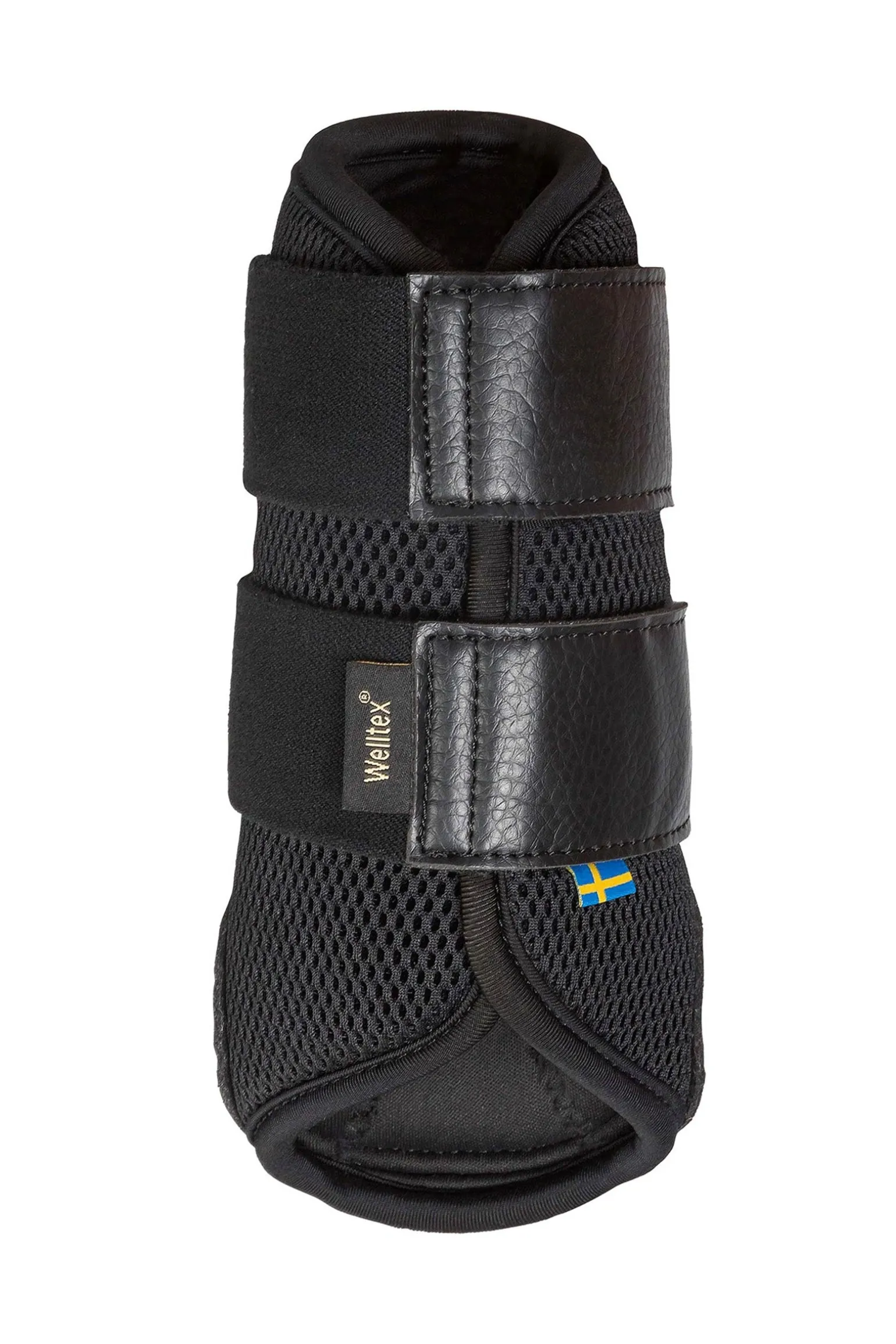 Flexible Gamaschen aus 3D-Mesh mit einer stoßdämpfenden und druckverteilenden Polsterung, die die Beine des Pferdes vor Stößen und Verletzungen schützt. Hochgradig atmungsaktiv, um Überhitzung zu vermeiden. Starke und verstärkte Klettverschlüsse sorgen für eine bequeme Passform. Stylisches Design mit Kunstleder über der verstärkten Zone und dem Ende der Riemen. Die Innenseite ist mit Welltex® gefüttert, um deinem Pferd die besten Bedingungen für Leistung und Erholung zu bieten. Diese Technologie kann die Durchblutung in dem Bereich anregen, indem sie Ferninfrarot-Energie reflektiert und die Sehnen und Gelenke unterstützen kann. Diese universell einsetzbaren und einfach zu handhabenden Gamaschen sind sowohl für die Vorder- als auch für die Hinterbeine geeignet. Für eine optimale Passform empfehlen wir, für die Hinterbeine eine Nummer größer zu wählen.