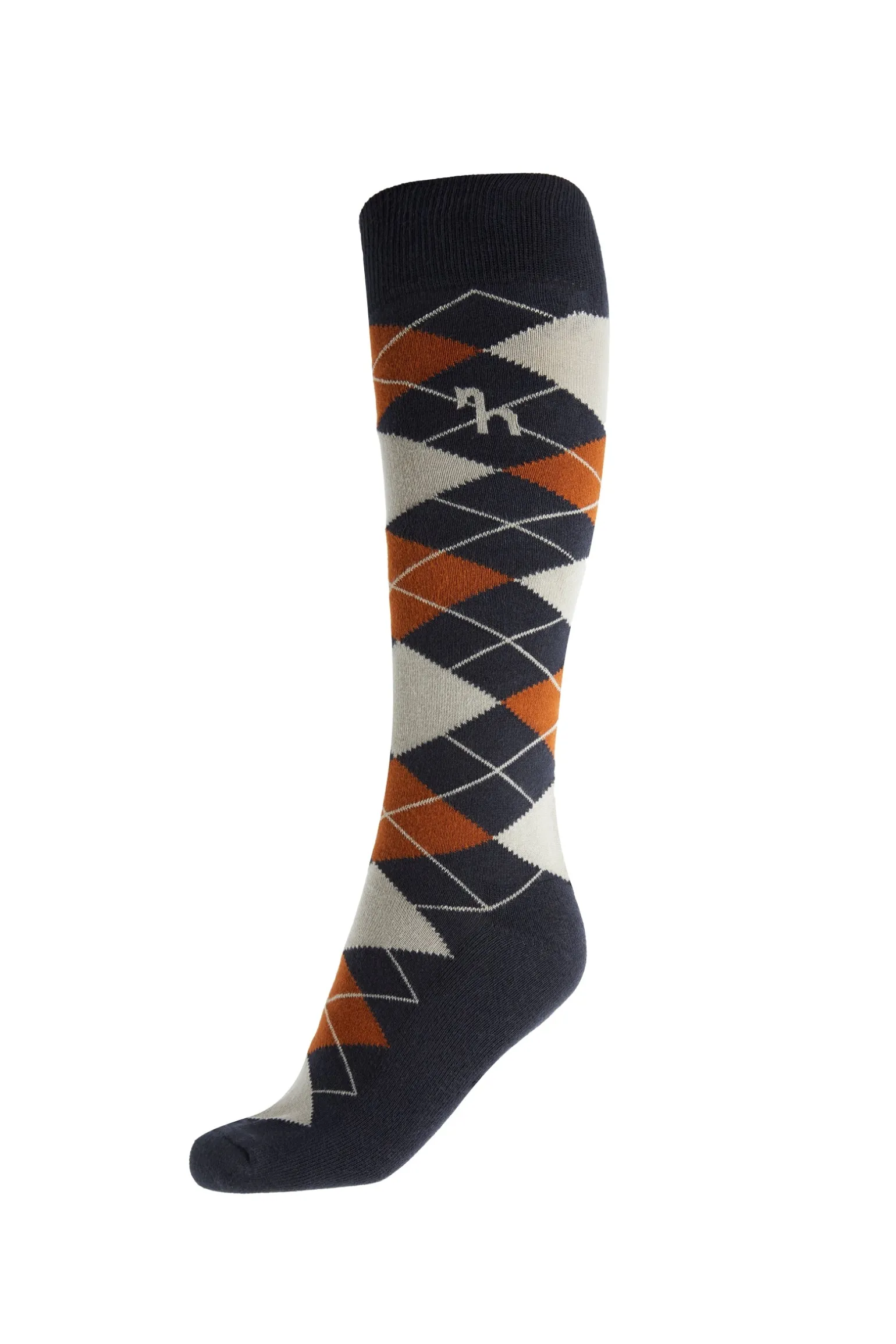 Die weichen, bequemen Socken wirst du in allen Farbkombinationen haben wollen. Die hohen Kniestrümpfe sind wunderbar über Reithosen oder Jeans, denn dieses tolle Muster will man nicht verstecken. Der Fuß aus Baumwoll-Terry-Mix ist atmungsaktiv und ist für bessere Haltbarkeit zusätzlich verstärkt.