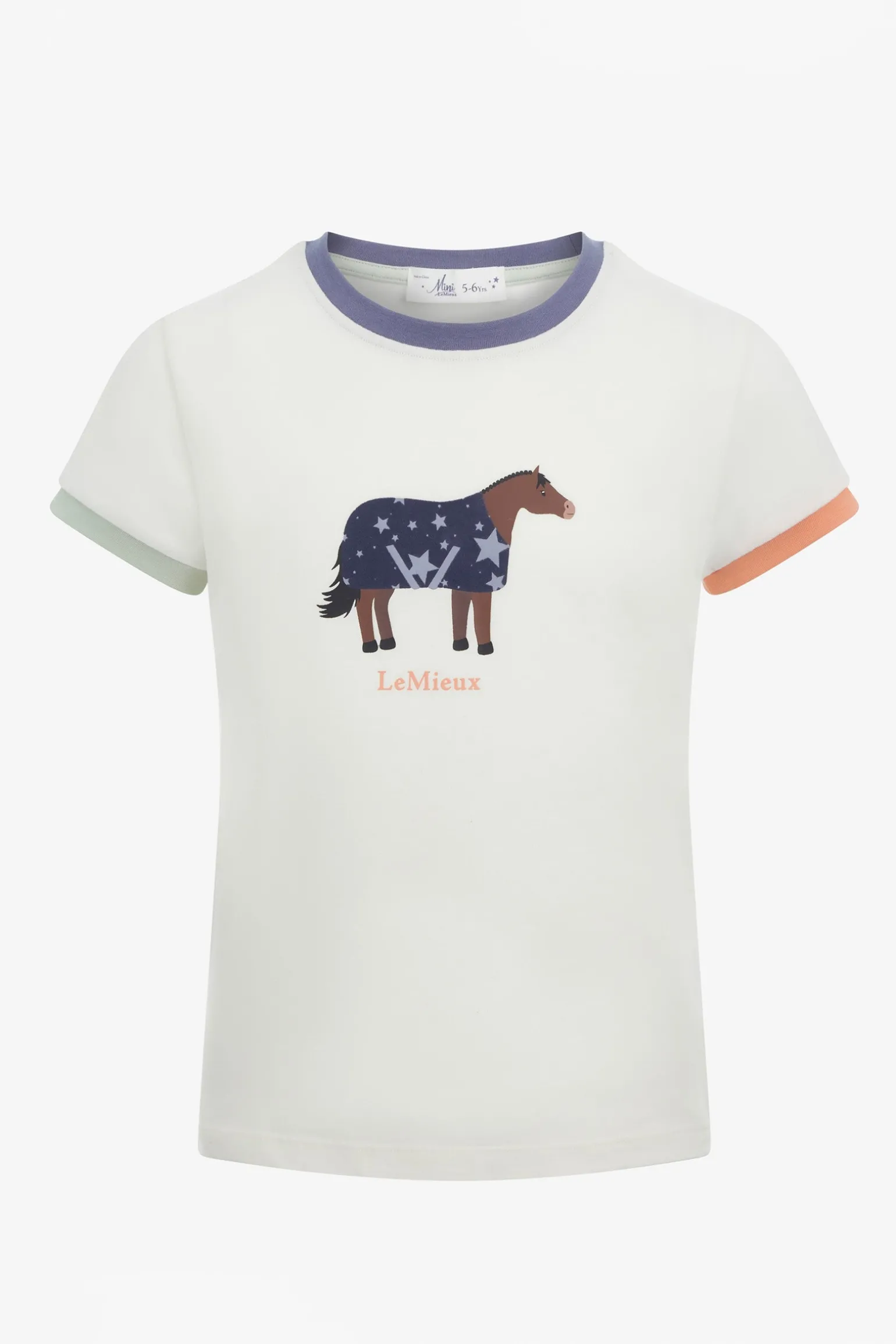 Das LeMieux Kids Alex Tee besteht aus superweichem, angenehm zu tragendem Material für ganztägigen Komfort. Eine spielerische und stilvolle Wahl für junge Reiterinnen und Reiter.