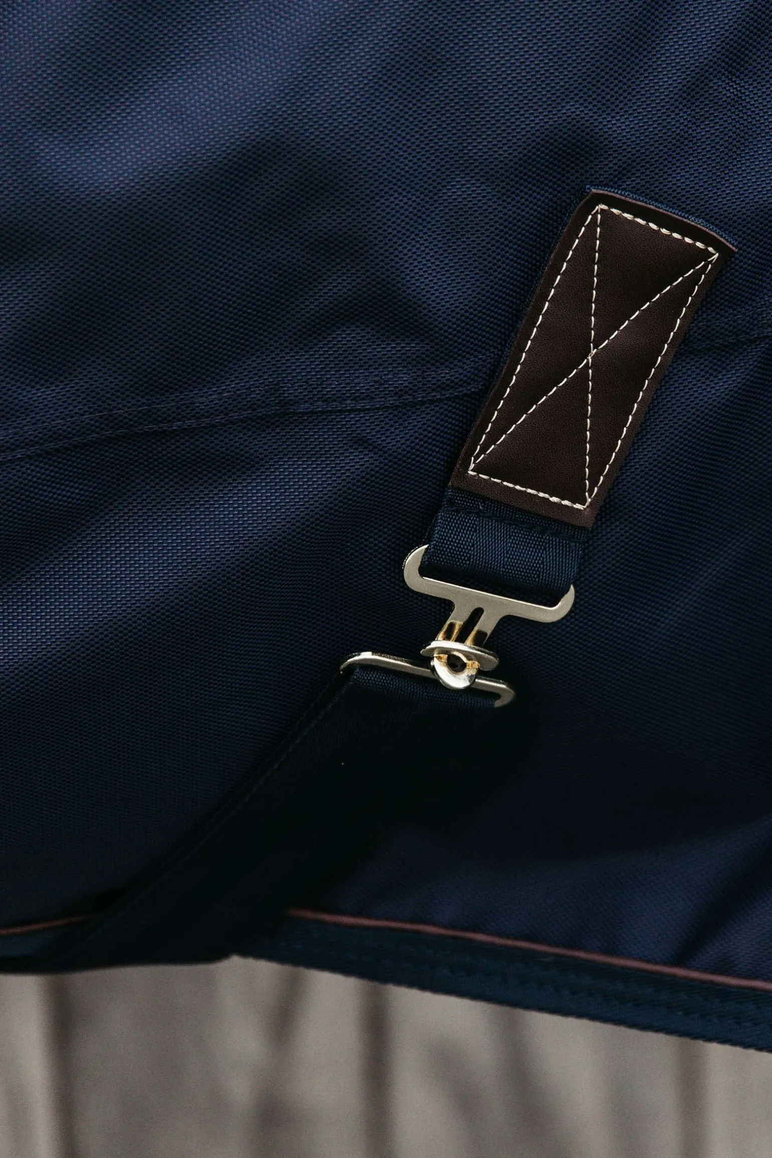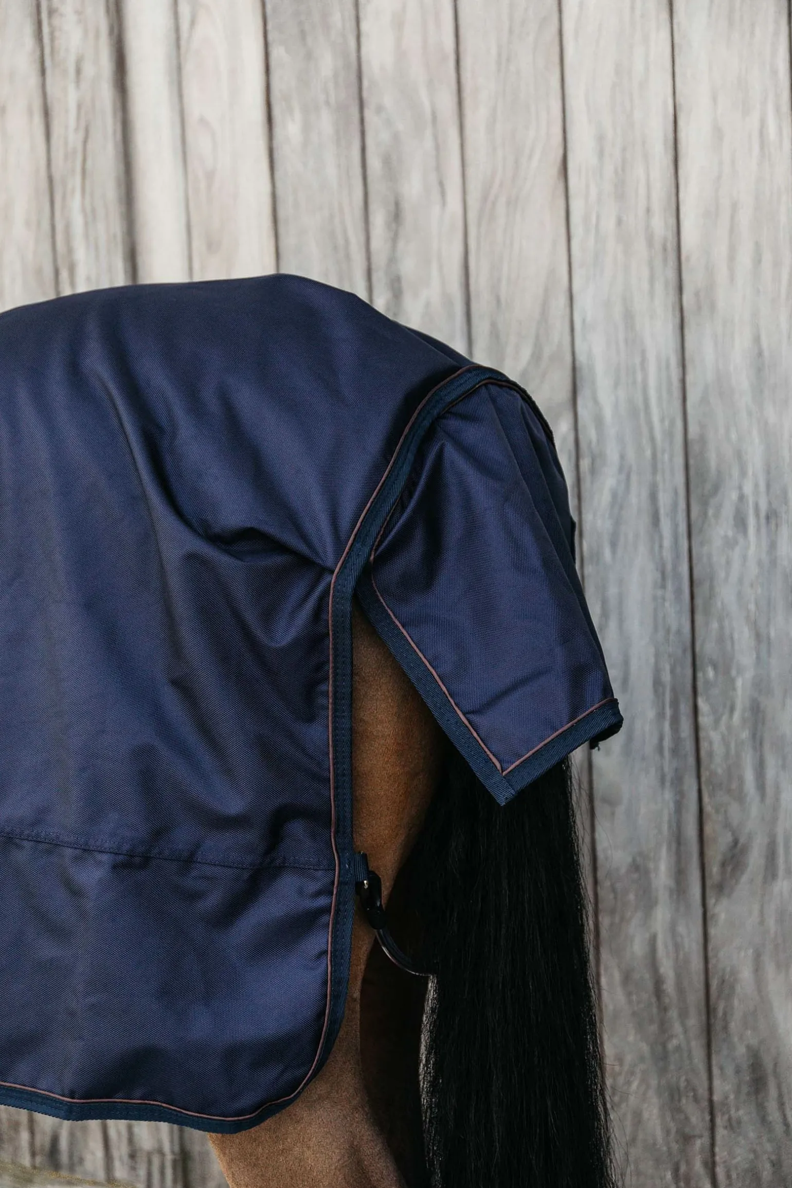 Die Turnout Rug All Weather hat zwei Frontverschlüsse an der Brust, eine Bauchkreuzbegurtung und einem Schweifriemen mit einem Hygieneüberzug.