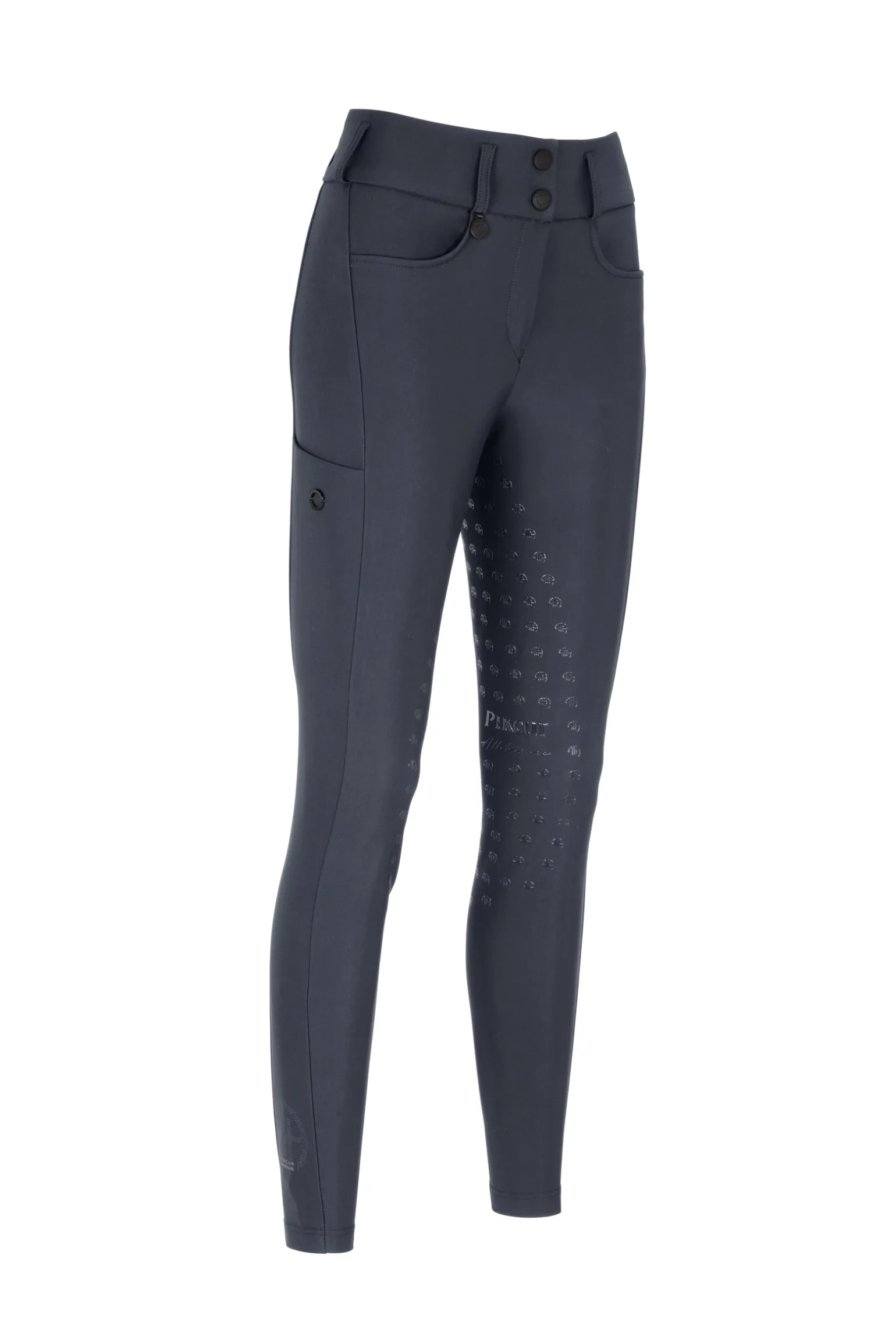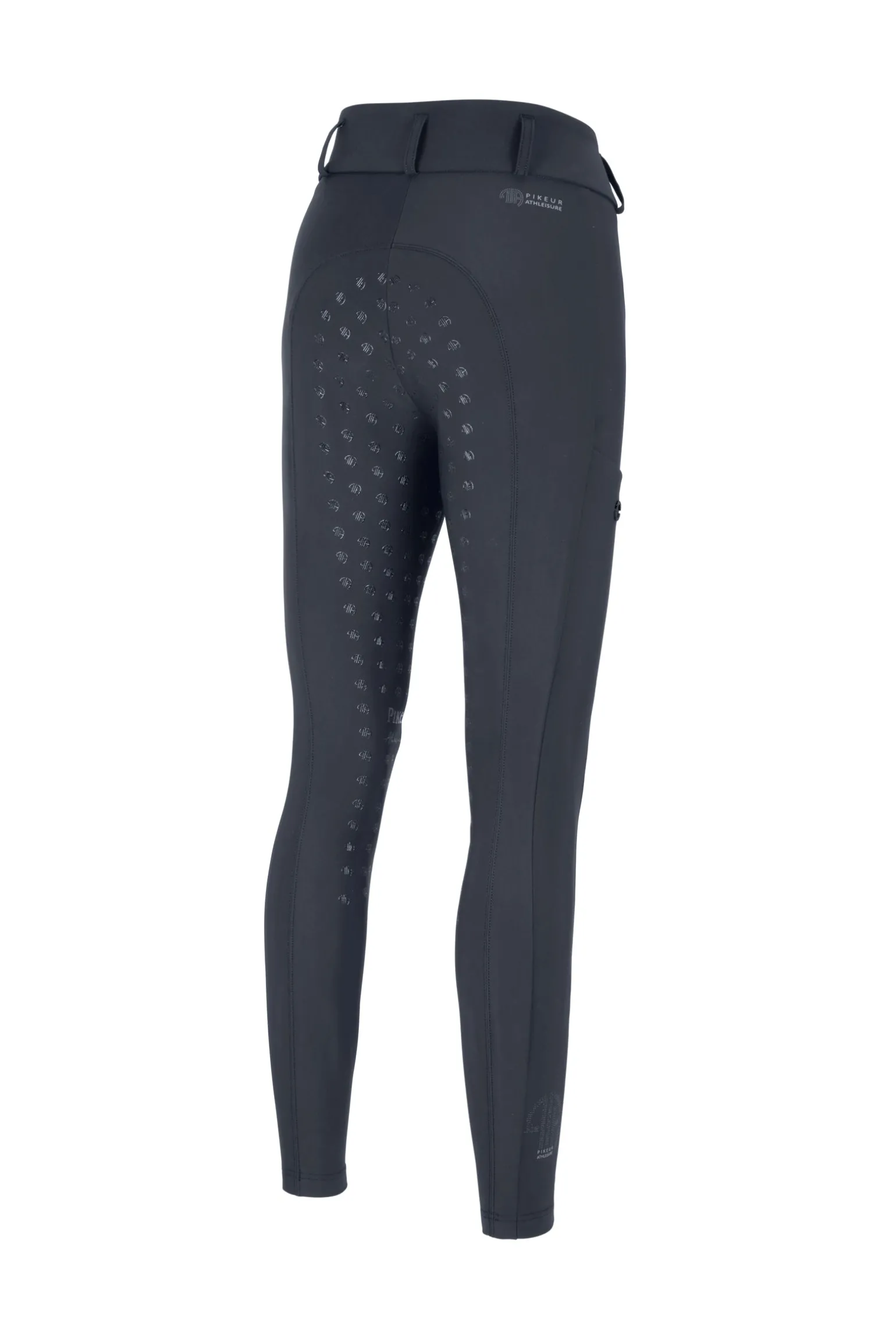 Diese Reithose mit mittlerer Taille ist gefertigt aus atmungsaktivem Tech-Jersey-Funktionsmaterial mit integriertem UV-Schutz und bietet Komfort und Langlebigkeit. Das Design umfasst ein Screenprint-Panel im Pikeur Athleisure (PA) Stil sowie abgerundete, schräge Taschen und Seitenstreifen mit integrierter Handytasche. Ein breiter Bund mit doppeltem Bundabschluss sorgt für sicheren Sitz, während das Pikeur Athleisure-Logo einen stilvollen Akzent am Knöchel und unterhalb des Bundes verleiht.