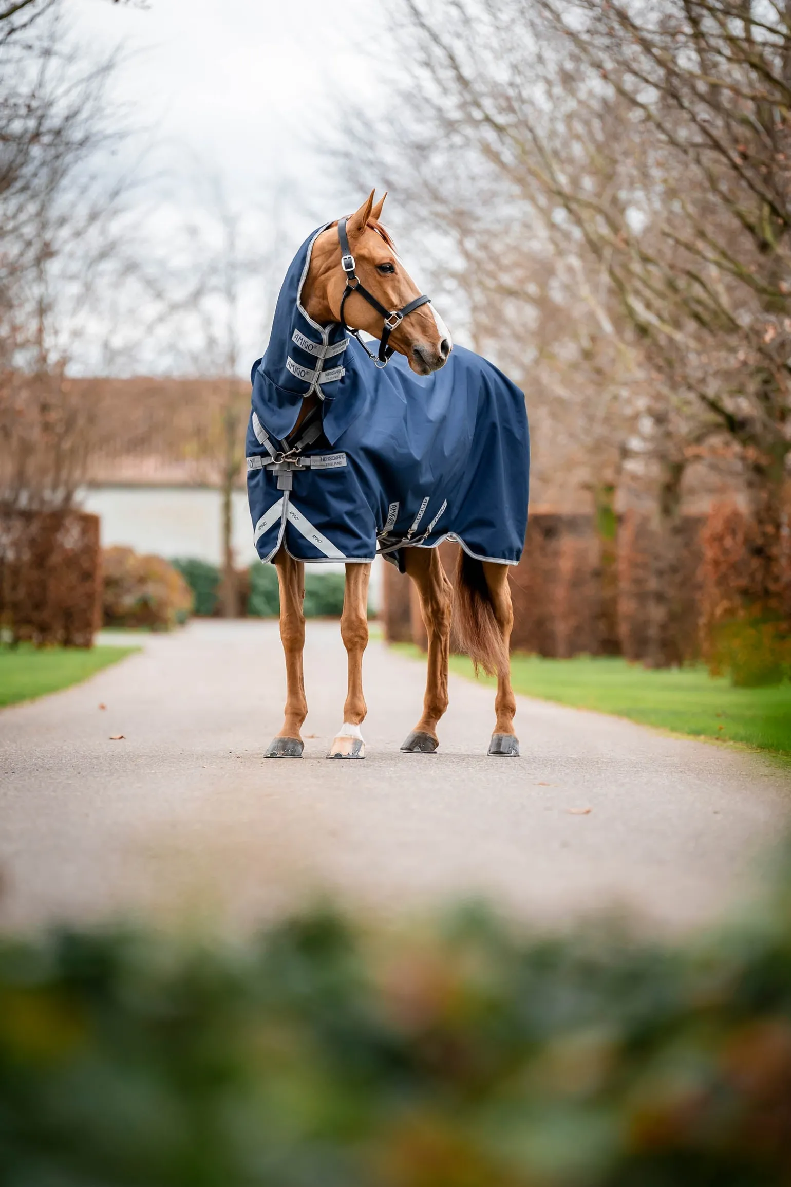 Die Amigo® 1200D Integrated Turnout 250 g wurde für einen körpernahen Sitz und vollständigen Schutz vor Witterungseinflüssen entwickelt. Das integrierte Halsteil reduziert den Druck auf den Widerrist – ideal für schmale oder hoch aufgewölbte Pferdetypen. Das wasserdichte und atmungsaktive 1200D Polyester-Außenmaterial mit 250 g Füllung sorgt für Wärme, Trockenheit und Komfort. Das antistatische und antibakterielle Innenfutter unterstützt die Fellgesundheit und verleiht natürlichen Glanz. Der Surefit V-Verschluss vorne, die doppelten Beinausschnitte und drei Kreuzgurte sorgen für sicheren Sitz und uneingeschränkte Bewegungsfreiheit. Zur Ausstattung gehören ein abwischbarer Schweifriemen, innere Befestigungsschlaufen für optionale Beingurte und reflektierende Streifen zur besseren Sichtbarkeit bei schlechten Lichtverhältnissen.
