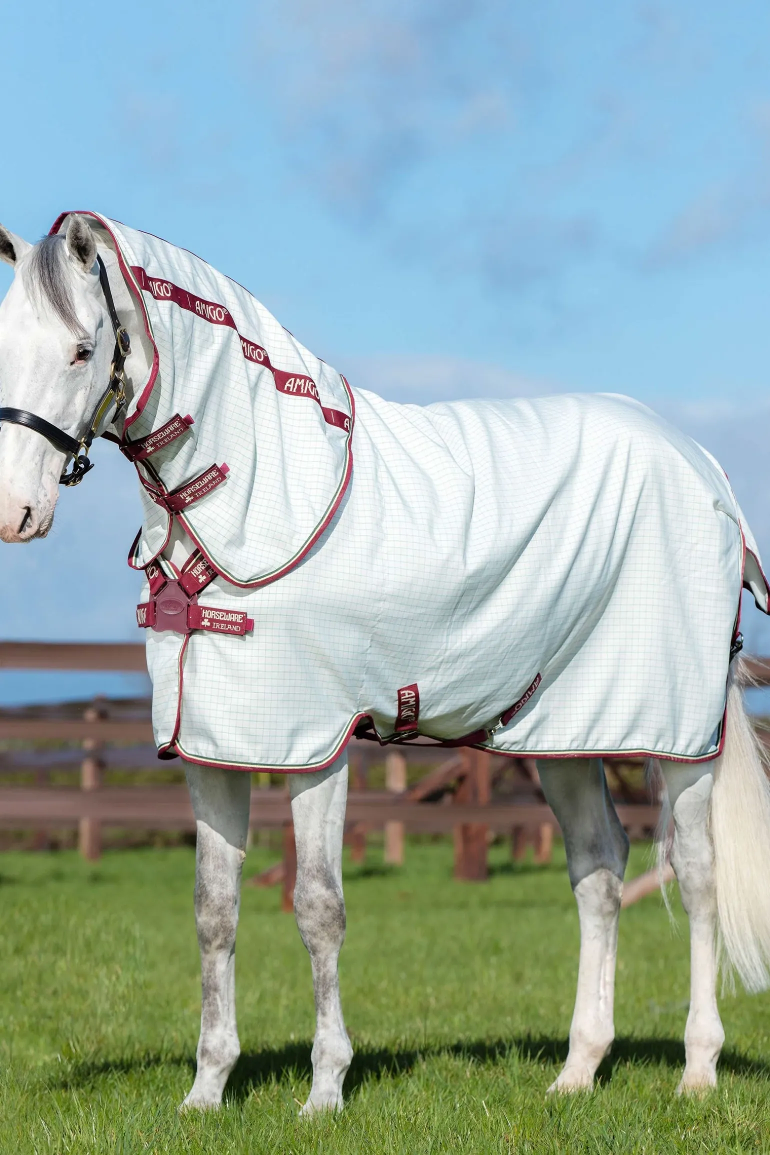 Die Amigo Fliegendecke Plus schützt das Fell deines Pferdes vor UV-Schäden und hält Fliegen fern. Das leichte Ripstop-Polyester-Außenmaterial ist wasserabweisend, der Disc-Front-Verschluss und das Surefit-Halsdesign bieten deinem Pferd die perfekte Passform und ein leichtes Tragegefühl. Vordere Beinausschnitte, Kreuzgurte, eine abnehmbares Halsteil und eine leicht zu reinigende Schweifkordel sorgen für Komfort für dein Pferd.