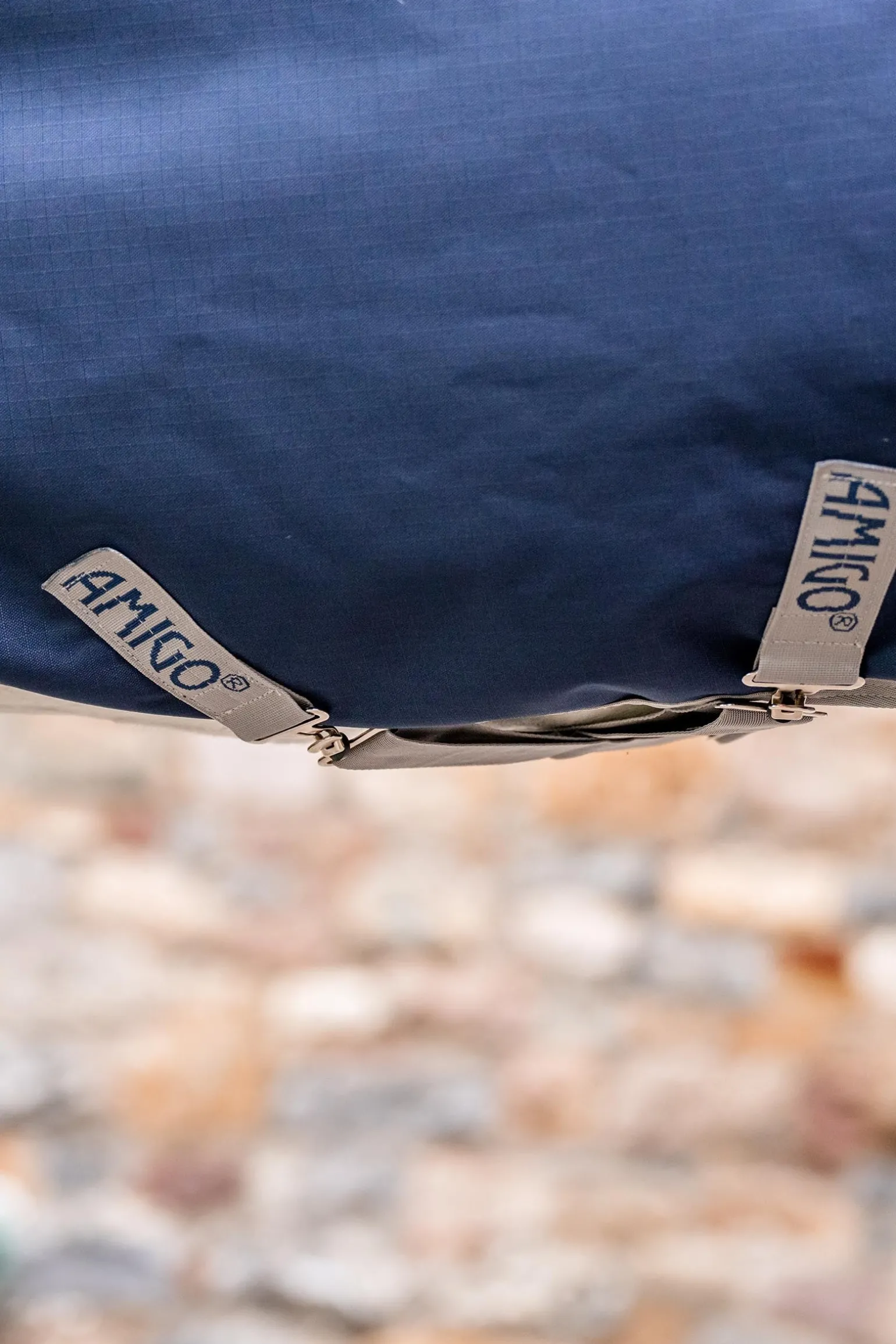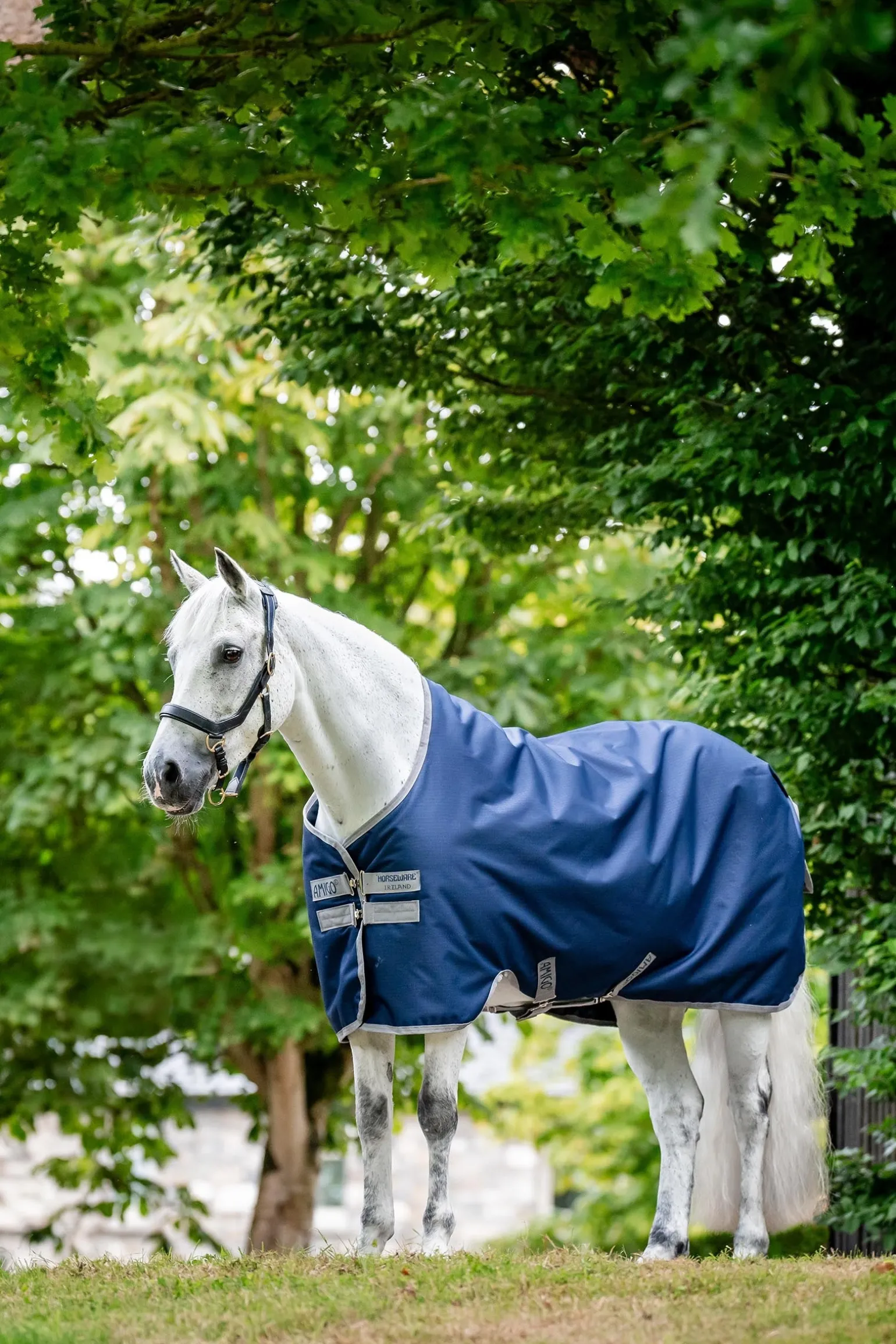 Die Amigo® Ripstop 900D Outdoordecke mit Fleecefutter (50 g Light) bietet deinem Pferd unvergleichlichen Schutz und Komfort. Aus einem 900D Ripstop Polyester-Außenmaterial gefertigt, hält diese Decke dein Pferd trocken und warm, während das strapazierfähige, wasserdichte Gewebe eine hervorragende Atmungsaktivität bietet – perfekt für mildes Wetter und kühle Temperaturen. Der gerade Frontverschluss und die Vorderbeinausschnitte erhöhen den Komfort, indem sie mehr Bewegungsfreiheit ermöglichen. Ein glanzverstärkendes Schulterfutter und ein weiches, atmungsaktives, feuchtigkeitsabsorbierendes Fleecefutter bieten maximalen Komfort, während zwei Kreuzgurte einen sicheren Sitz gewährleisten. Schlaufen für Liner und Halsteil ermöglichen das einfache Anbringen des Amigo® Ripstop 900D Halsteils und des Horseware® Liner-Systems. Ein Schweifriemen sorgt dafür, dass die Decke sicher an Ort und Stelle bleibt. Mache die Amigo® Ripstop 900D mit Fleecefutter (50 g Light) zu deiner ersten Wahl für starken, langlebigen und atmungsaktiven Schutz, der höchsten Komfort und Vielseitigkeit vereint.