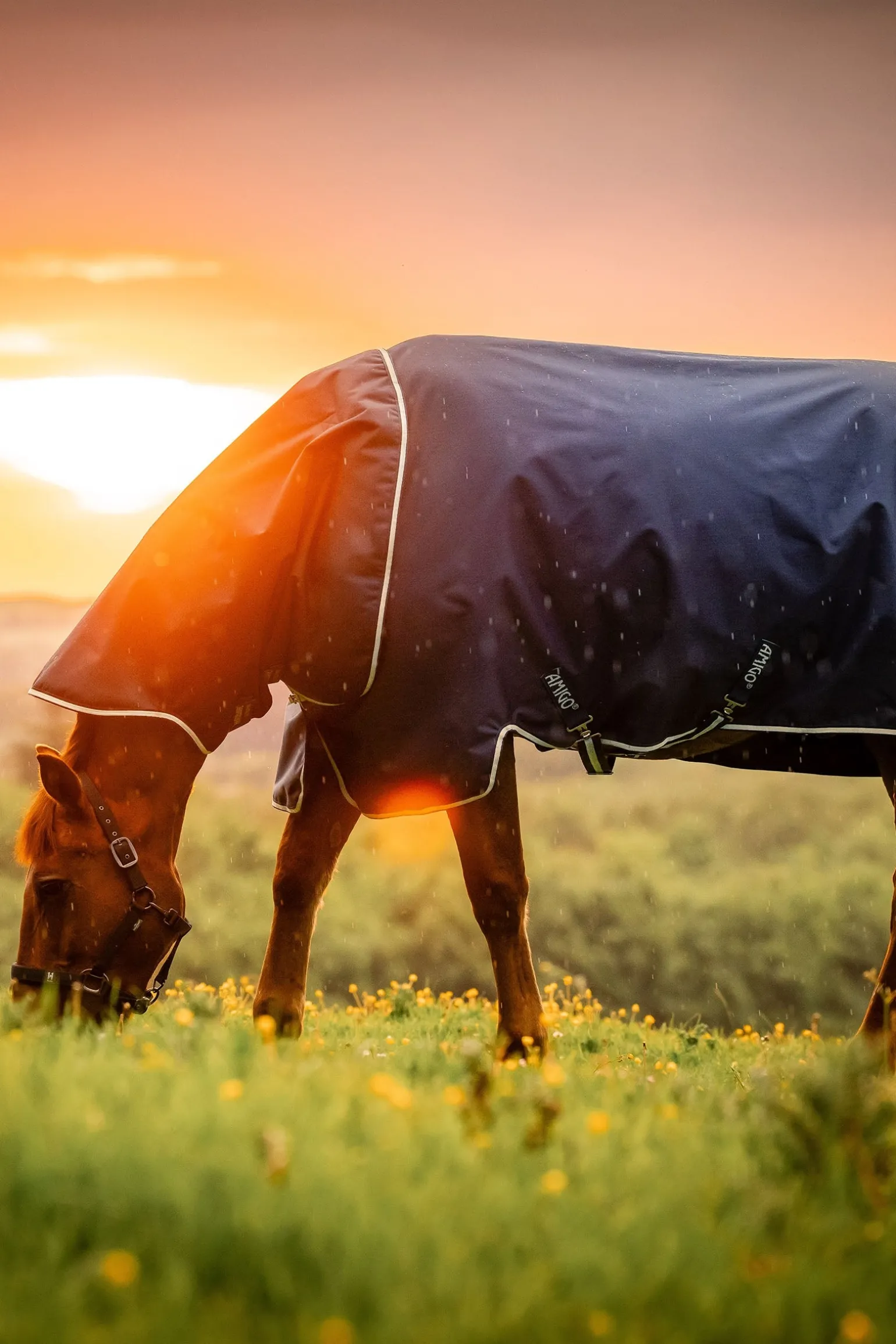 Die Amigo® Ripstop 900D Plus Weidedecke (100g Light) bietet außergewöhnlichen Schutz und Komfort für dein Pferd. Hergestellt aus robustem 900D Ripstop-Polyester, hält diese Decke dein Pferd trocken und warm. Das wasserdichte und atmungsaktive Material sorgt für optimalen Komfort bei jedem Wetter. Mit einem klassischen Frontverschluss und vorderen Beinausschnitten gestaltet, bietet diese Decke eine verbesserte Bewegungsfreiheit. Futterösen ermöglichen das Hinzufügen eines Horseware® Liners, um bei kaltem Wetter zusätzliche Wärme zu bieten. Die Decke wird mit einer abnehmbaren Kapuze geliefert, sodass sie sich an verschiedene Wetterbedingungen anpassen kann. Die Amigo® Ripstop 900D Plus Weidedecke (100g Light) verfügt über eine Fibrefill-Isolierung, ein glanzverstärkendes, antistatisches und antibakterielles Polyesterfutter, zwei Kreuzgurte und einen Schweifriemen, um eine sichere Passform zu gewährleisten, unabhängig davon, wie aktiv dein Pferd ist. Ergänze die Ausstattung deines Pferdes mit der Amigo® Ripstop 900D Plus Weidedecke (100g Light) für starken, langlebigen und atmungsaktiven Schutz.