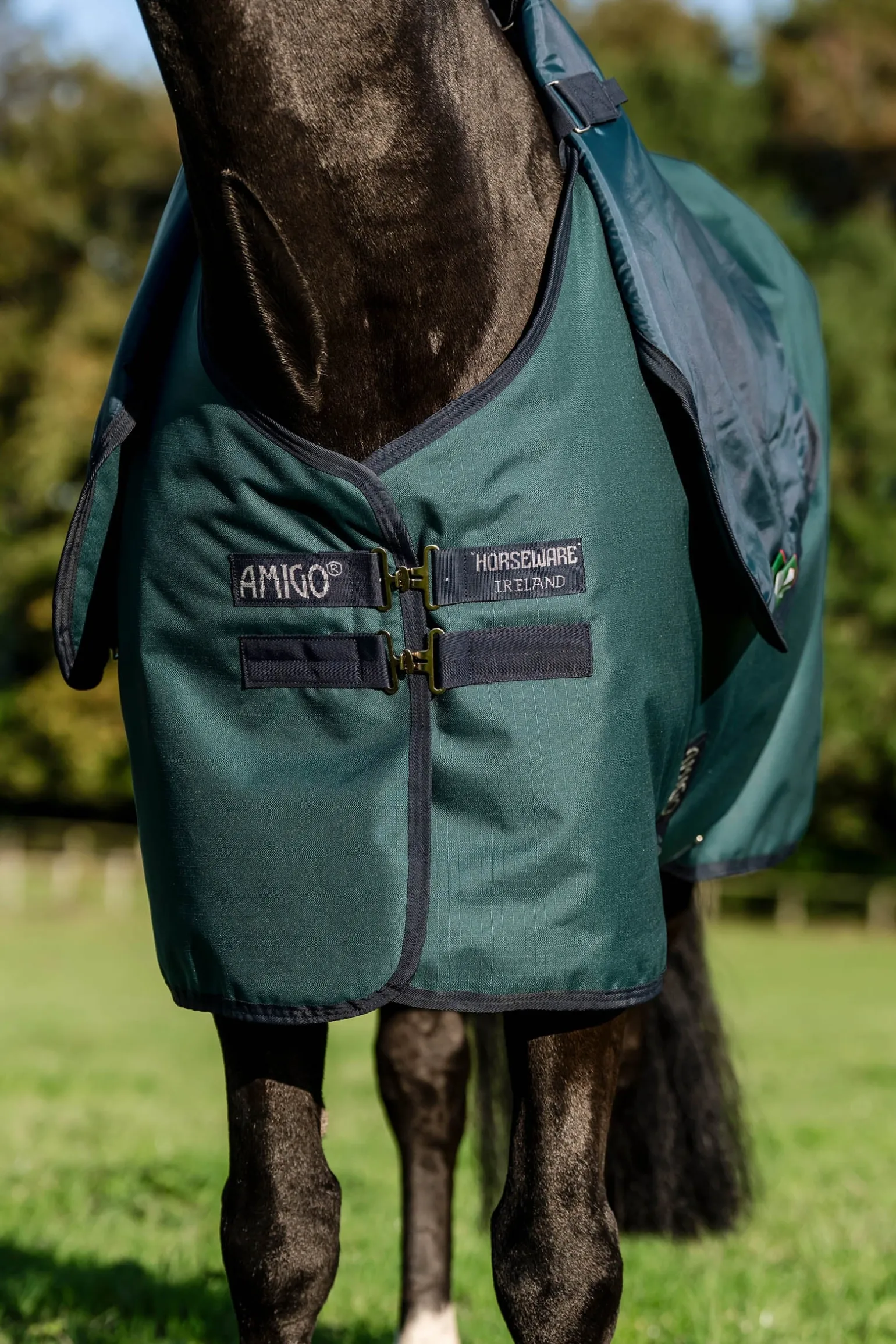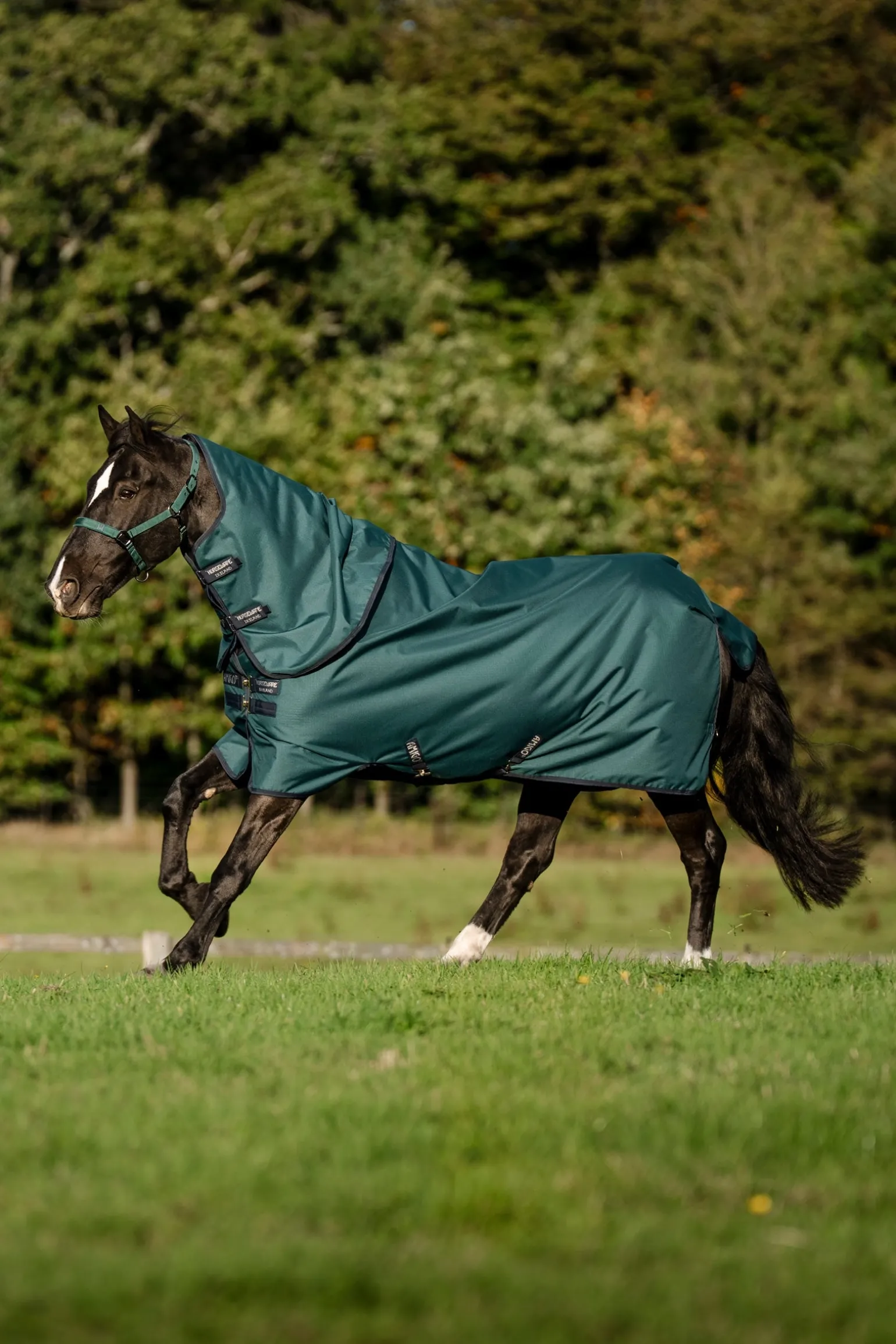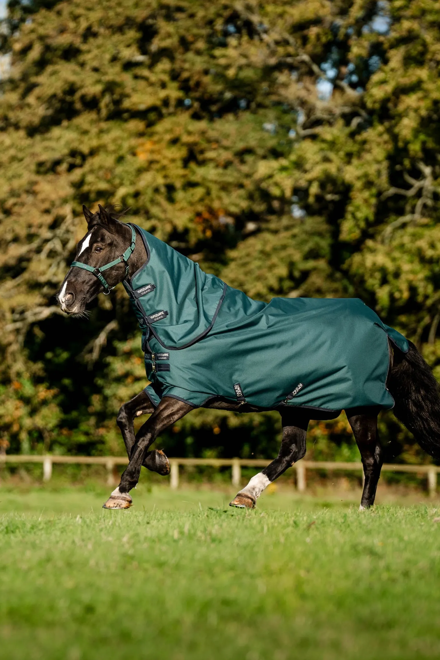 Die Amigo® Ripstop 900D Plus Weidedecke (100g Light) bietet außergewöhnlichen Schutz und Komfort für dein Pferd. Hergestellt aus robustem 900D Ripstop-Polyester, hält diese Decke dein Pferd trocken und warm. Das wasserdichte und atmungsaktive Material sorgt für optimalen Komfort bei jedem Wetter. Mit einem klassischen Frontverschluss und vorderen Beinausschnitten gestaltet, bietet diese Decke eine verbesserte Bewegungsfreiheit. Futterösen ermöglichen das Hinzufügen eines Horseware® Liners, um bei kaltem Wetter zusätzliche Wärme zu bieten. Die Decke wird mit einer abnehmbaren Kapuze geliefert, sodass sie sich an verschiedene Wetterbedingungen anpassen kann. Die Amigo® Ripstop 900D Plus Weidedecke (100g Light) verfügt über eine Fibrefill-Isolierung, ein glanzverstärkendes, antistatisches und antibakterielles Polyesterfutter, zwei Kreuzgurte und einen Schweifriemen, um eine sichere Passform zu gewährleisten, unabhängig davon, wie aktiv dein Pferd ist. Ergänze die Ausstattung deines Pferdes mit der Amigo® Ripstop 900D Plus Weidedecke (100g Light) für starken, langlebigen und atmungsaktiven Schutz.