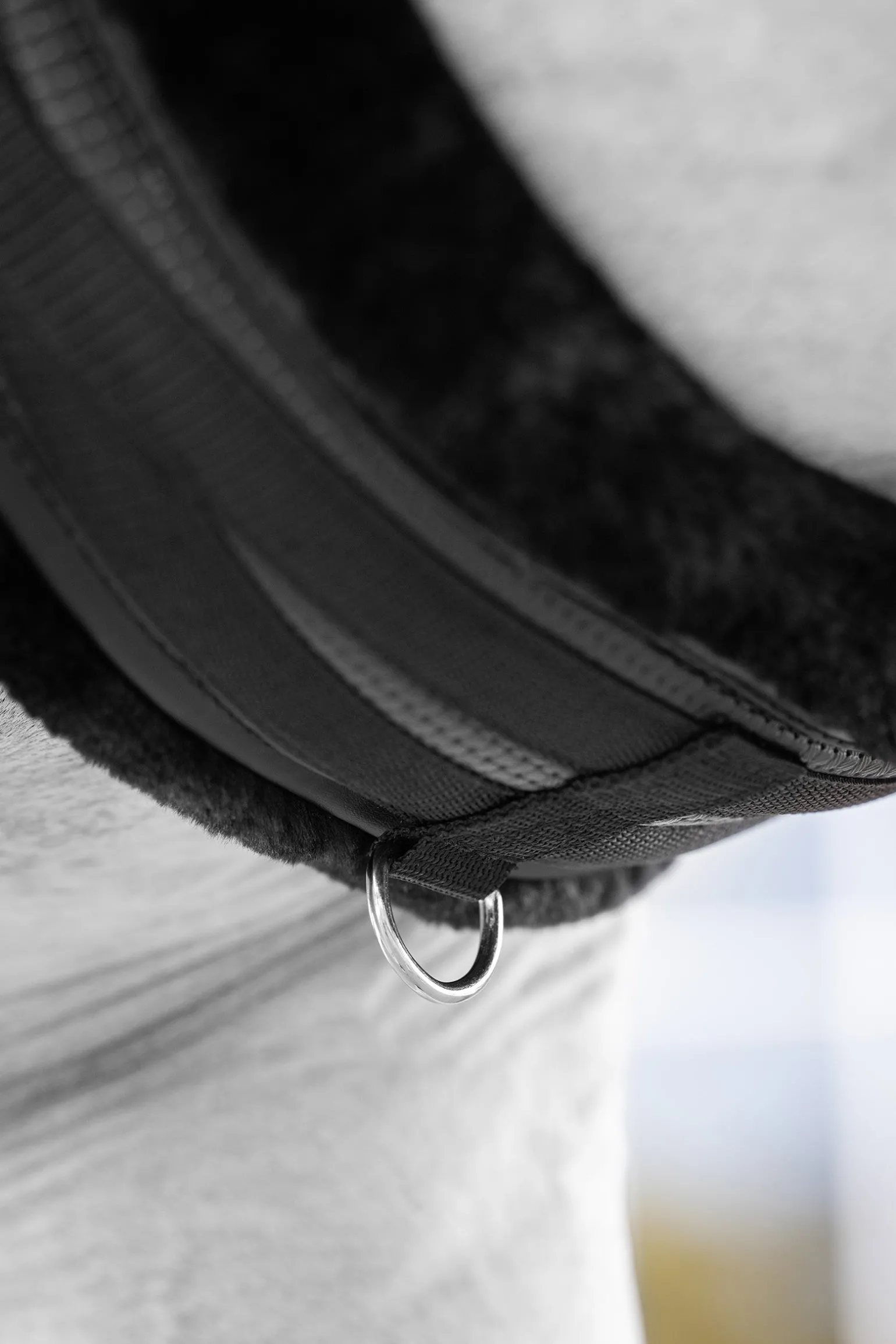 Zwei doppelte, elastische Schnallen sorgen für einen guten Sitz. Außerdem gibt es einen praktischen D-Ring, an dem du deine Hilfszügel und anderes Zubehör befestigen kannst.