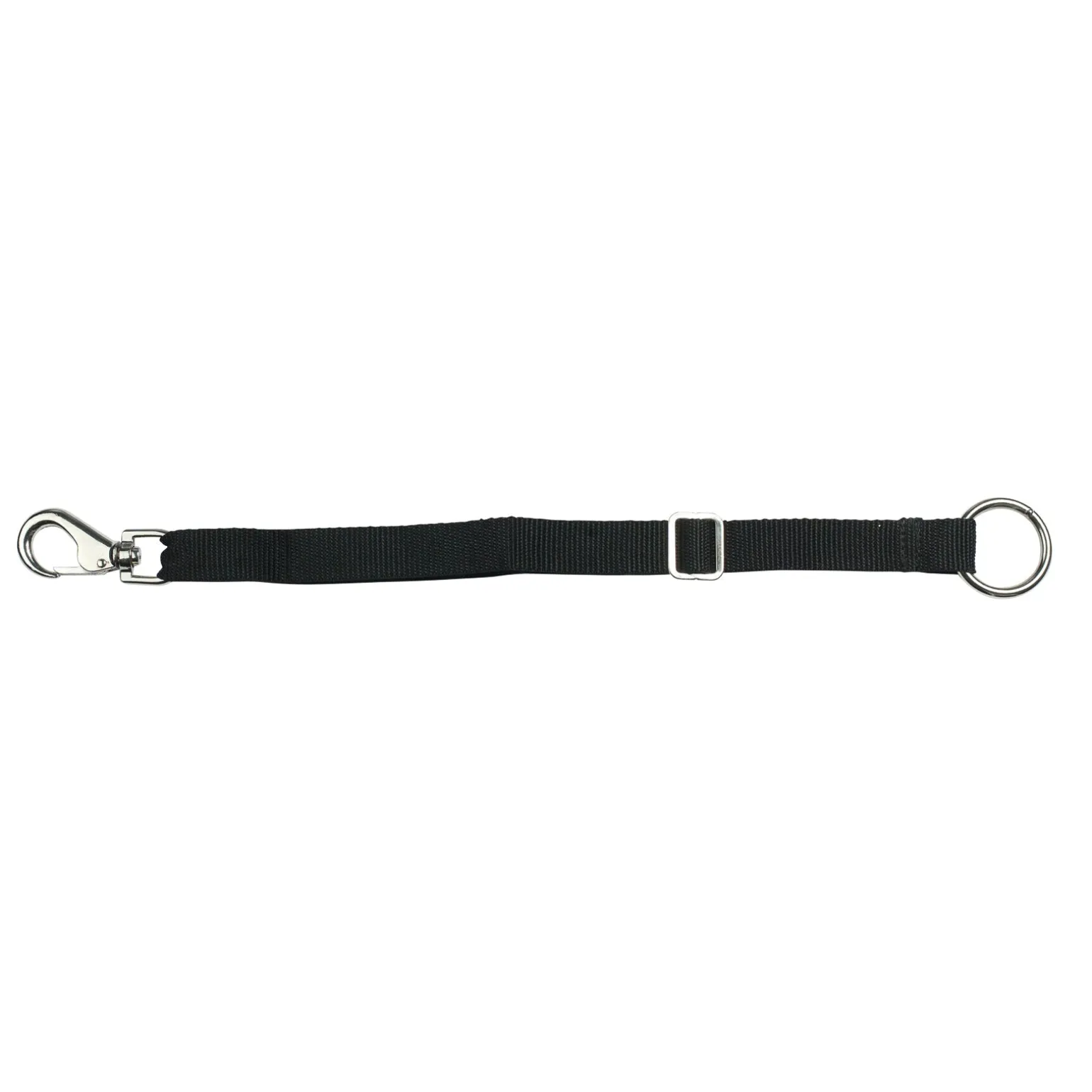 Verstellbarer Anbindestrick. Einfaches Anbringen an einem Anbindering, inklusive Karabinerhaken.