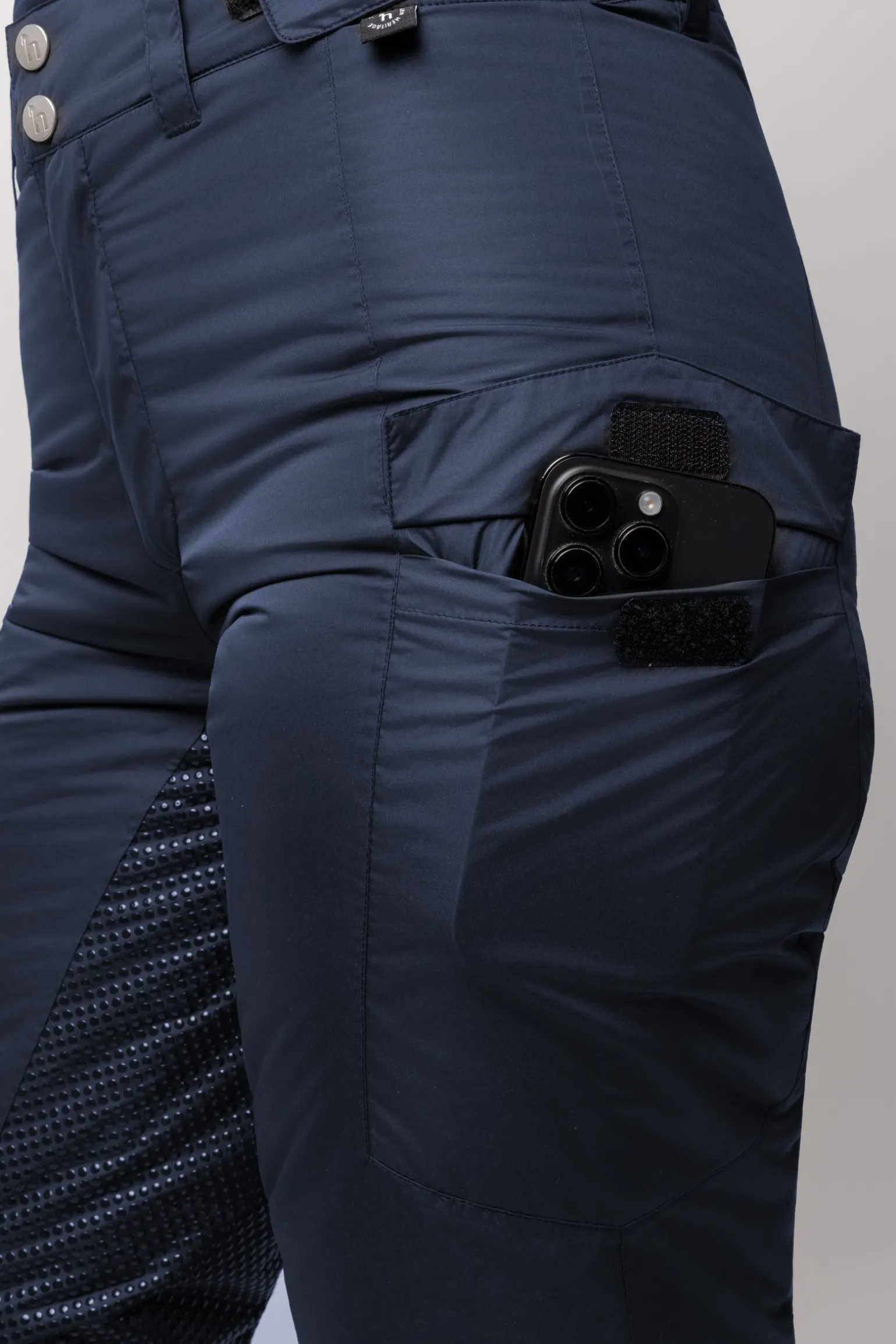 The Horze Annica Women’s Padded Breeches offer warmth, comfort, and grip in cold conditions. Made from waterproof, windproof fabric with taped seams, they provide reliable protection from the elements. The silicone full seat ensures excellent grip, while the high waistband adds comfort. Practical features include thigh pockets with hook-and-loop closure, leg zippers, and removable elastic straps. Adjustable waist straps make them fit perfectly for long days at the stable.