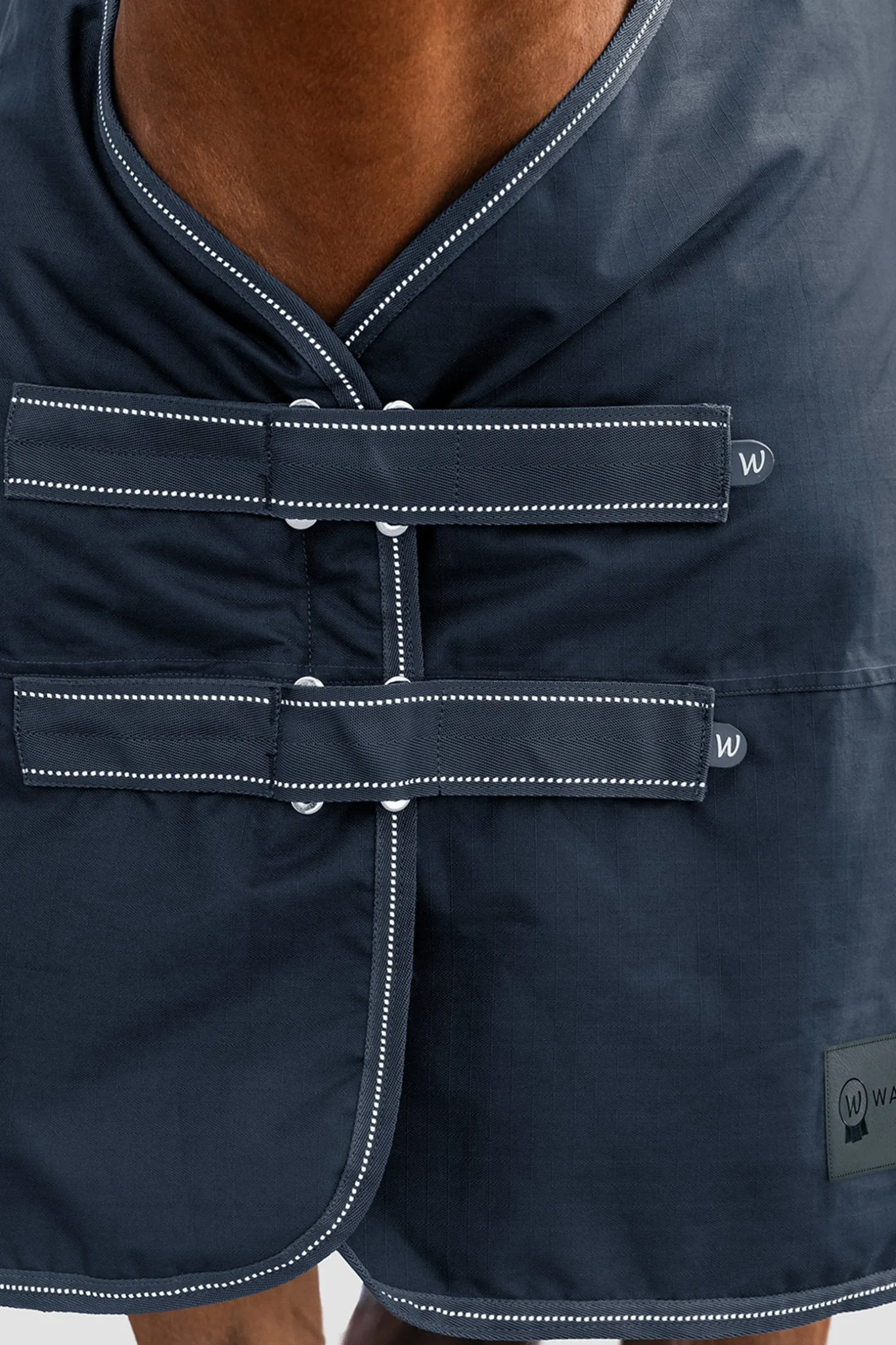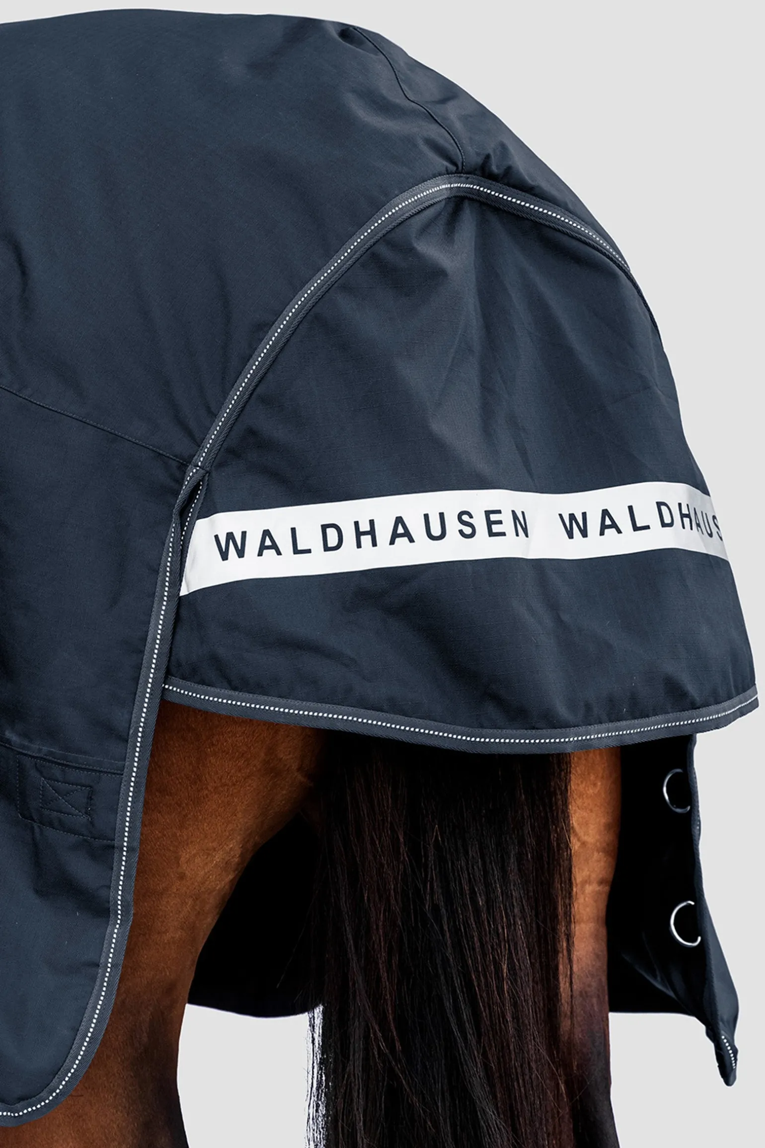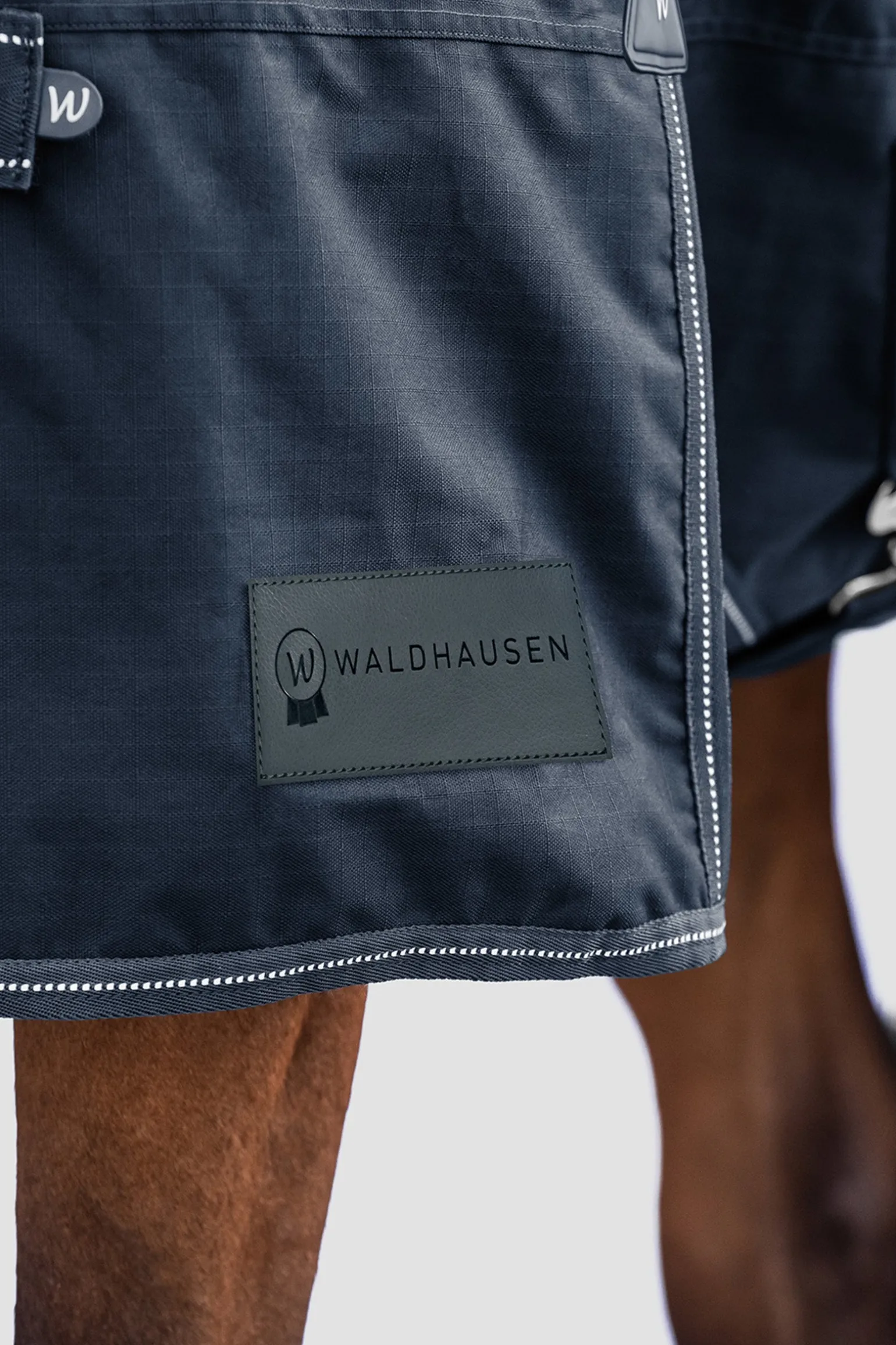 Gefertigt aus strapazierfähigem 600 Denier Ripstop-Material bietet diese Outdoordecke Robustheit und zuverlässigen Komfort. Das wasserdichte Gewebe mit 3000 mm Wassersäule und atmungsaktive Eigenschaften halten dein Pferd trocken und komfortabel, während das antibakterielle Innenfutter mit Stay-Clean-Einlage für langanhaltende Frische sorgt. Ein doppelter T-Frontverschluss mit schützender Klettabdeckung gibt Sicherheit, und die Decke ist vollständig mit dem Waldhausen Clip-in-Liner-System kompatibel – für vielseitigen Einsatz. Bewegungsfalten an den Schultern ermöglichen optimale Bewegungsfreiheit, während Kreuzgurte und ein großer Schweiflatz mit reflektierendem Waldhausen-Schriftzug für stabilen Sitz sorgen. Waldhausen-Design-Schnallen und reflektierende Einfassungen bieten zusätzliche Sichtbarkeit und einen stilvollen Akzent. Geliefert in einer praktischen Waldhausen-Decken-Tasche ist diese Decke ebenso funktional wie smart.