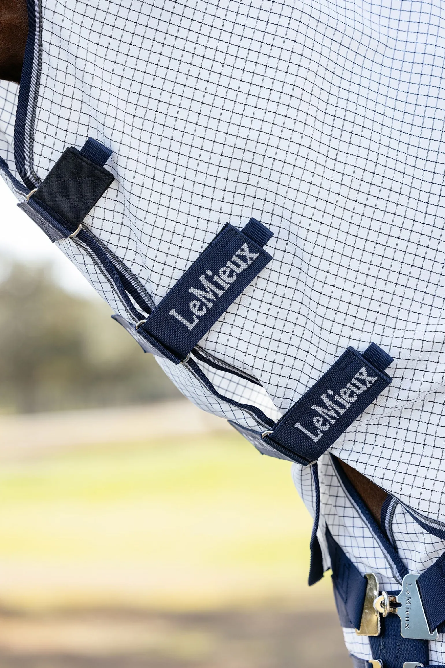 Diese Weidedecke schützt dein Pferd vor UV-Strahlen, Insekten und Schmutz – sowohl im Stall als auch auf der Weide. Mit integriertem UPF50+ Schutz im Gewebe ist sie ideal für sonnige Tage. Das antistatische und antibakterielle Innenfutter verhindert Scheuerstellen und mikrobielles Wachstum. Ein 45° angewinkelter T-Verschluss an der Front kombiniert sich mit unserem patentierten zweiteiligen Schnitt (obere/untere Sektion) für uneingeschränkte Bewegungsfreiheit.