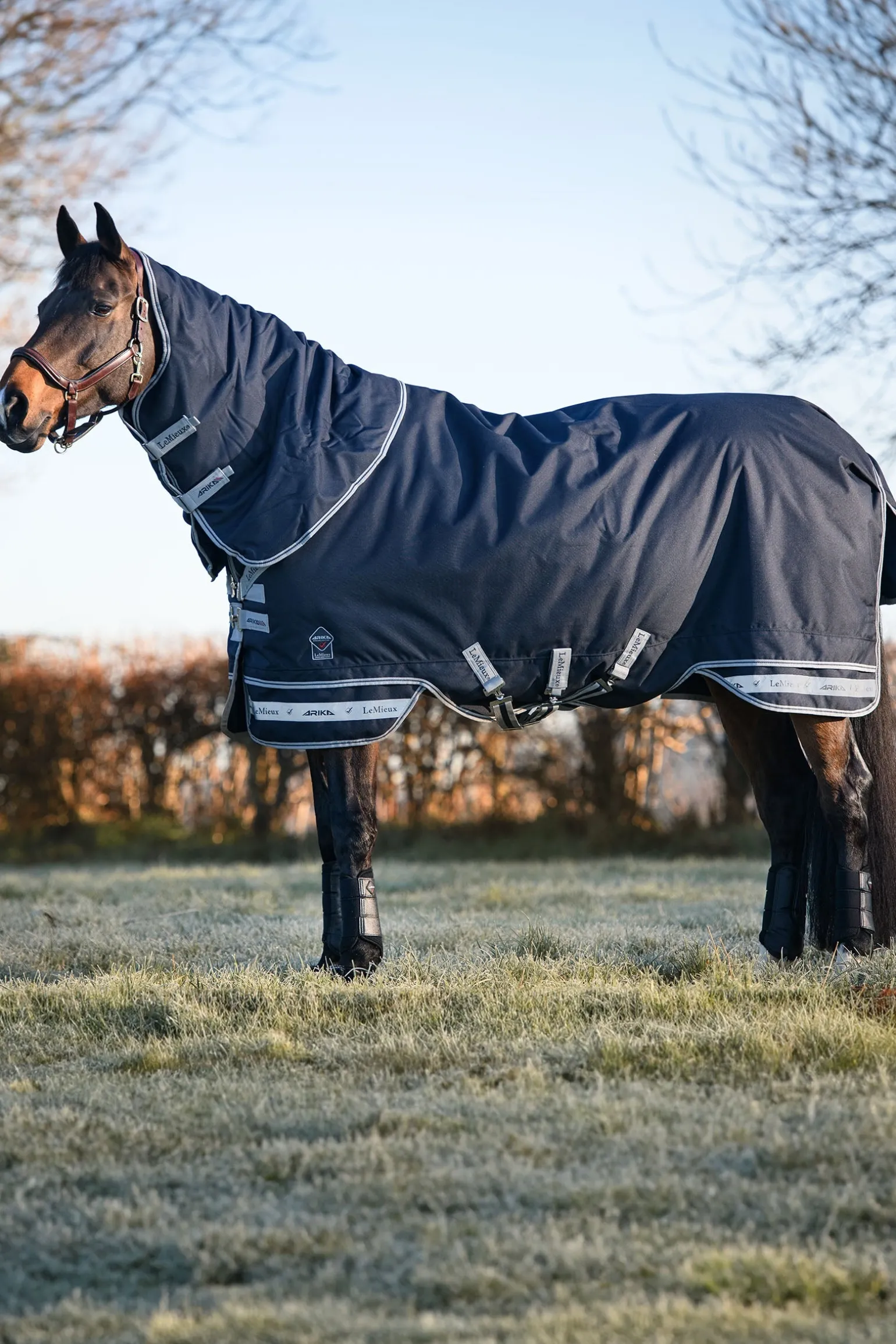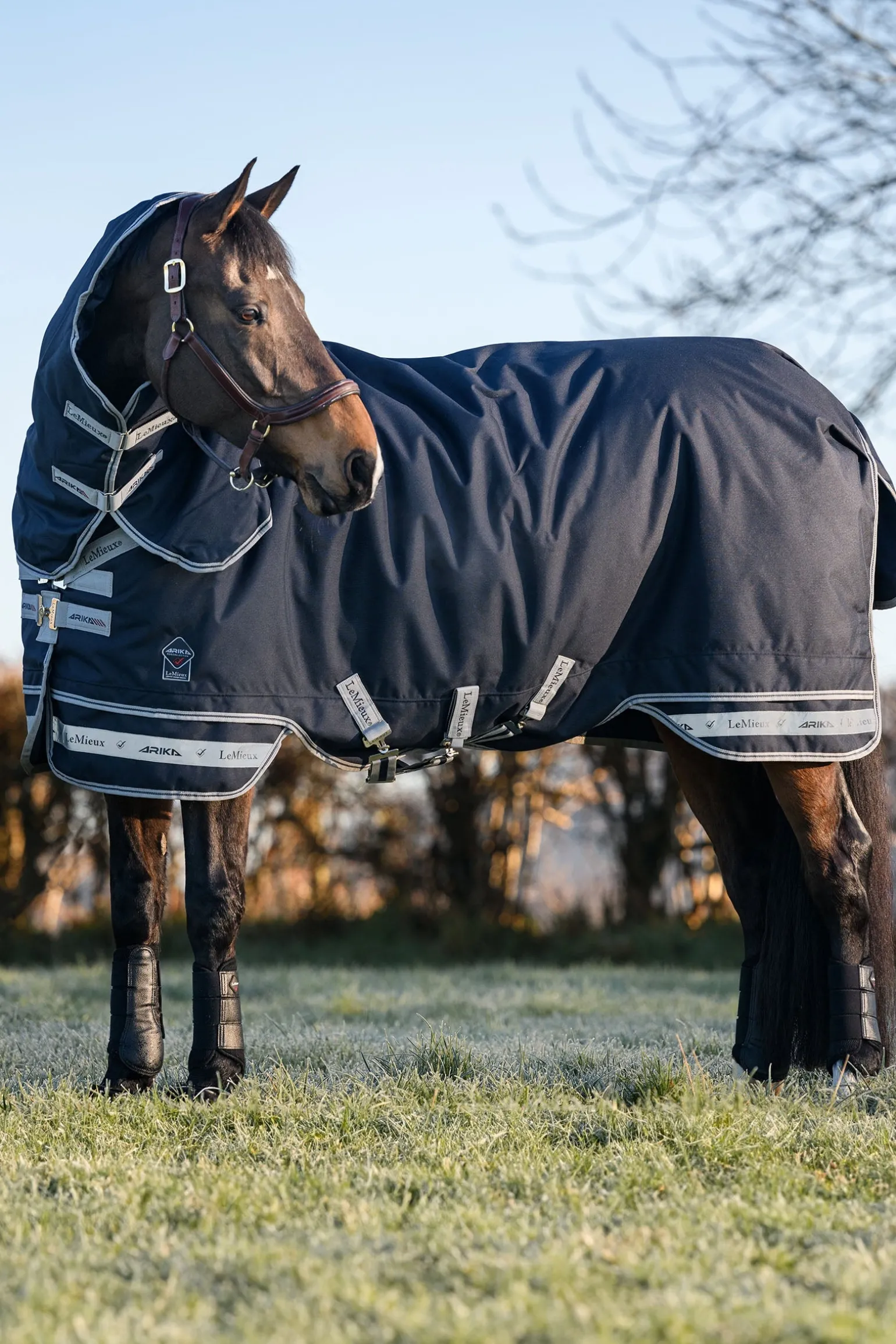 Die Arika Storm-Tek Weidedecken-Kollektion wurde mit einem revolutionären zweiteiligen, patentierten System entwickelt. Der unabhängige untere Rockteil sorgt für eine Unterbrechung der Saumlinie, was die Spannung mindert und eine größere Bewegungsfreiheit ermöglicht. Das zentrale Panel hilft der Decke, sich selbst auszurichten, und bietet zusätzlichen Schutz. Das schräge Frontverschlusssystem von Arika verfügt über eine einzigartige, designgeschützte Schnalle, die den Druck gleichmäßig verteilt und ausbalanciert, um Scheuerstellen am Schulterpunkt und über der Brust zu vermeiden. Der Hauptteil der Decke besteht aus strapazierfähigem Oxford-Gewebe, das in einer speziellen Breite entwickelt wurde. Dies macht eine Mittelnaht entlang des Rückens überflüssig und bietet genug Tiefe, ohne zusätzliche Seitenähte. Innere Befestigungen ermöglichen die Anbringung an alle LeMieux Deckenliner, sodass die Wärmeregulierung des Pferdes bei wechselnden Klimabedingungen flexibel und einfach angepasst werden kann. Die Decke wurde aus innovativen Materialien gefertigt, die für Langlebigkeit, Atmungsaktivität und den Schutz des Pferdes während des Weidegangs entwickelt wurden.