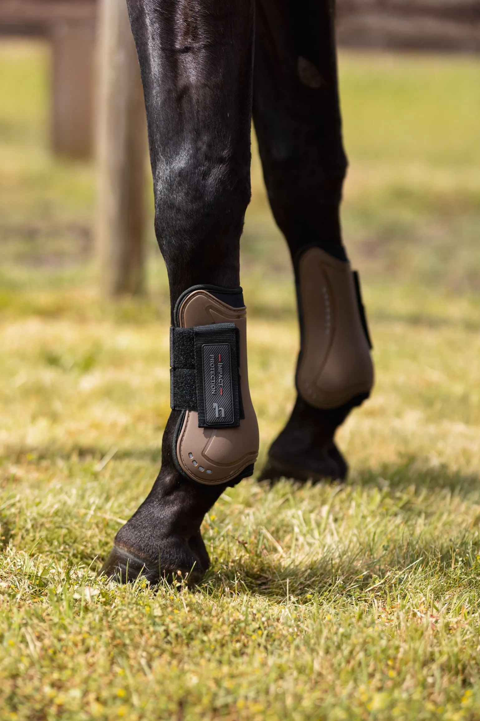 Diese innovativen Springgamaschen kombinieren Schutz, Komfort und eine sportliche Optik. Das Bambus-Kühlgewebe sorgt für eine optimale Temperaturregulierung und hält die Pferdebeine angenehm kühl. Die robuste PU-Schale ist mit Belüftungsöffnungen ausgestattet, um eine optimale Luftzirkulation zu gewährleisten. Ein stilvolles Logo-Detail auf dem Verschlussriemen rundet das Design ab. Ideal für Training und Wettkampf, bieten diese Gamaschen eine perfekte Kombination aus Funktionalität und Stil.