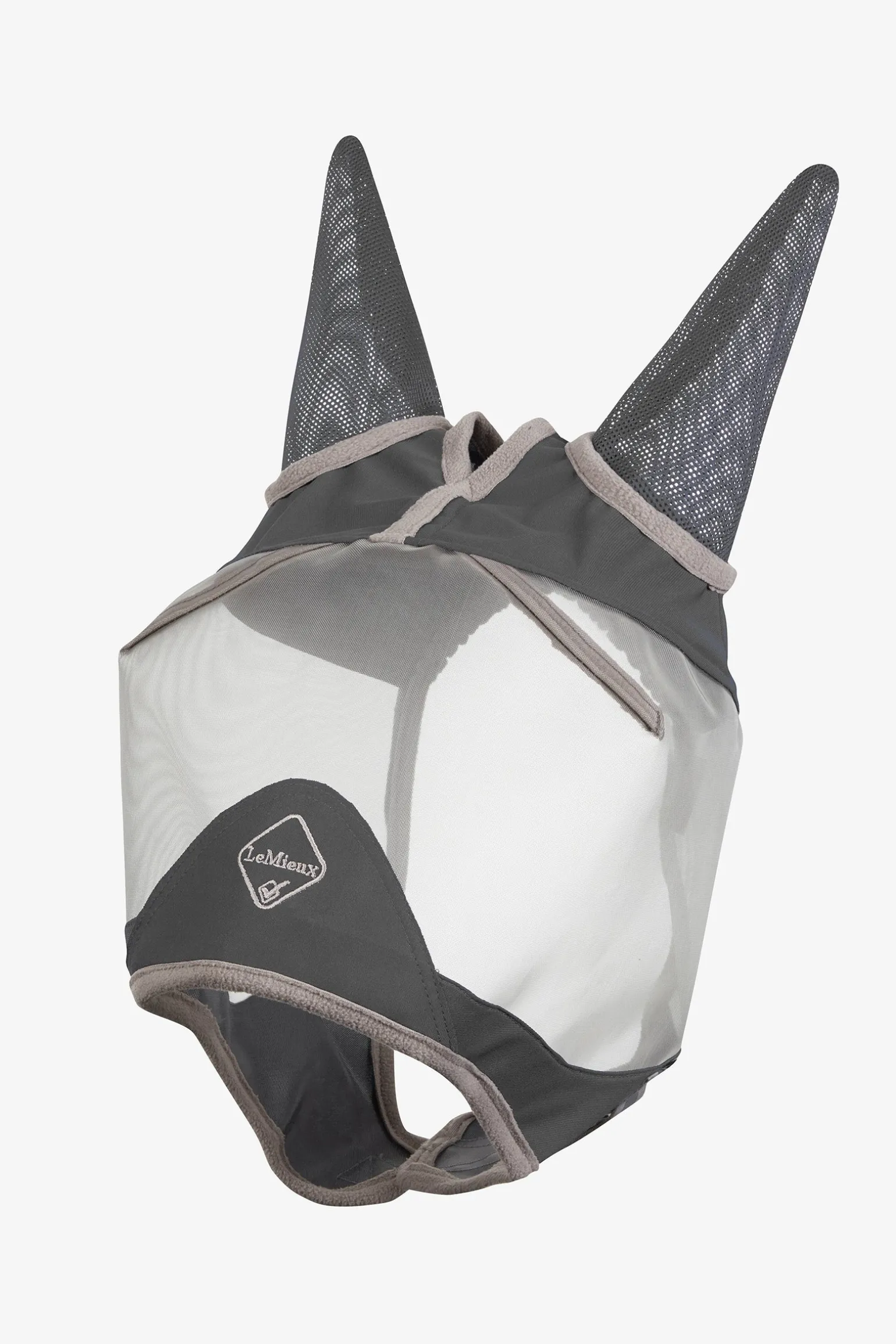Hergestellt aus strapazierfähigem, silberfarbenem Mesh mit 75% UV-Schutz, bietet guten Schutz vor lästigen Fliegen und gleichzeitig eine uneingeschränkte Sicht. Komfort hat oberste Priorität dank weicher, atmungsaktiver Bambus-Futterstreifen über Stirn und Nase, die das Fell vor Scheuern schützen. Atmungsaktive Mesh-Ohren verhindern Irritationen durch Fliegen und Mücken.