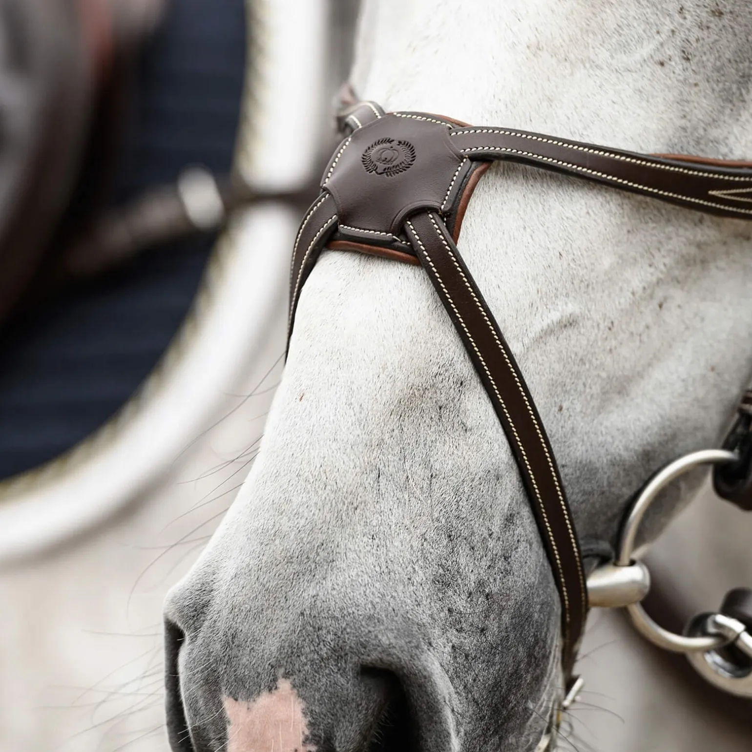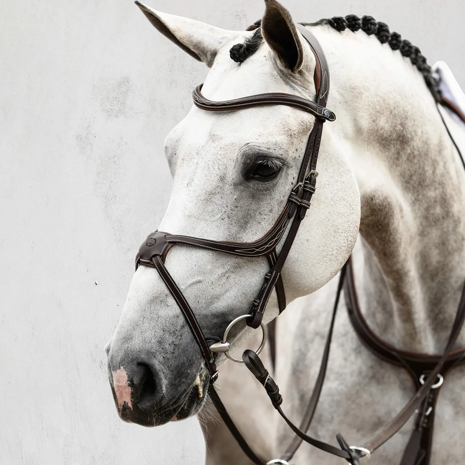 Der Stirnriemen hat den neuen, konvexen PS-Knopf mit einer extra stabilen Schnalle, die den Stirnriemen in Position hält und das Leder nach hinten und unten formt.