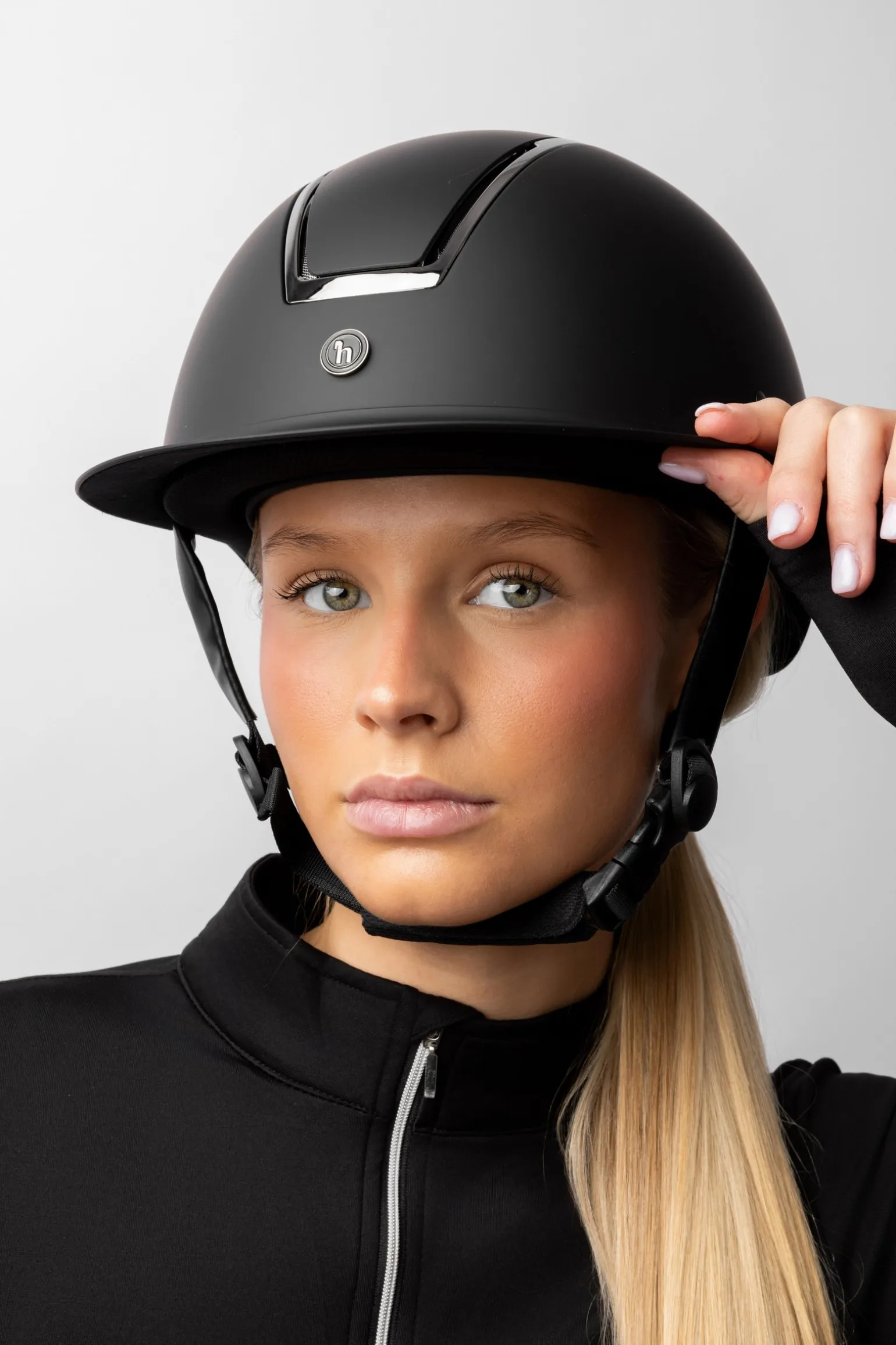 Der Horze Atmos II Reithelm wurde konzipiert, um hohen Belastungen standzuhalten. Die Belüftungsschlitze bieten Komfort und halten deinen Kopf durch eine hohe Luftzufuhr kühl. Die metallischen Einsätze auf der Außenfläche geben deinem Reitoutfit eine Spur Eleganz und sind in verschiedenen stylischen Farben erhältlich. Der breite Schirm sorgt für zusätzlichen Schutz. Das Größenverstellrad ermöglicht den perfekten Sitz. Das Memory Foam Futter bietet deinem Kopf Komfort und liefert bei einem Sturz den nötigen Schutz. Die flexible Krempe sorgt für zusätzliche Sicherheit.