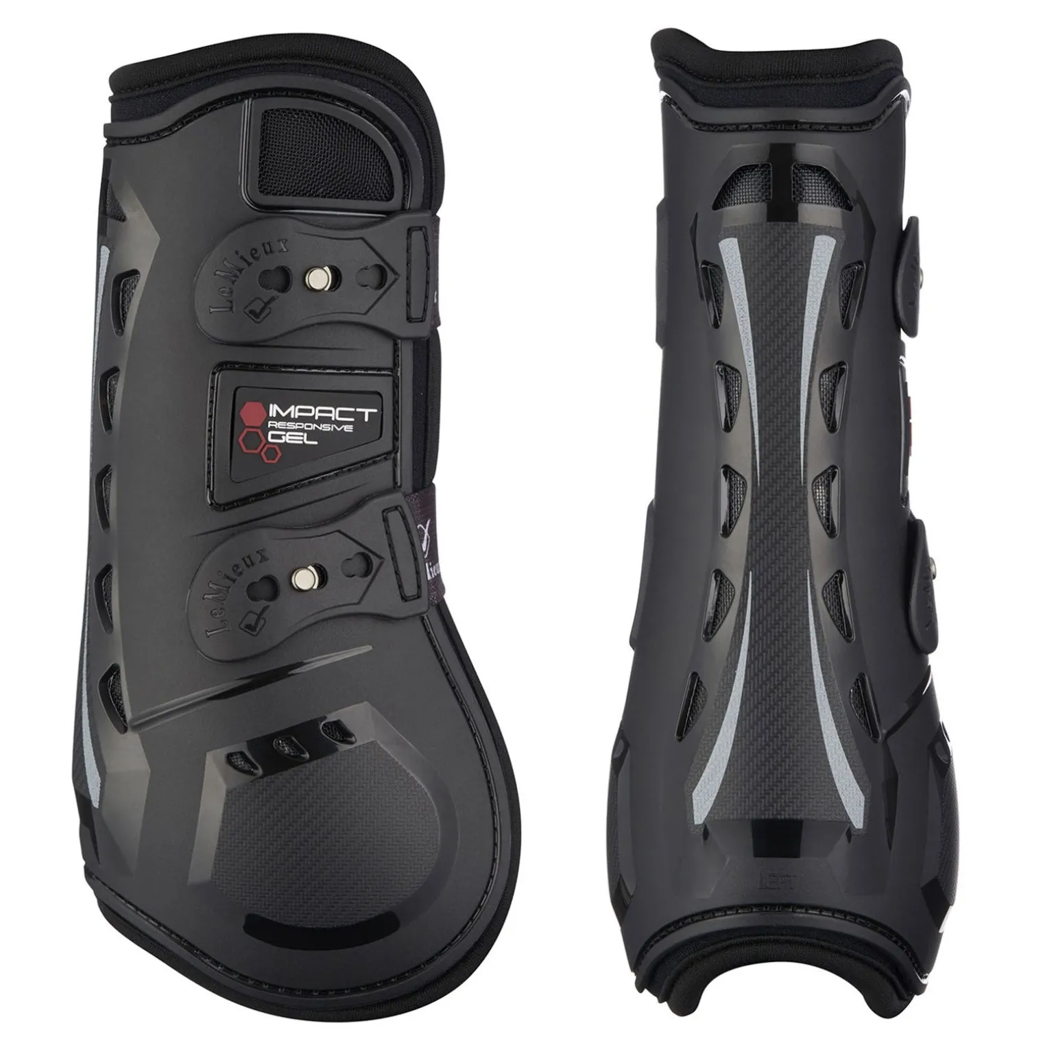 A range of jumping boots with enhanced vented protection. Lightweight shock resistant shell is anatomically moulded to support the fetlock and tendon. Rear and side vents to release heat build up. Air enters lower vents flowing around tendons and rises to the upper extractor vent. Integrated Impact Responsive Gel absorbs energy and concussion created whilst jumping, and protects against strikes whilst landing and turning.
