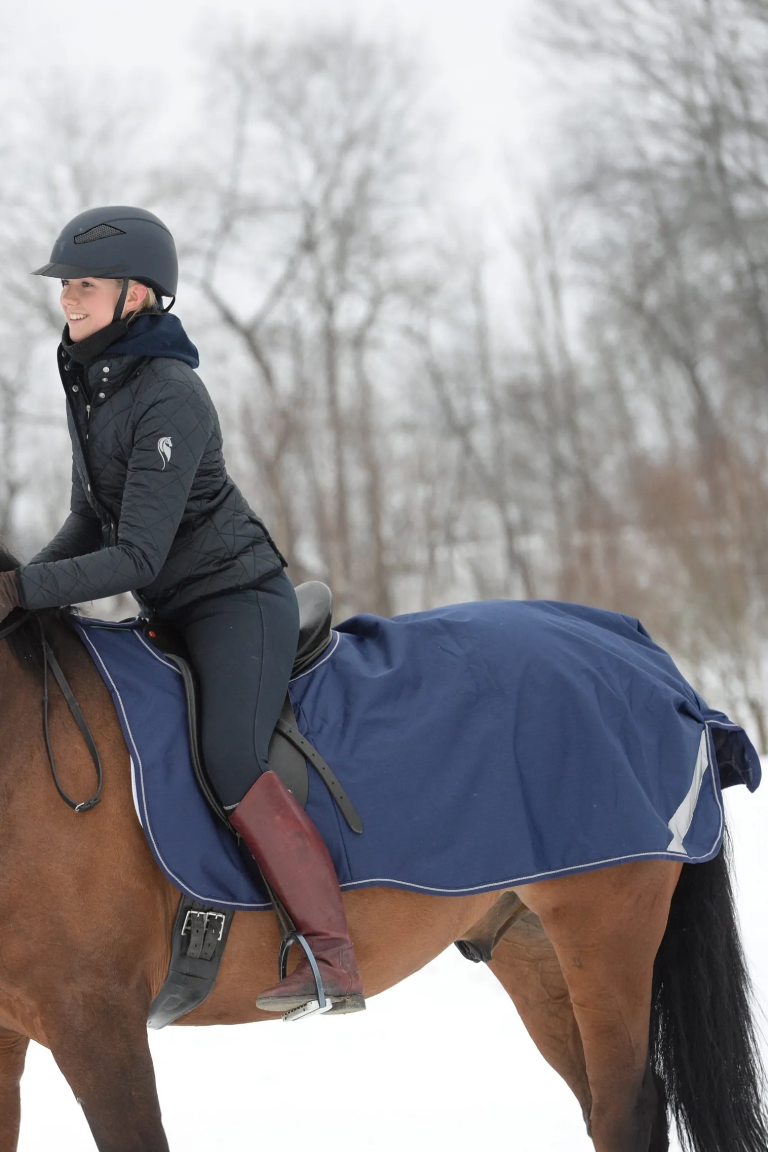 Die Bucas Ausreitdecke ist die ideale, langlebige Allwetter-Trainingsdecke, auch perfekt für das Reiten an kalten oder dunklen Tagen. Für bessere Sichtbarkeit sind Schweif und Rückseite mit reflektierenden Streifen ausgestattet. Die Decke aus Ripstop-Außenmaterial hat zudem eine wasserdichte und atmungsaktive Beschichtung, ein stay-dry Innenfutter und eine antibakterielle Ausrüstung. Diese hilft, Feuchtigkeit von der Haut des Pferdes wegzuleiten, und die antibakteriellen Eigenschaften tragen dazu bei, die Haut des Pferdes in gutem Zustand zu halten, indem sie die Verbreitung bakterieller Hautkrankheiten verhindern. Der Klettverschluss am Widerrist hält die Decke an Ort und Stelle und lässt sich auch im Sattel leicht abnehmen. Die Decke kann sowohl unter als auch über den Sattelblättern angebracht werden.