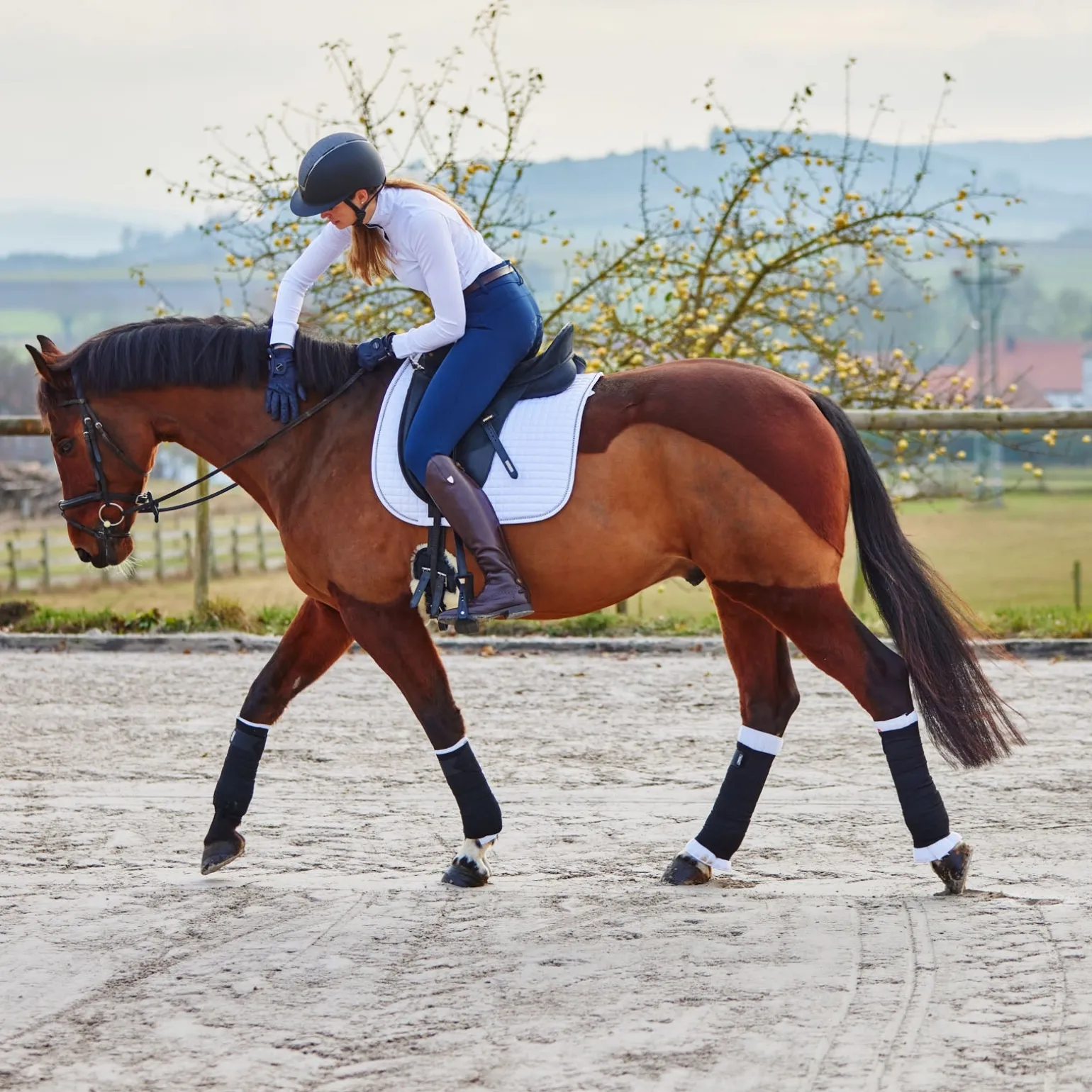 Pferde, die Boxenruhe haben, benötigen eine angemessene Unterstützung wenn es notwendig ist und bei der Therapie hilft, sorgen die Horze Supreme Bandagierunterlagen für die entsprechende Hilfe. Diese weichen Bandagierunterlagen bieten Komfort und Stabilität in der Box, im Anhänger oder wenn einfach etwas mehr Unterstützung benötigt wird. Das gesteppte, weiße Material kann zwischen den Anwendungen gewaschen und getrocknet werden und behält immer die Form. Die Horze Supreme Bandagierunterlagen werden im Paar geliefert. Wählen Sie ein Paar für vorne und hinten für ein komplettes Set. Die Horze Supreme Bandagierunterlagen stauen nicht auf und werfen unter keiner der Horze Bandagen Falten.