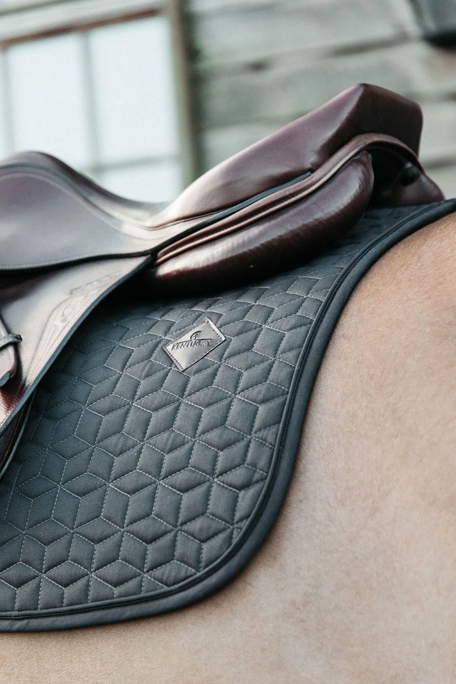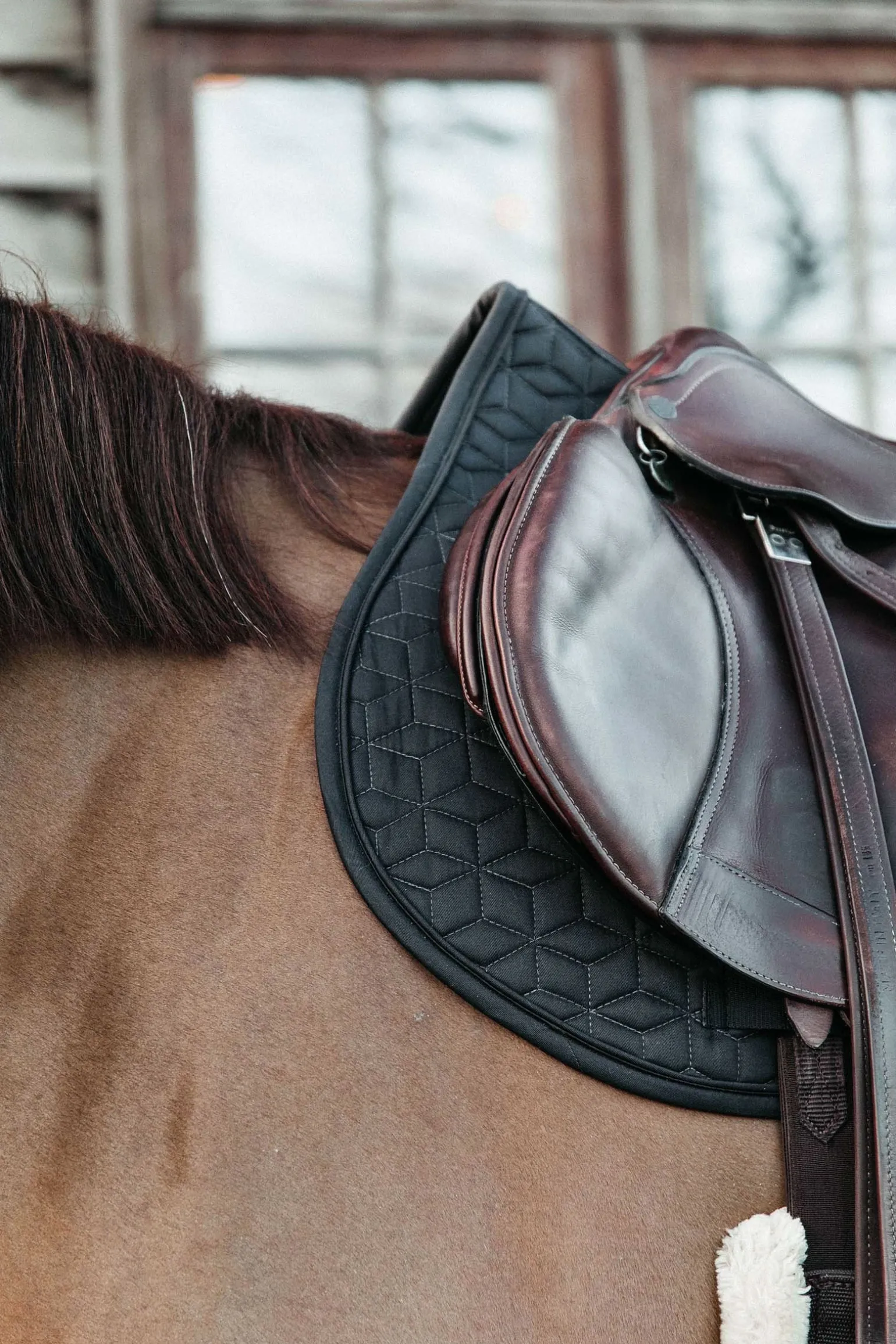 Die Außenseite der Schabracke besteht aus einem baumwollähnlichen Polyester in schicker Würfelsteppung. Auf der linken Seite der Schabracke befindet sich ein kleiner Kunstleder Patch mit dem Kentucky-Logo, unter dem Logo ist genug Platz, um sie zu besticken. Das Futter der Schabracke ist ein feuchtigkeitsableitendes Baumwoll-Polyester-Gemisch.