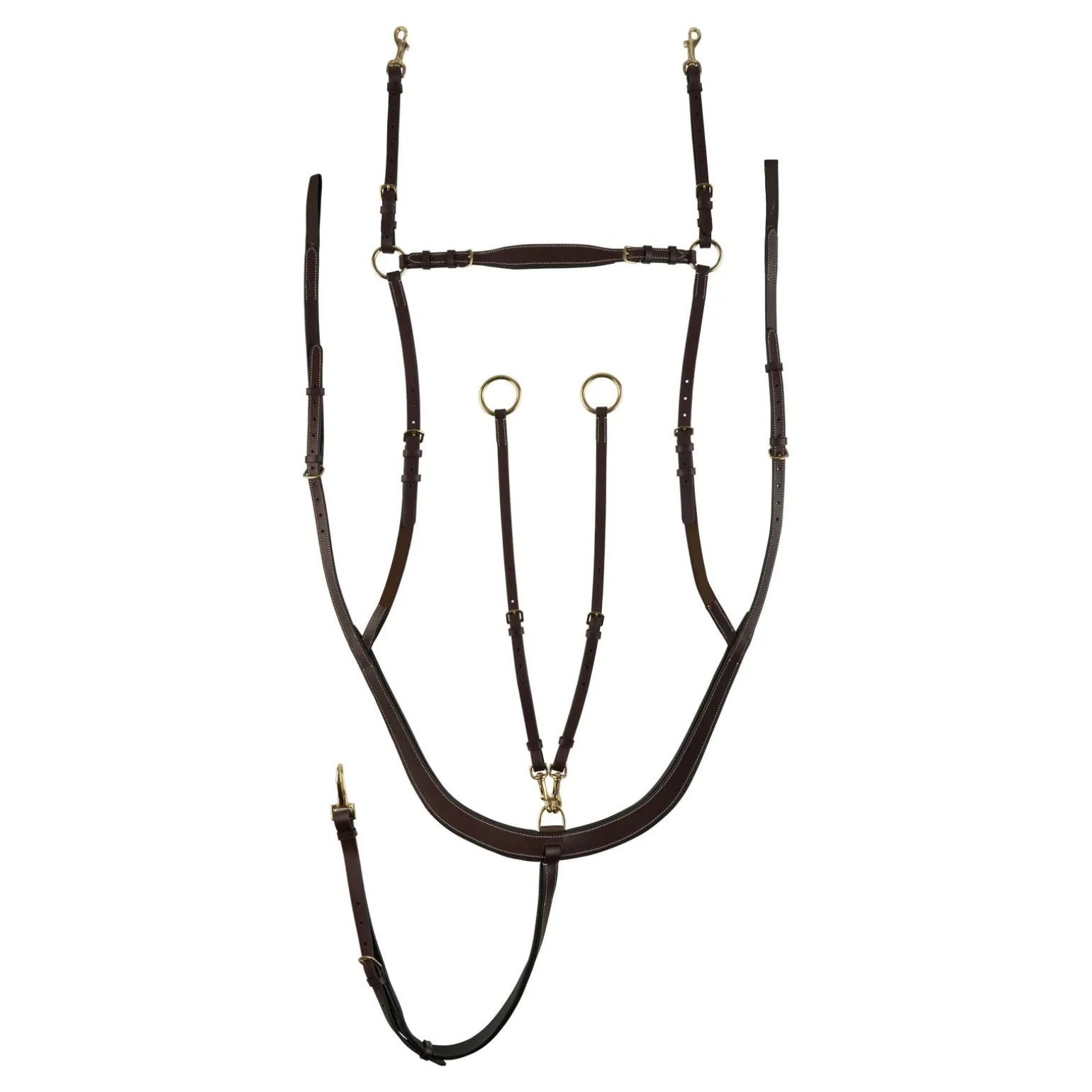 Das Horze Belgravia Vorderzeug mit kombiniertem Martingal ist aus weichem Leder gemacht und an die Bedürfnisse deines Pferdes anpassbar. Karabinerhaken machen die Benutzung einfach. Der anatomische Schnitt dieses Vorderzeugs verhindert unangenehme Reibung.
