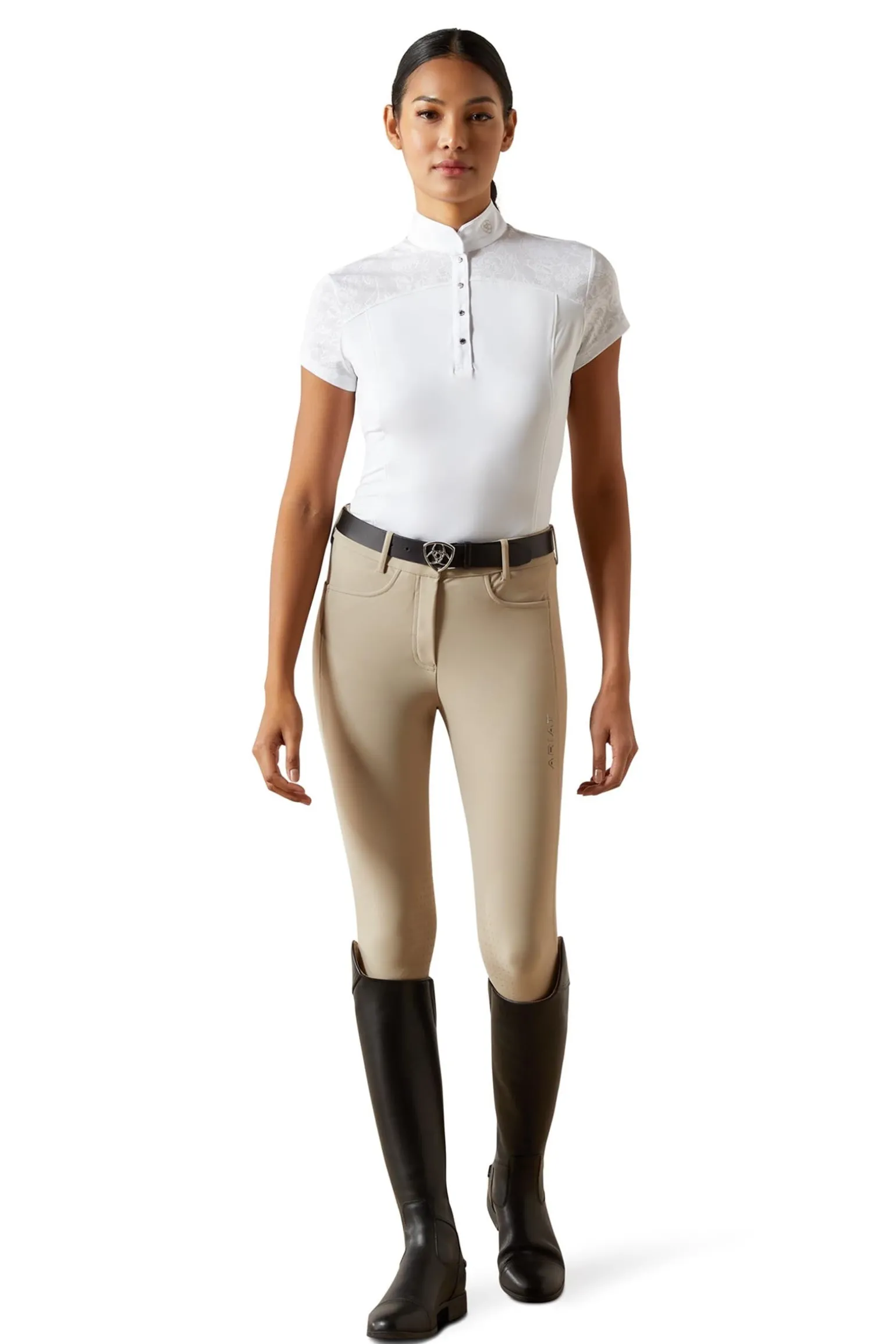 Beim Bellatrix Turniershirt trifft Eleganz auf Funktion. Das moderne Must-have ist aus hochwertigem, technischem Jersey gefertigt und mit geblümtem Mesh am Oberkörper und an den Ärmeln versehen. Der Kragen und die glänzenden Druckknöpfe setzen weitere stylische Akzente. Figurbetonter Schnitt mit viel Bewegungsfreiheit.