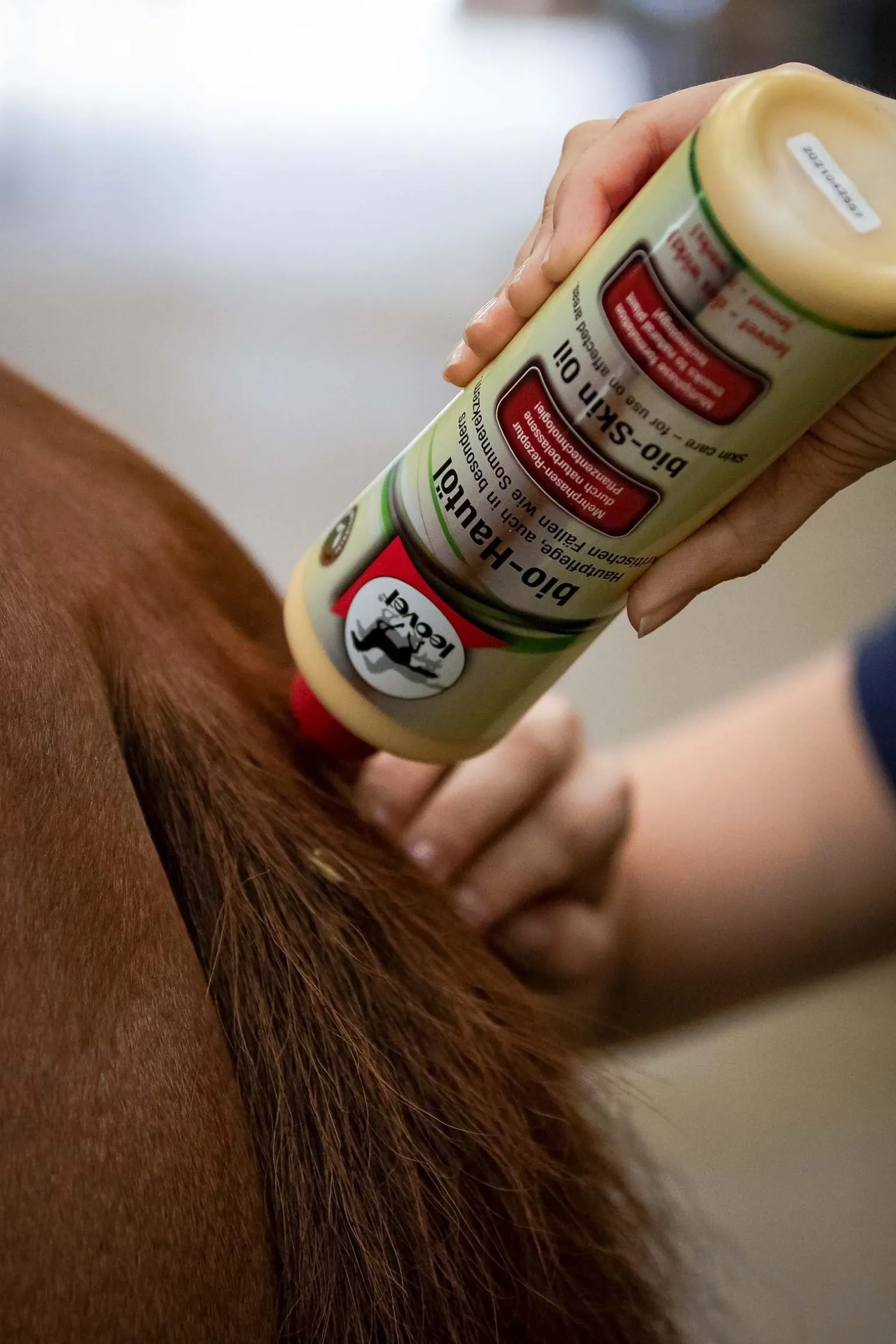 Natürliche Wirkstoffe wie Ringelblume, Karotte und Johanniskraut kräftigen und regenerieren angegriffene Hautpartien und regen das Haarwachstum an den kahlen Stellen an. Bioschwefelfluid mindert nachhaltig lästigen Juckreiz und die Scheuerneigung. Die Haut wird regeneriert.