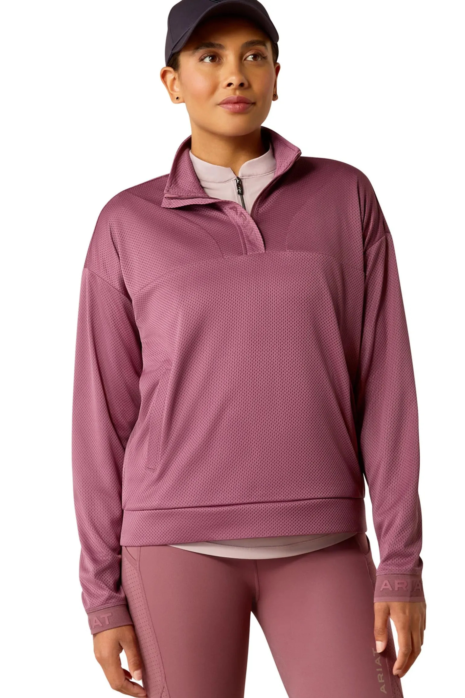 Das Breathe Sweatshirt mit halblangem Reißverschluss ist die ideale, leichte Schicht für Ausritte im Frühlings oder Herbst und verfügt über eine strategische Belüftung und ein recyceltes Performance-Strick, das eine unübertroffene Atmungsaktivität bietet. Mit dem schmeichelhaften Raglan-Stil und der Kängurutasche sieht er sowohl im Sattel als auch außerhalb großartig aus.