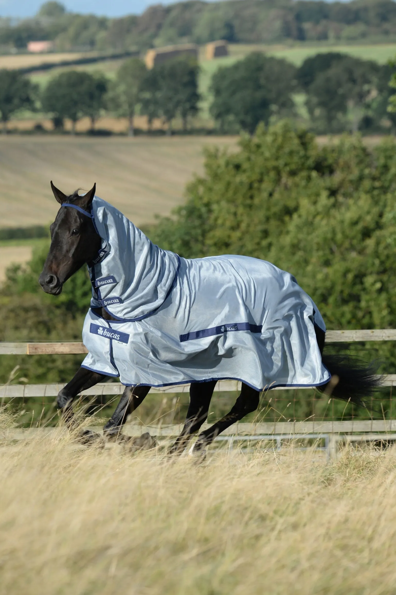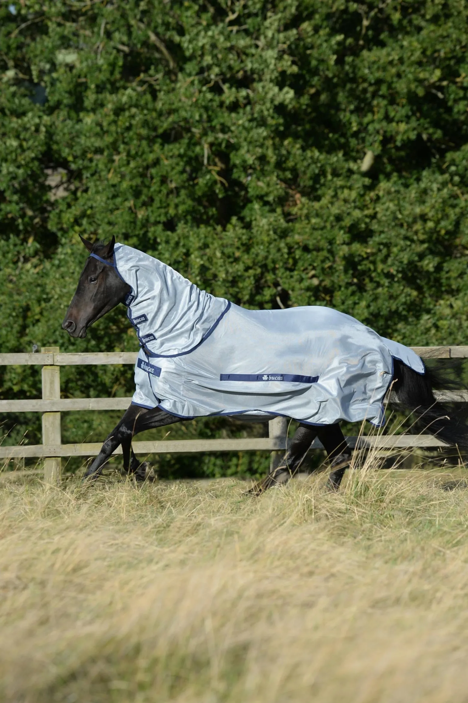 Diese Buzz-Off-Decke bietet Schutz für den Körper und den Hals des Pferdes. Der elastische und abnehmbare Bauchlatz sorgt dafür, dass die Decke an Ort und Stelle bleibt und gleichzeitig den Bauch vor Insekten und Fliegen schützt. Auch erhältlich in einer Version ohne Halsteil (Artikel-Nr. FEV9T).