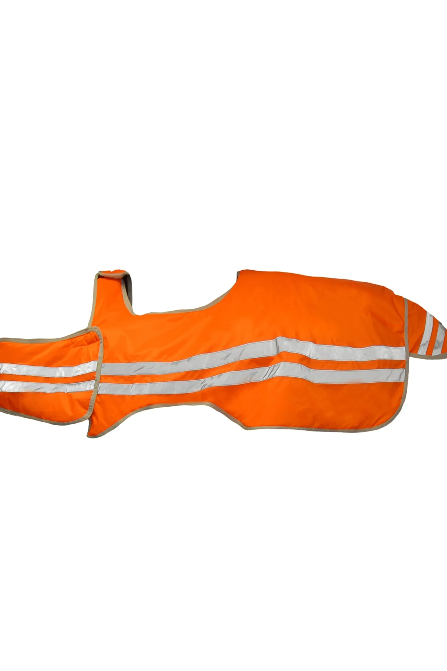 Ausreitdecke mit großflächigen, rundum laufenden Reflektorenstreifen für gute Sichtbarkeit in der Dunkelheit. Mit Brustlatz.