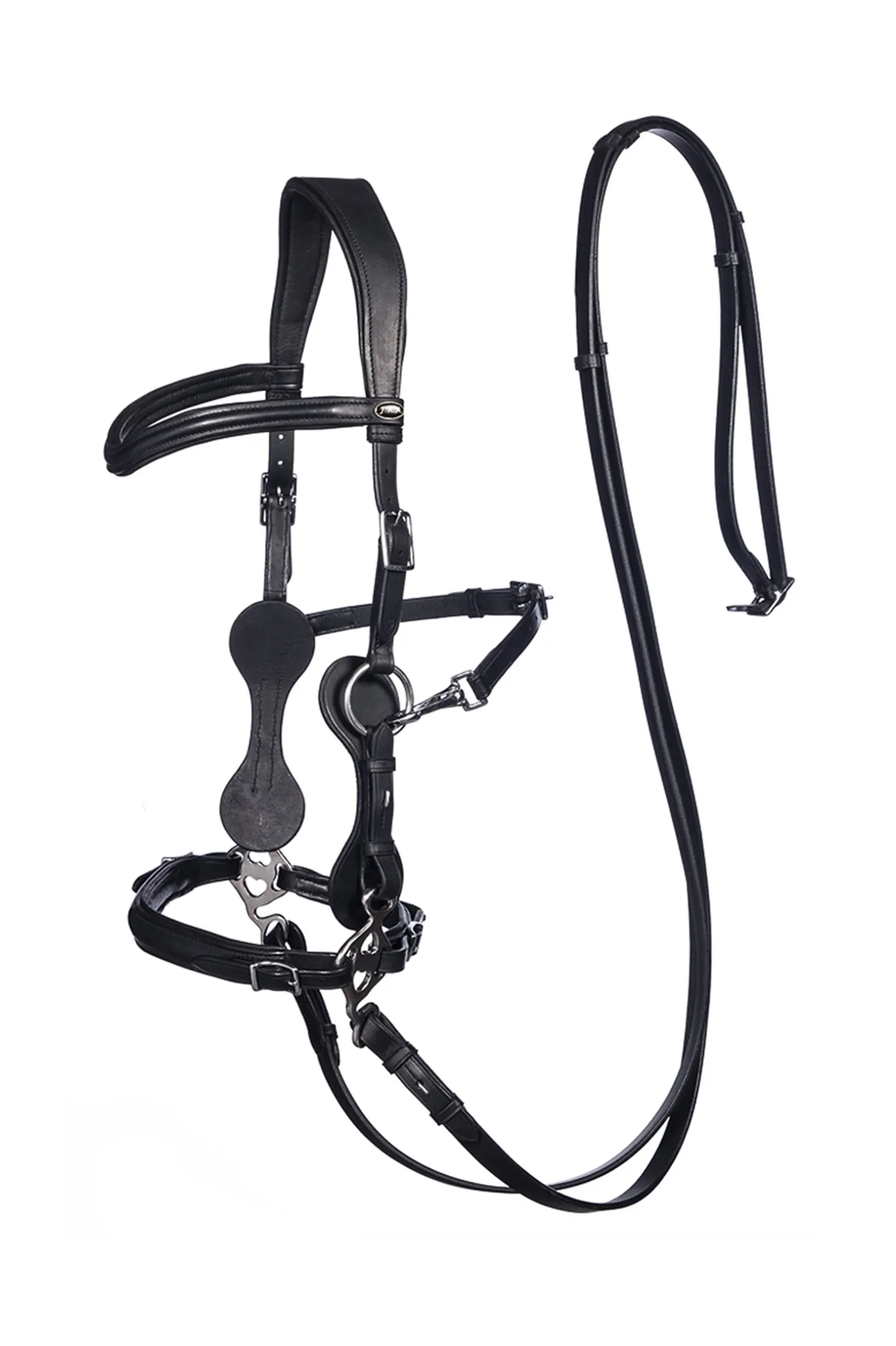 Die vielen Verstellmöglichkeiten ermöglichen eine ideale Anpassung an den Pferdekopf. Das anatomisch geformte Genickstück hat eine breite Auflagefläche und der Nasenriemen ist besonders weich gepolstert. Der Kehlriemen kann dank des Karabinerhakens schnell und einfach geöffnet und geschlossen werden.