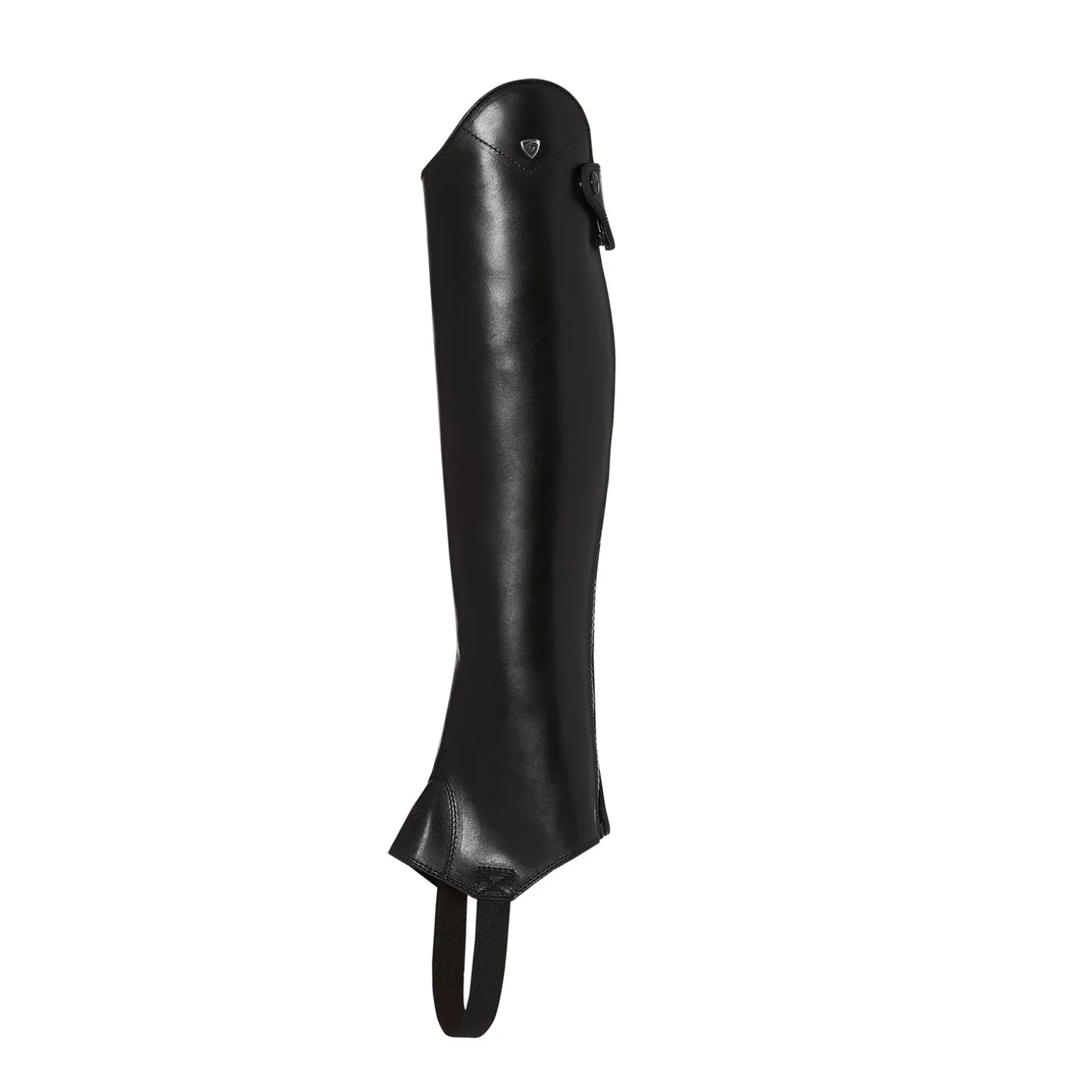 Dank der anatomischen Passform und der elastischen Einsätze schmiegen sich die Chaps perfekt an das Bein an und sorgen für guten Halt. Die strapazierfähige rutschfeste Innenseite aus griffigem Leder erlaubt zudem einen guten Grip am Pferd. Das hochwertige Glattleder lässt die Chaps elegant und sportlich zugleich erscheinen. Für extra Halt sorgt eine Lasche die verhindert, dass der Reißverschlussschieber herunter rutschen kann, darüber schließt ein Druckknopf.