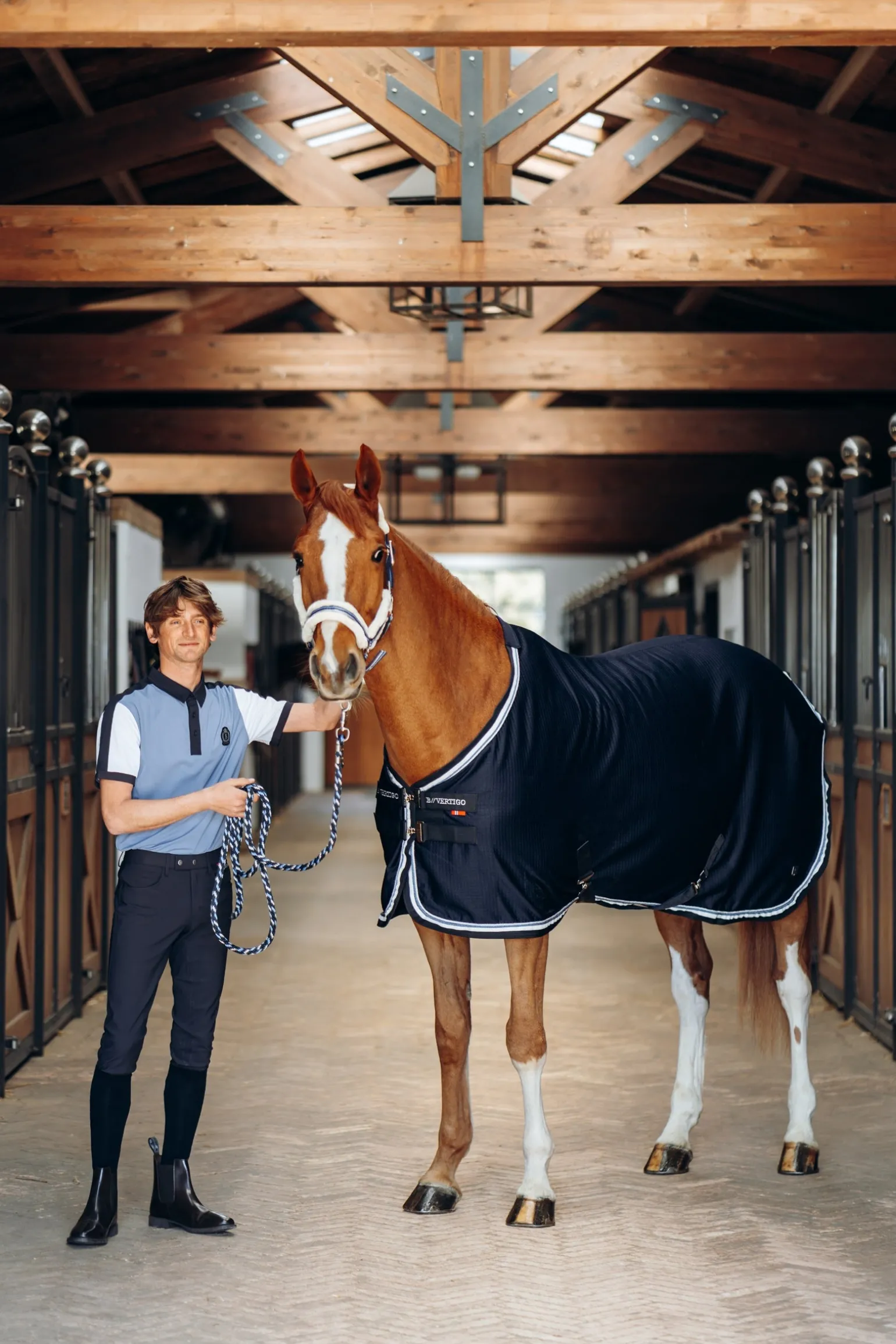 Die Cameron Decke besteht aus bequemem schnelltrocknenden Material mit UV-Schutz-Funktion. Das sportliche Design mit Kordeleinfassung luxuriös und stylisch. Doppelte T-Schnallen, die Kreuzgurte und der Schweifriemen halten die Decke an Ort und Stelle. Kombiniere sie mit unserem Cameron Halfter (#22334) und Führstrick (#22644) für einen tollen Look!
