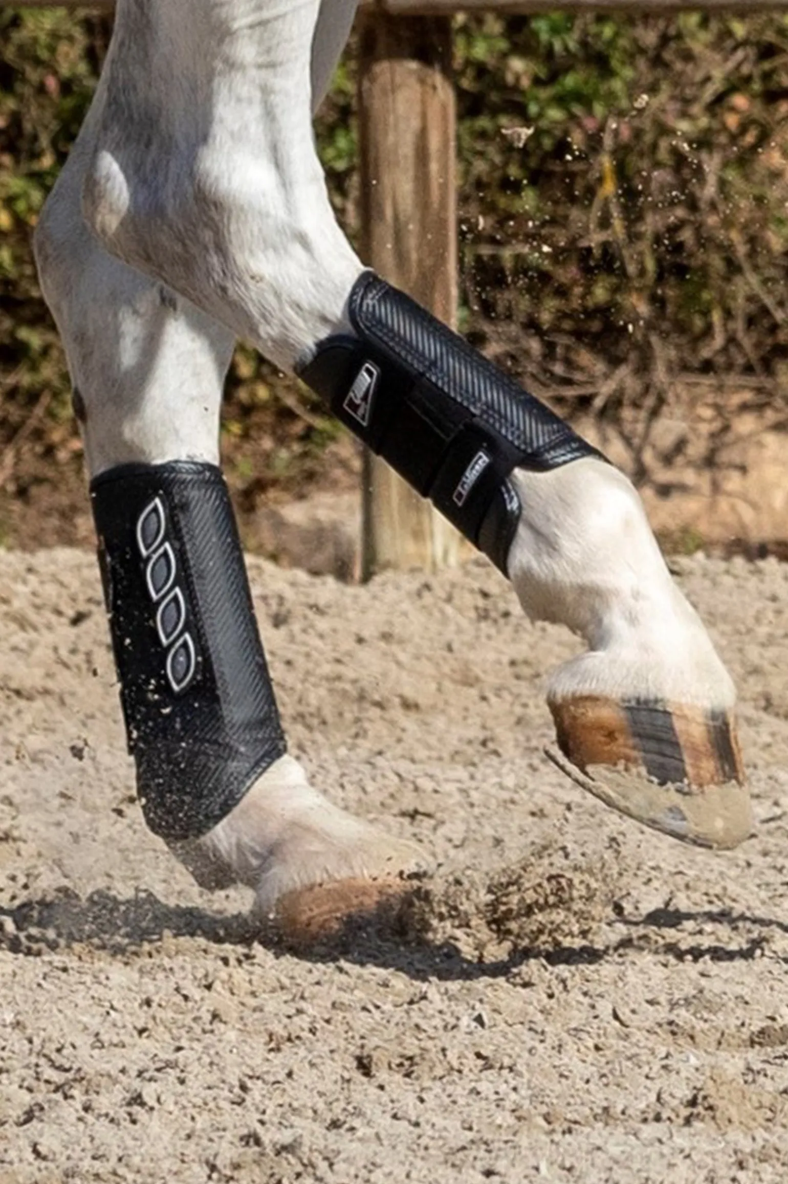 Der neue LeMieux Carbon Air bringt das neueste Schutzdesign mit intelligenten und haltbaren XC-Gamaschen. Diese vollständig belüfteten XC-Gamaschen lassen die Luft strategisch durchströmen, um die Sehnen kühl zu halten. Modernste Stoßdämpfung und Sehnenstütze mit einem flexiblen Polycarbonat-Schlagschutz geben den überlegenen Schutz, um Verletzungen zu verhindern und gleichzeitig ein superleichtes Profil beizubehalten. Das eng anliegende, neue, perforierte EVA-Futter ist ultraweich und rutschfest mit einem elastischen Zentralverschluss, der die Gamaschen sicher an ihrem Platz hält.