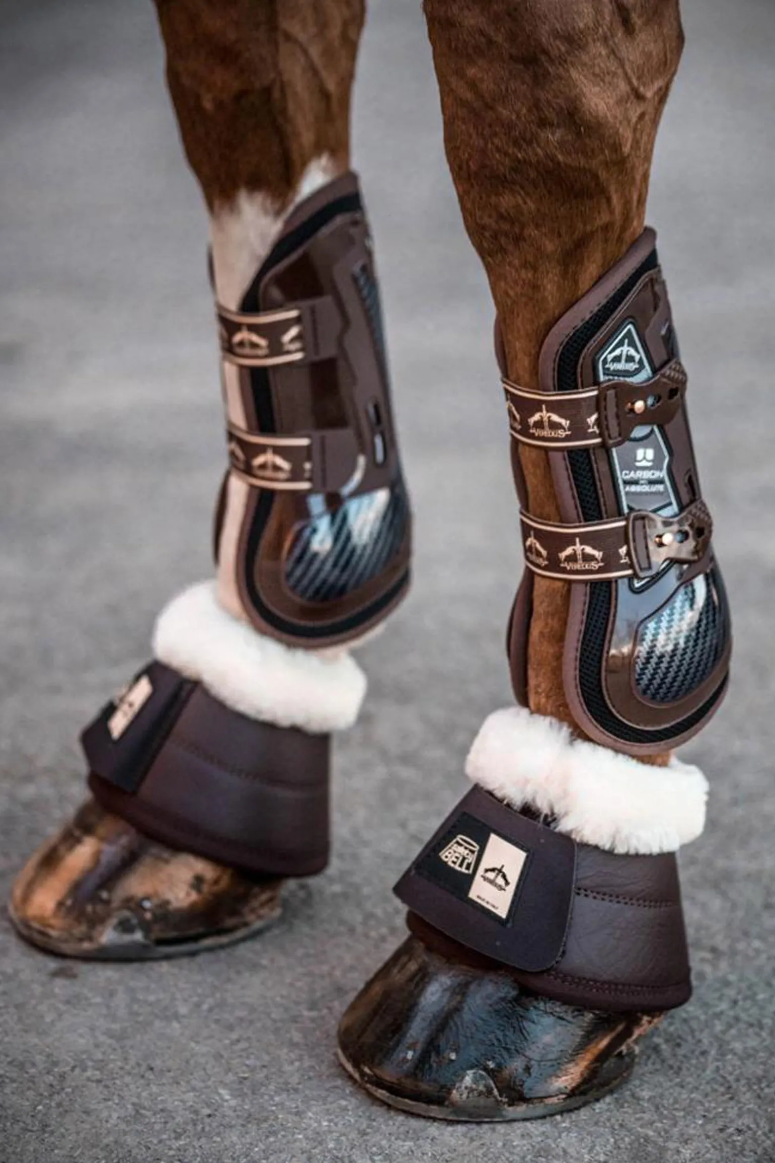 Größer, widerstandsfähiger, sicherer: Absolute ist der neue Maßstab für absoluten Schutz. Veredus hat die Idee des vollständigen Schutzes weiterentwickelt und die schützende Fläche aus Gel und Carbon mittels der innovativen Y-Form von der Beugesehne bis zum Fesselkopf vergrößert. Carbon ist das schützende und extrem leichte Material schlechthin. Es macht die Schale sehr widerstandsfähig gegen Stöße, insbesondere im Bereich der Beugesehne und des Fesselkopfes, welcher der Gefahr durch Anschlagen mit den Eisen der Hinterbeine und des gegenüberliegenden Beines vermehrt ausgesetzt ist. Die Schicht aus 3 mm Nitrexgel ist in der Lage, Stöße um über 40% abzuschwächen, und gewährleistet somit zusätzliche Sicherheit und hervorragenden Tragekomfort. Die neue Carbon Gel Absolute, die eigens für das Springen entwickelt wurde, vereint in sich alle Eigenschaften der Linie Vento und übernimmt aber auch die doppelte Belüftung und gewährleistet so eine hervorragende Atmungsaktivität und höchsten Komfort. Entwickelt in Zusammenarbeit mit Marcus Ehning.
