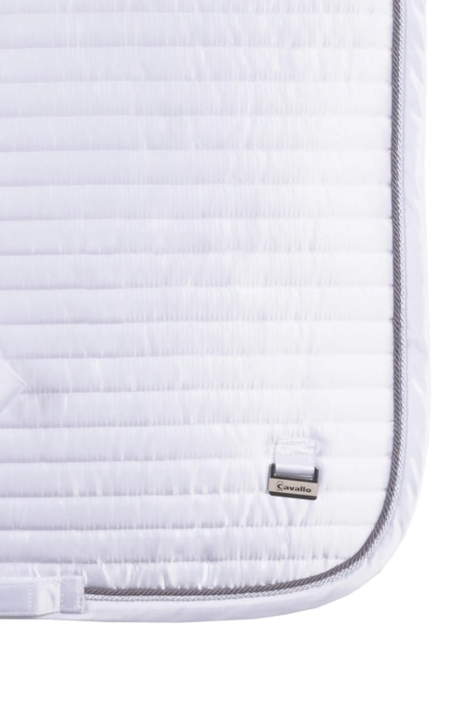Schabracke mit horizontal gestreifter Steppung. Zwei kleine, kontrastfarbige Kordeln rahmen die Schabracke ein. Ein neues Cavallo Logo verleiht der Schabracke einen edlen Look. Auf der Oberseite der Schabracke befindet sich ein Label in neuer Optik. Ausgestattet mit einem abnehmbaren Widerristpolster aus weichem Webpelz im Bereich der Sattelkammer. Die oberen und unteren Gurtstrupfen sind mit einem Satinband eingefasst. Die oberen Gurtstrupfen sind abnehmbar, die unteren Gurtstrupfen sind fixiert. Das schnell trocknende und Feuchtigkeit transportierende Bamboo-Mesh-Futter ist nicht nur nachhaltig, sondern auch besonders hautfreundlich, kühlend und bietet höchsten Komfort. Eine formbeständige Wattierung ermöglicht der Schabracke eine perfekte Lage auf dem Pferderücken.