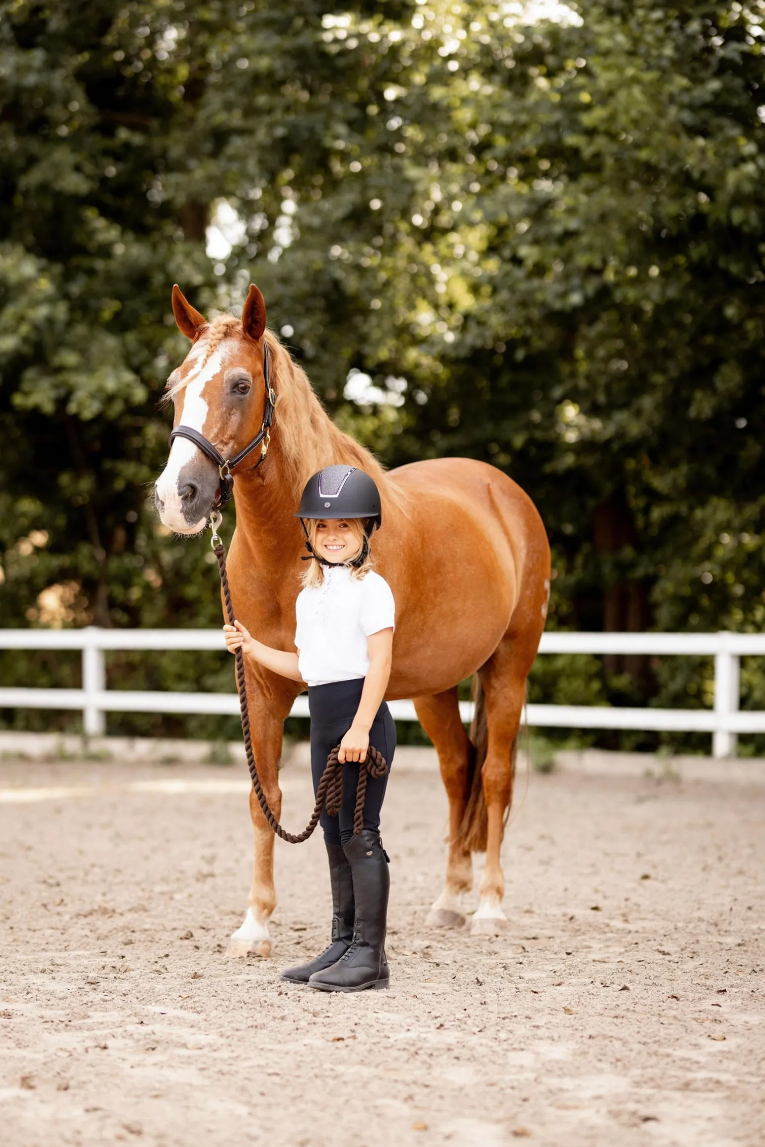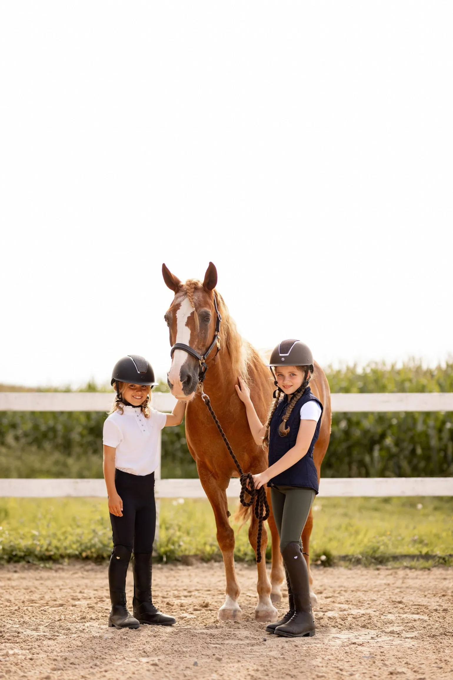 Das Horze Christel Kinder Turniershirt ist die perfekte Wahl für ein klassisches Turnieroutfit. Die Rüschendetails am Kragen und der Passe haben einen traditionellen Look, während Kristallknöpfe und ein Logo auf der Brust dem Turnieroutfit deines Kindes das gewisse Extra geben. Das atmungsaktive, leichte Material hält junge Reiter kühl, trocken und sorgt für Wohlbefinden.